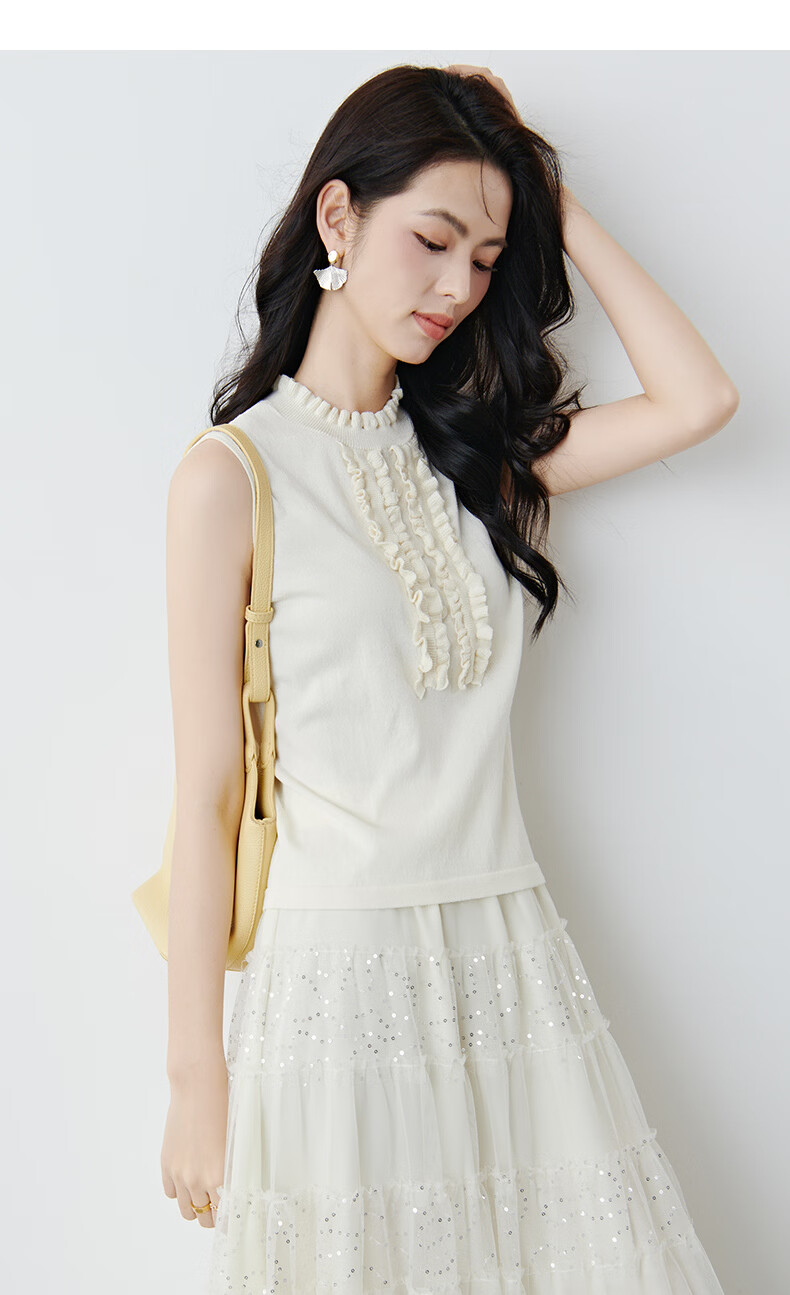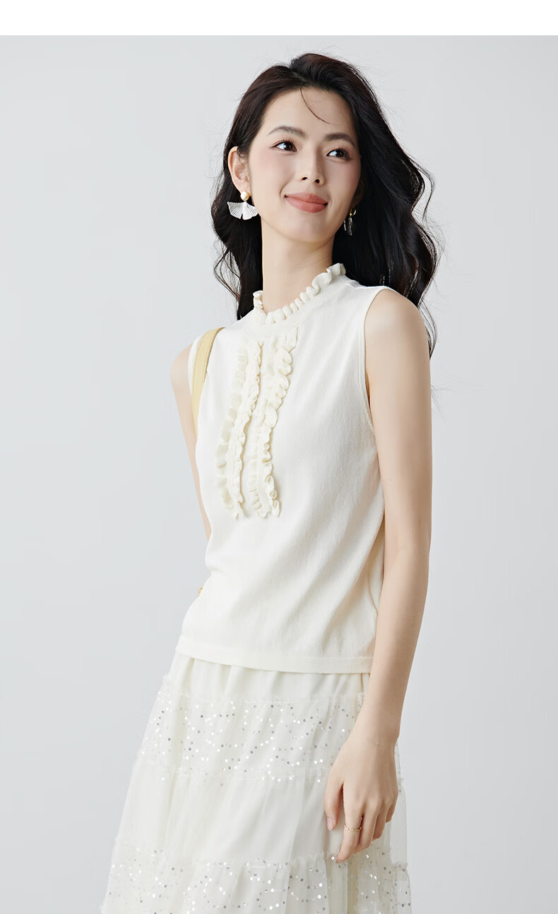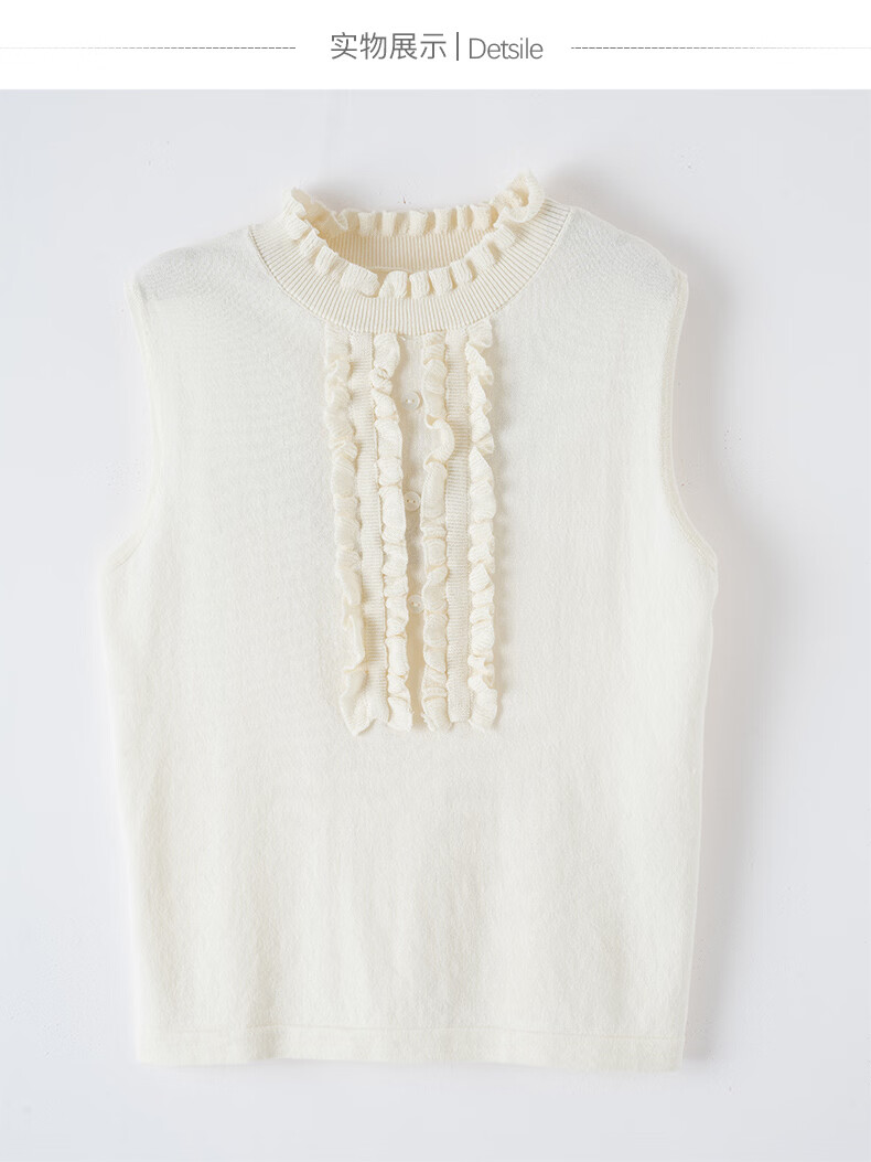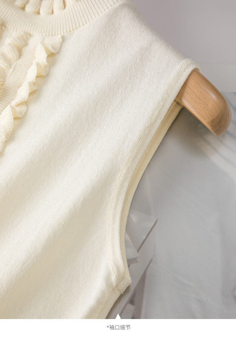 晚白2026年春款时尚温柔米杏色立体花边领叠穿神器舒适弹力针织背心女 米杏色 M