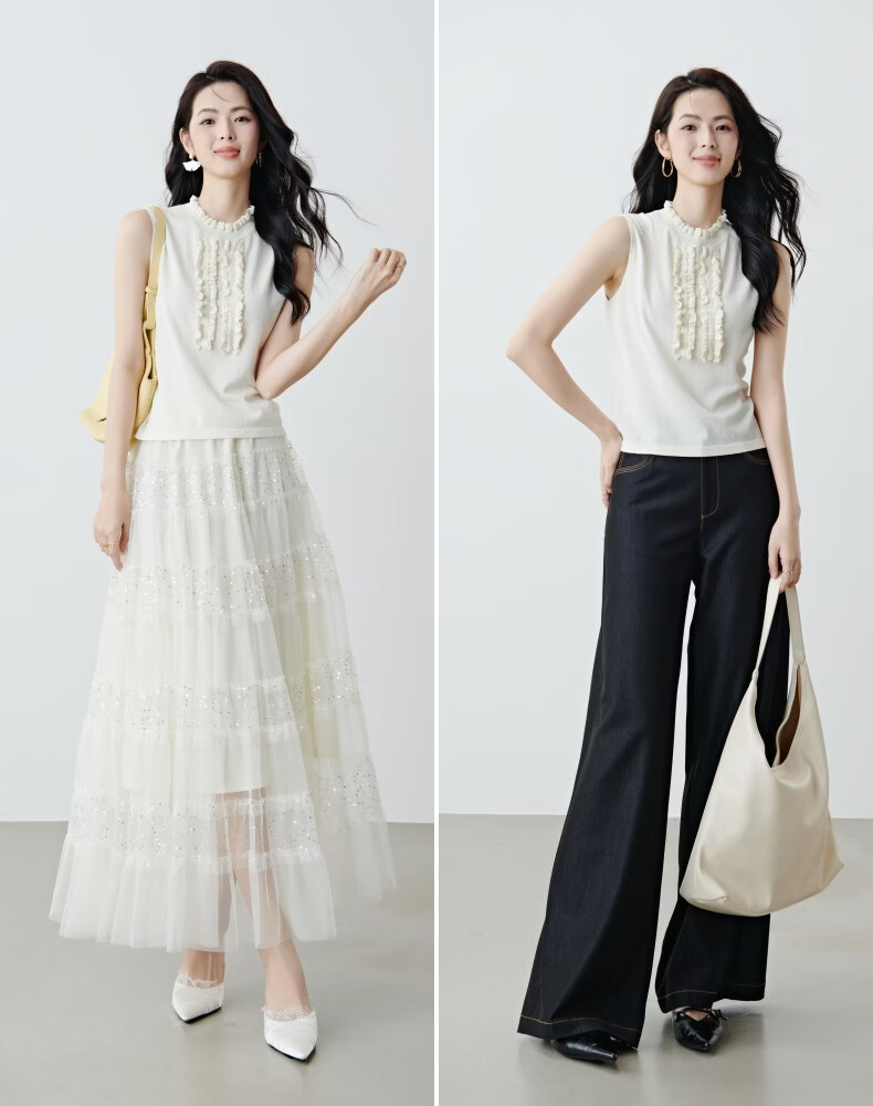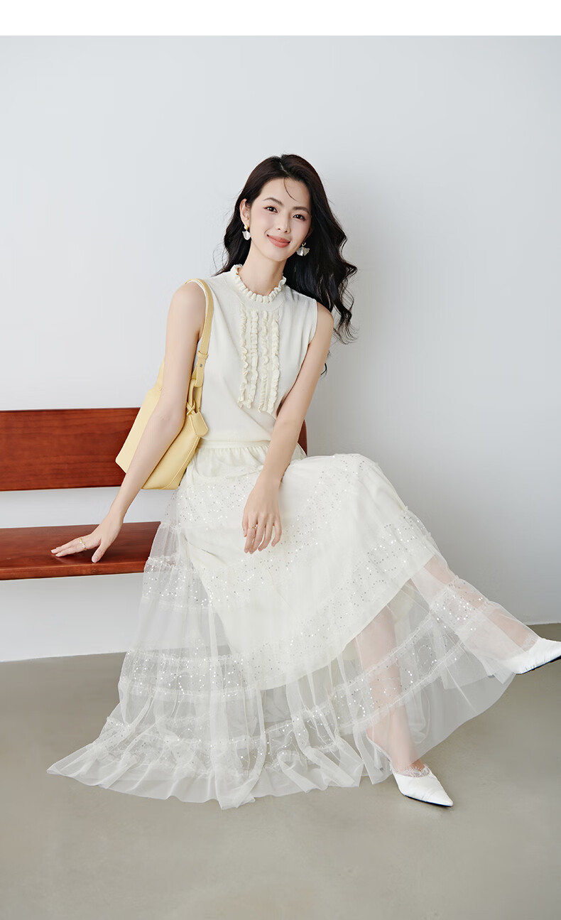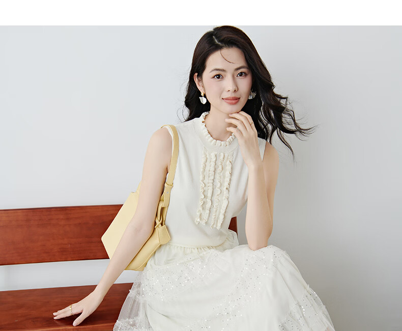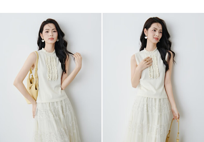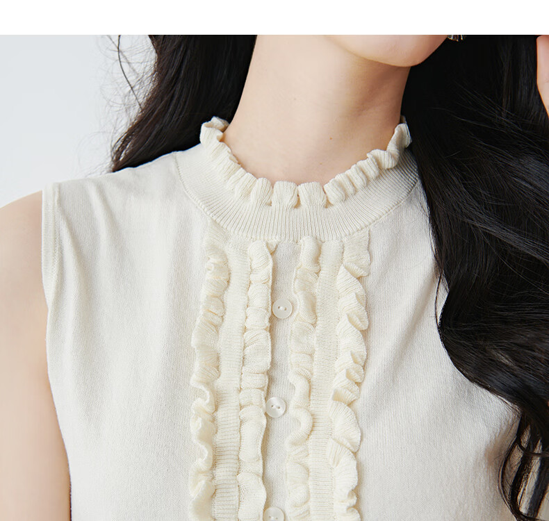 晚白2026年春款时尚温柔米杏色立体花边领叠穿神器舒适弹力针织背心女 米杏色 M