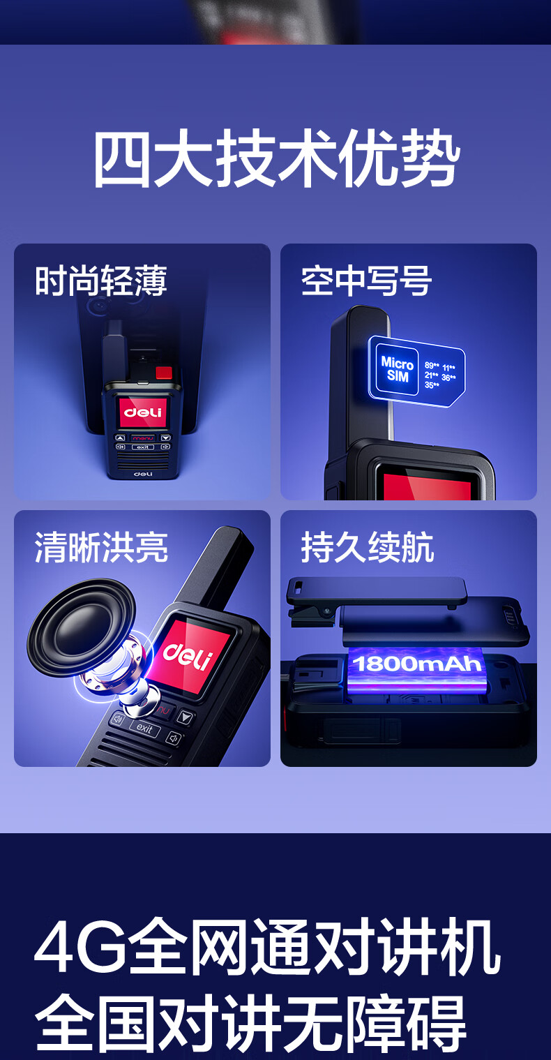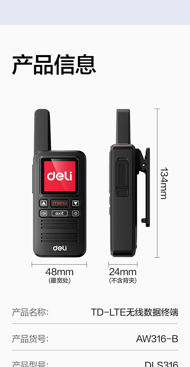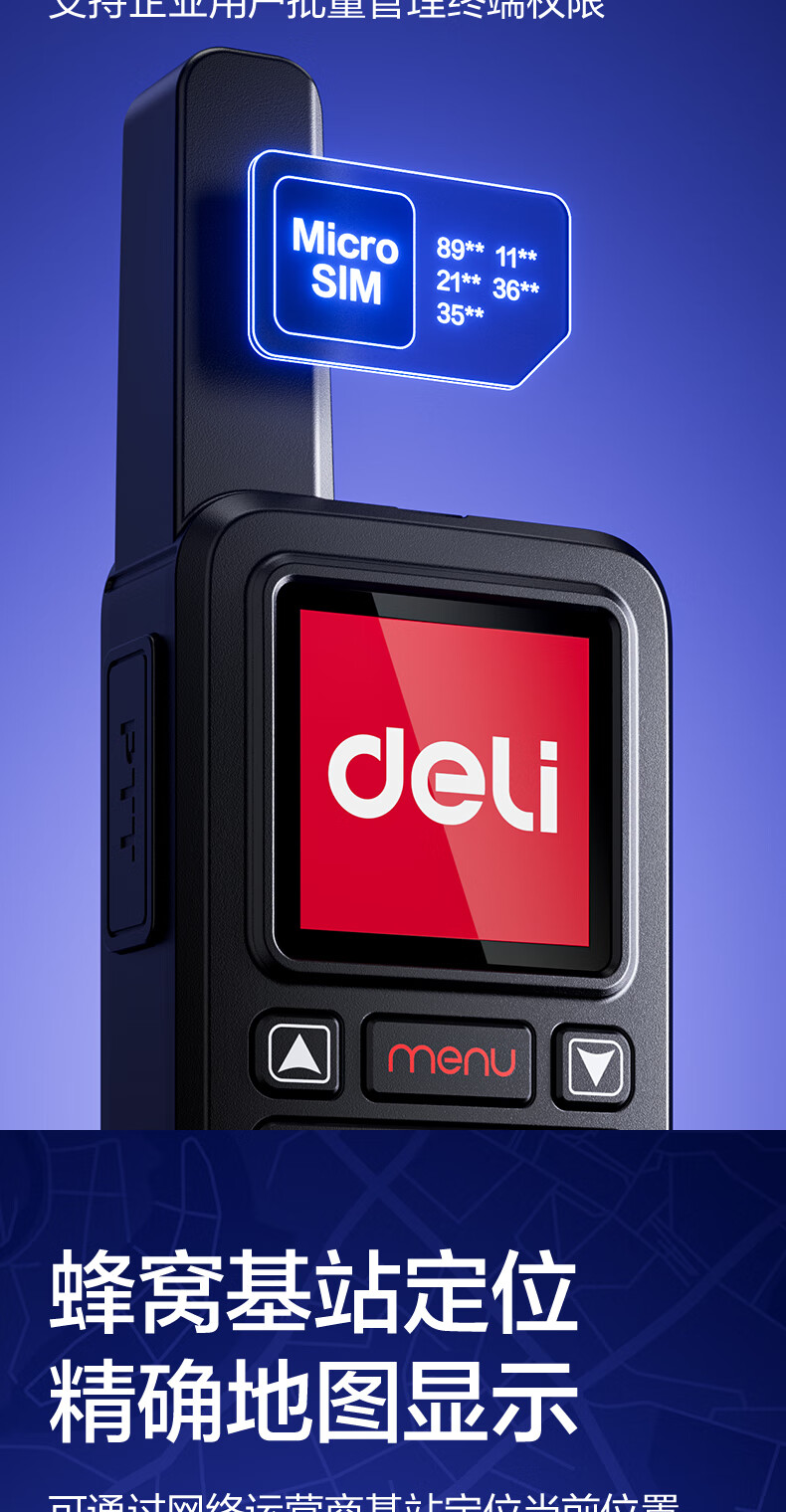 得力(deli)公网对讲机5000公里 DLS316 全国通话插卡免续费全网通物业酒店户外滑雪318车队自驾游物流手台 黑