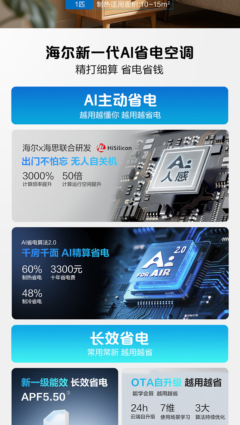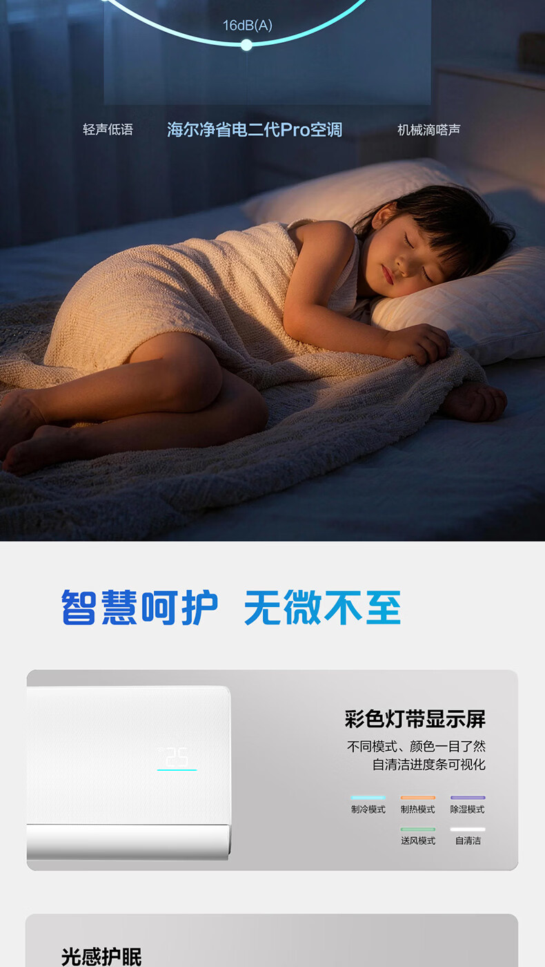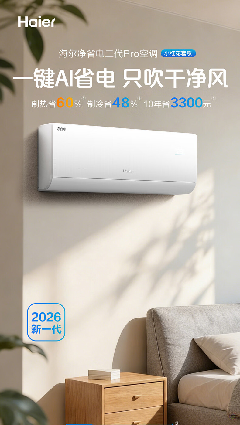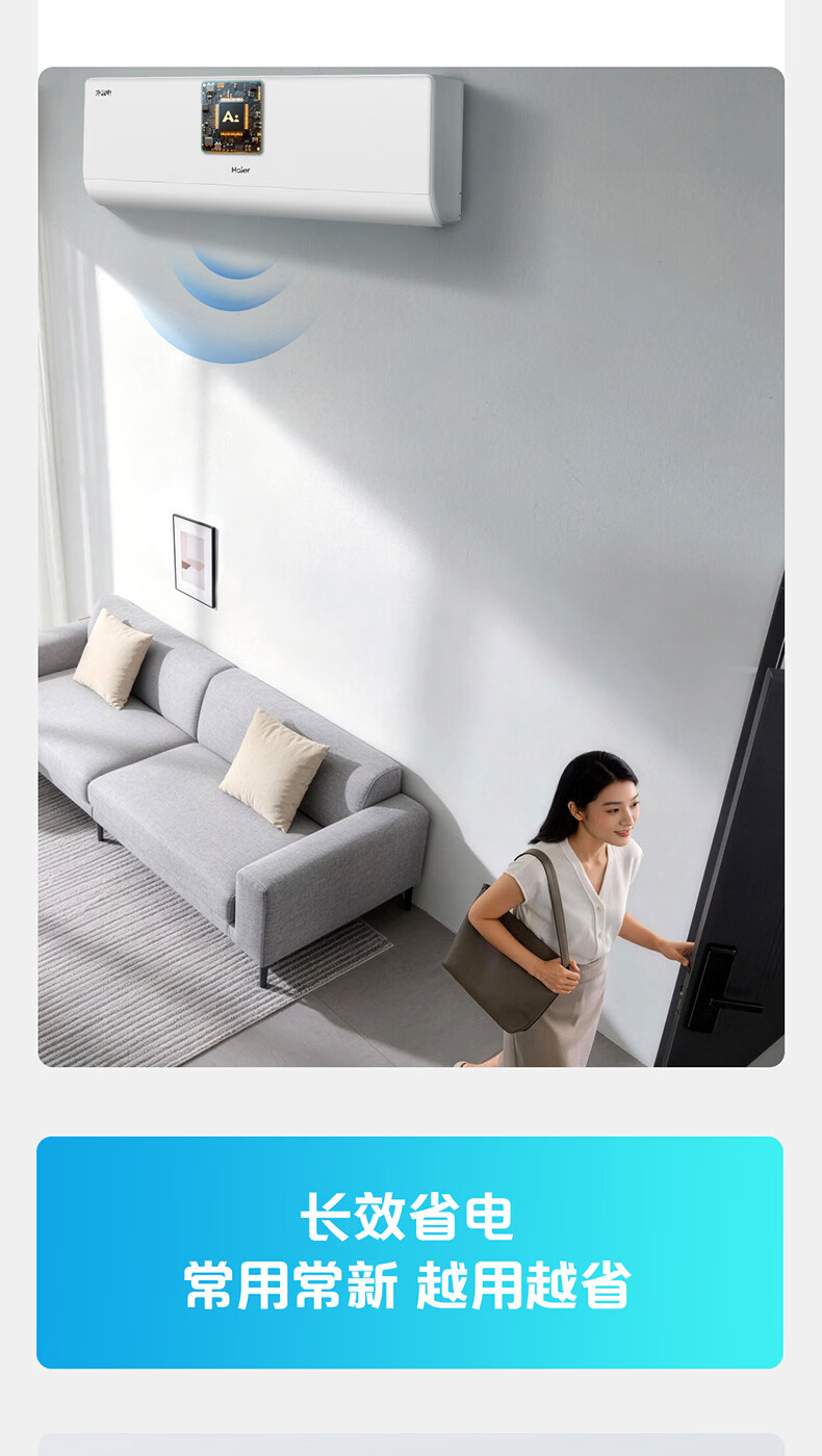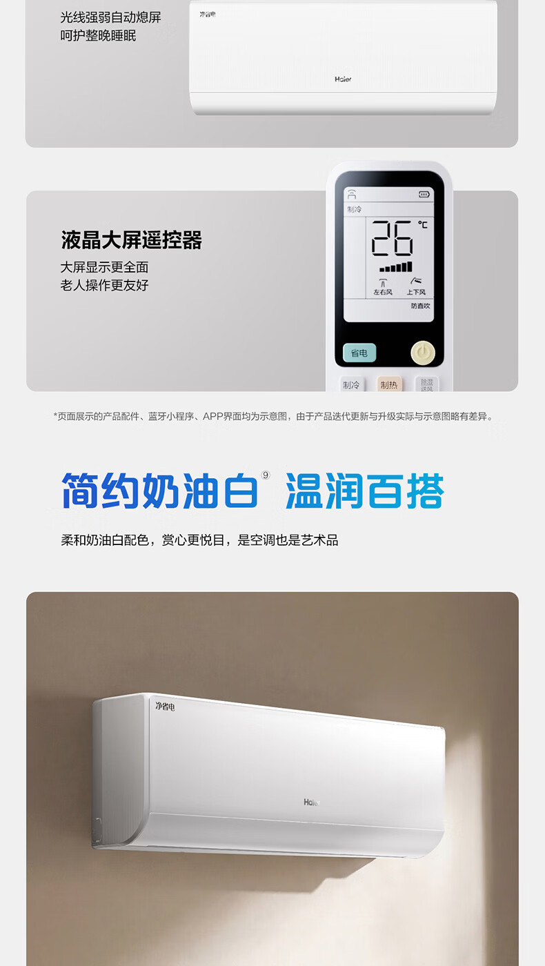 海尔空调 净省电二代Pro大1匹挂机 新一级能效变频挂式 大双排纯铜管蒸发器 国家补贴KFR-26GW/E1-1U