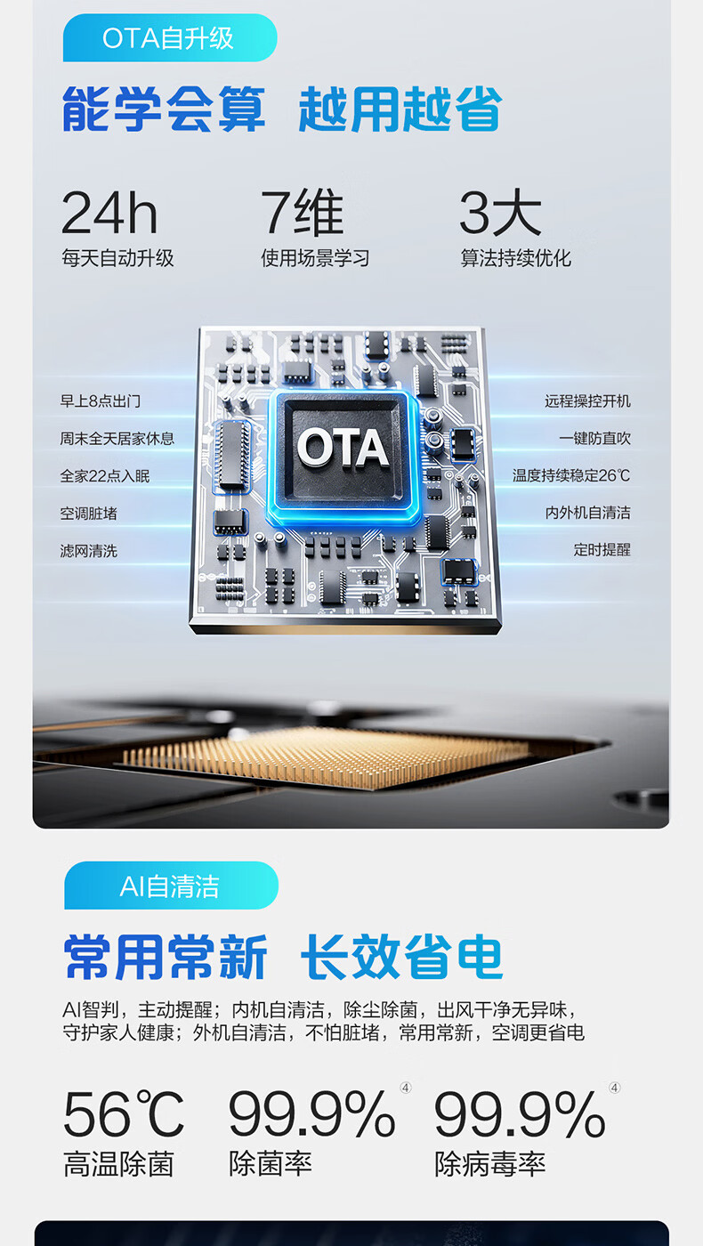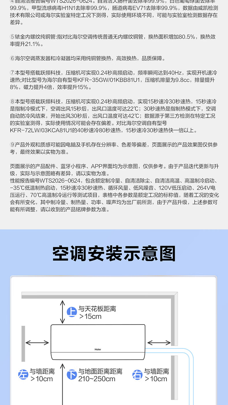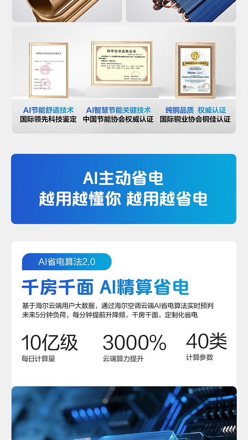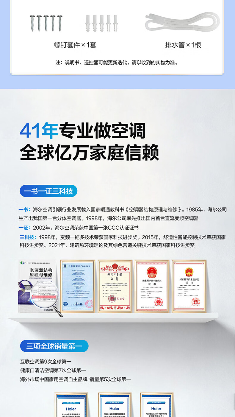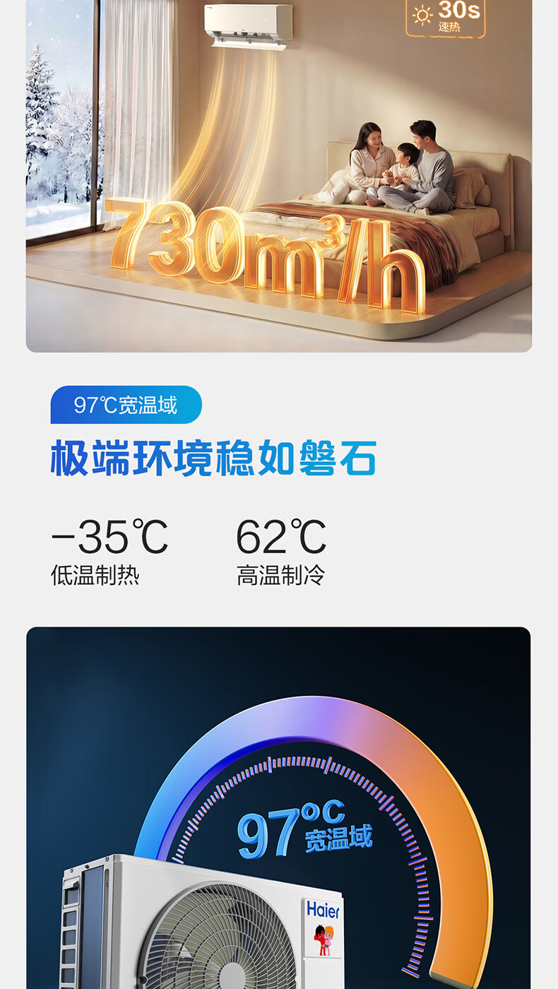 海尔空调 净省电二代Pro大1匹挂机 新一级能效变频挂式 大双排纯铜管蒸发器 国家补贴KFR-26GW/E1-1U