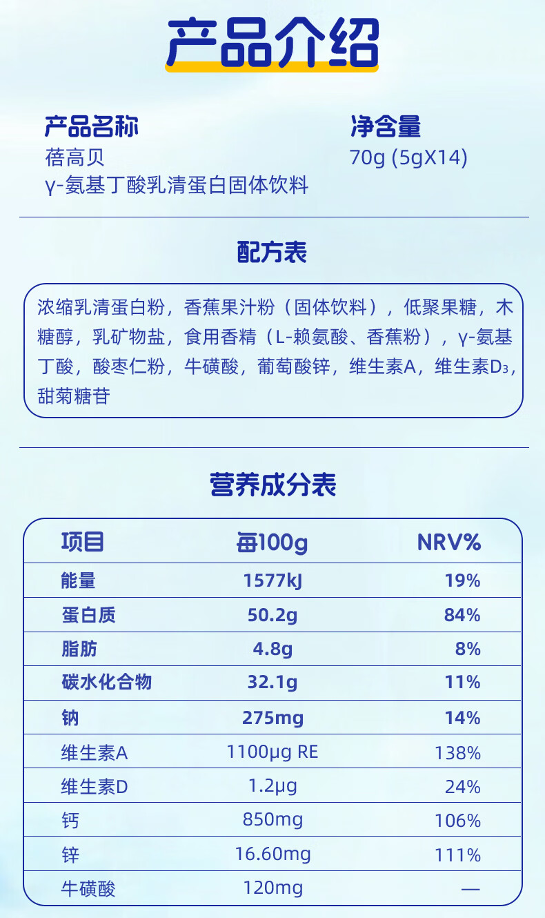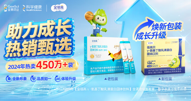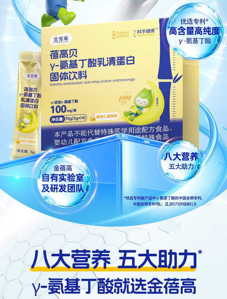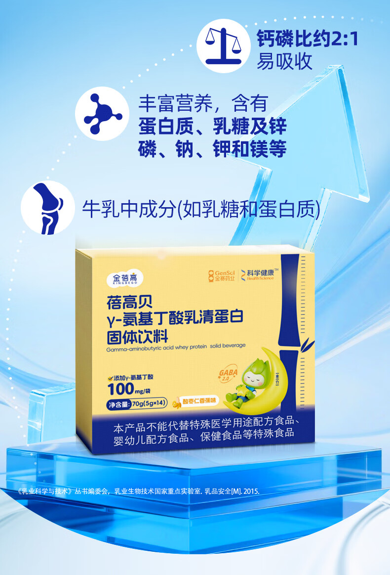金蓓高γ-氨基丁酸儿童青少年长高生长素长个子助长高 香蕉味14条*2盒