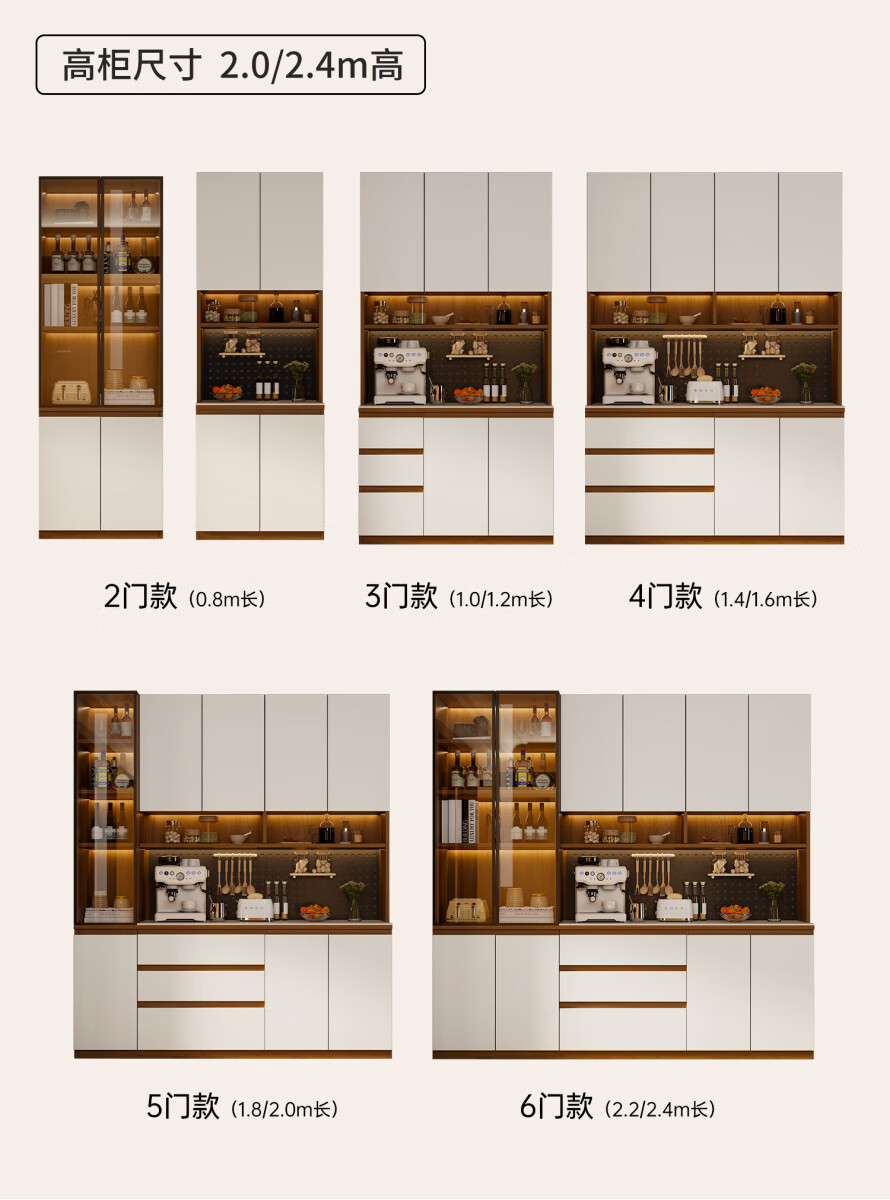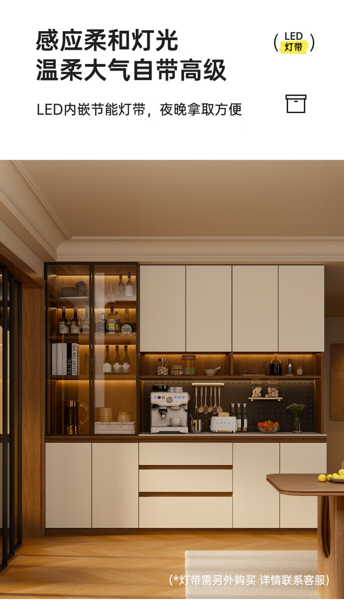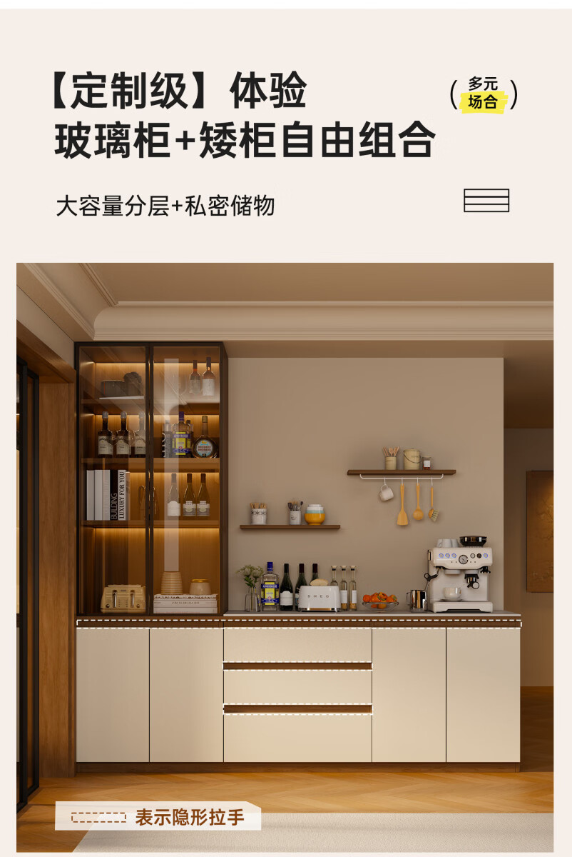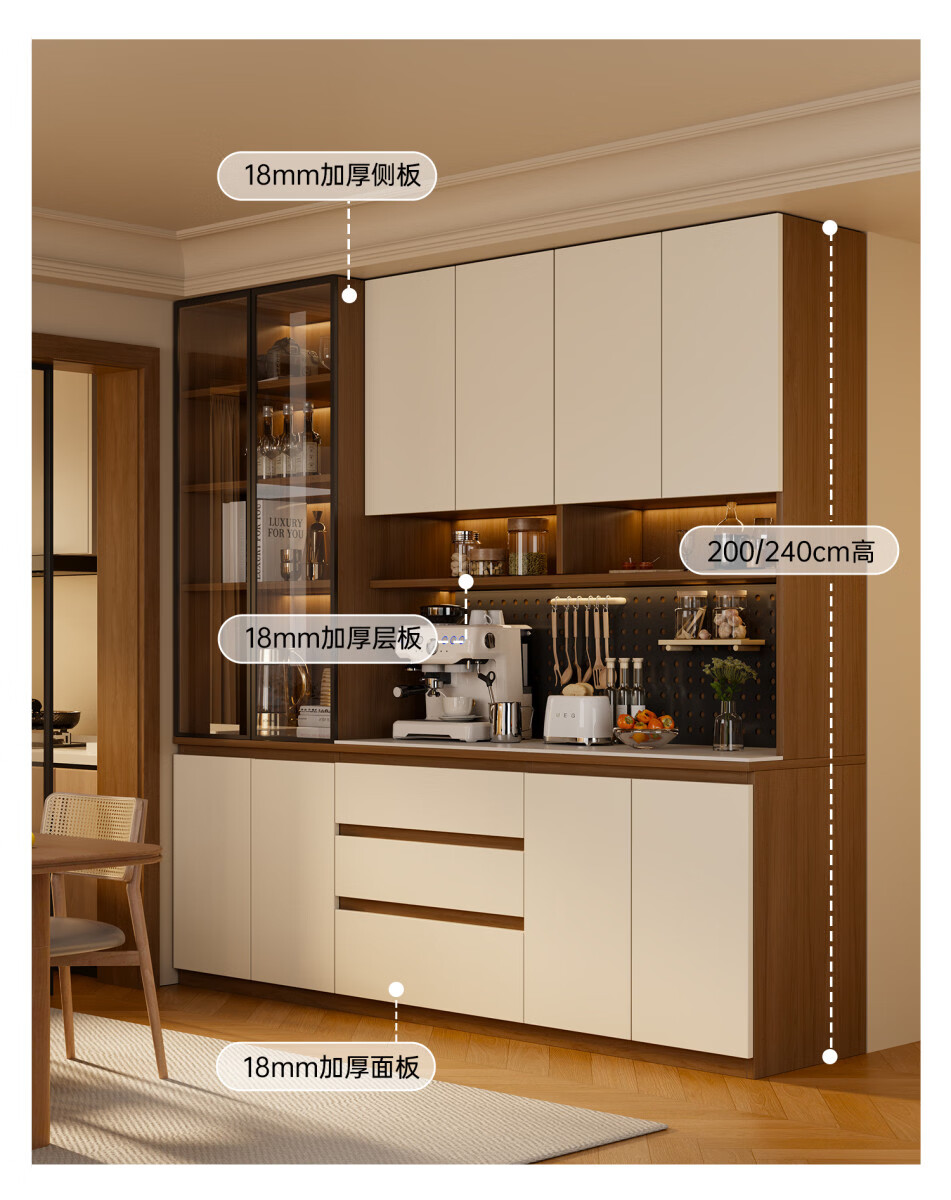 溥畔风餐边柜置物靠墙一体储物收纳柜子客厅酒柜茶水咖啡柜吧台 [满墙柜]六门240x40x240丨整柜18MM厚