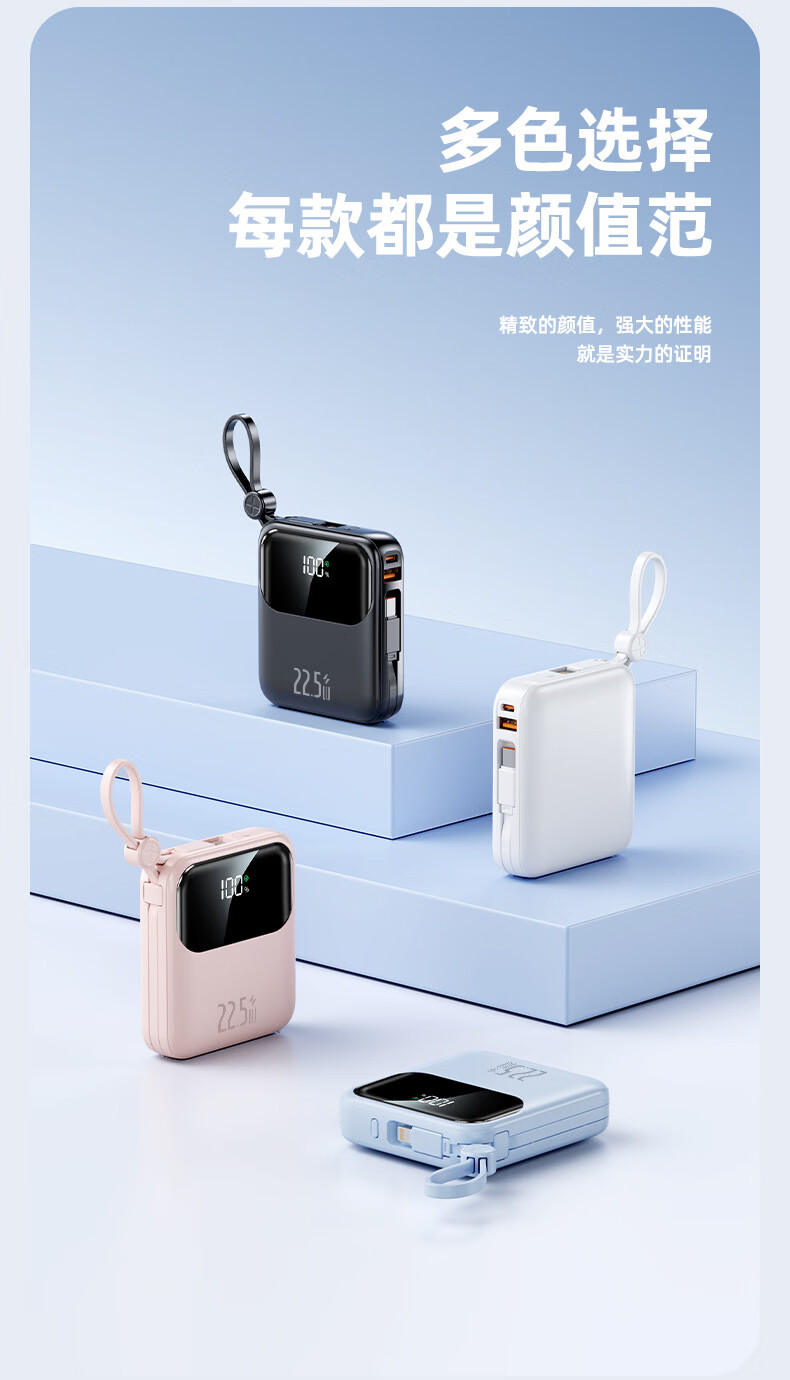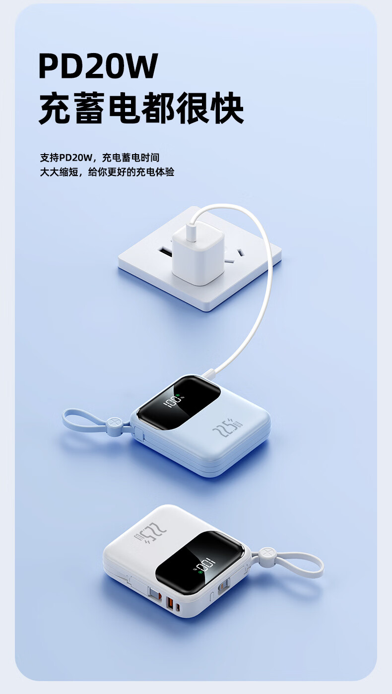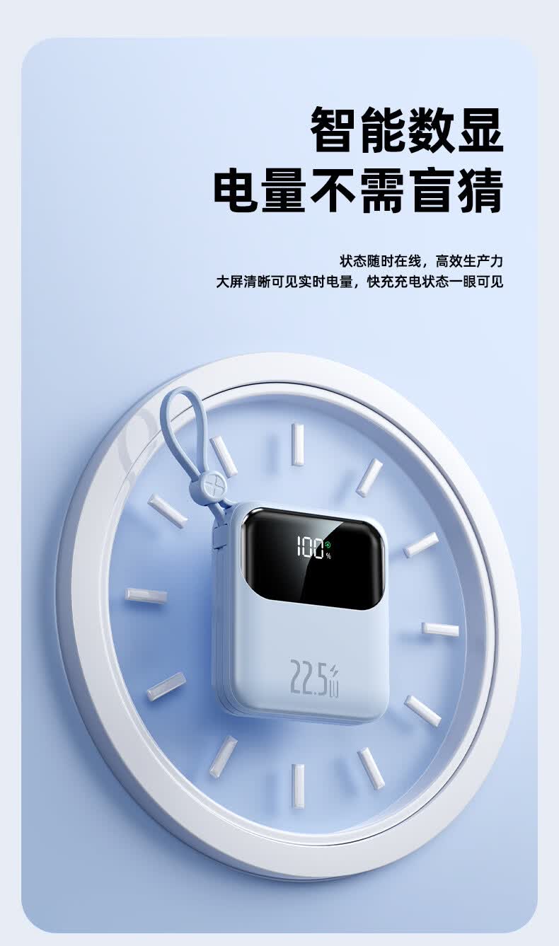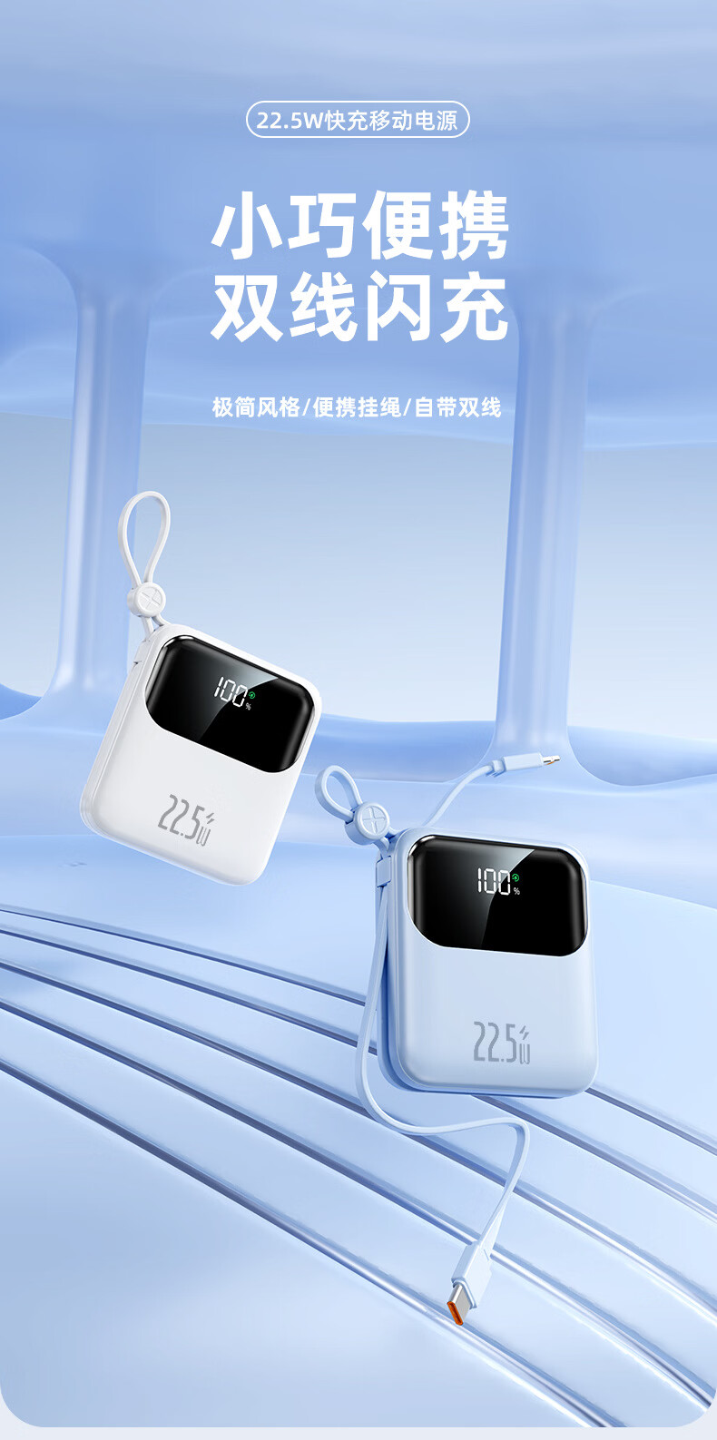 柯训3C认证22.5W快充10000毫安便携充电宝自带线移动电源定 制log 白色 10000mAH【足容】