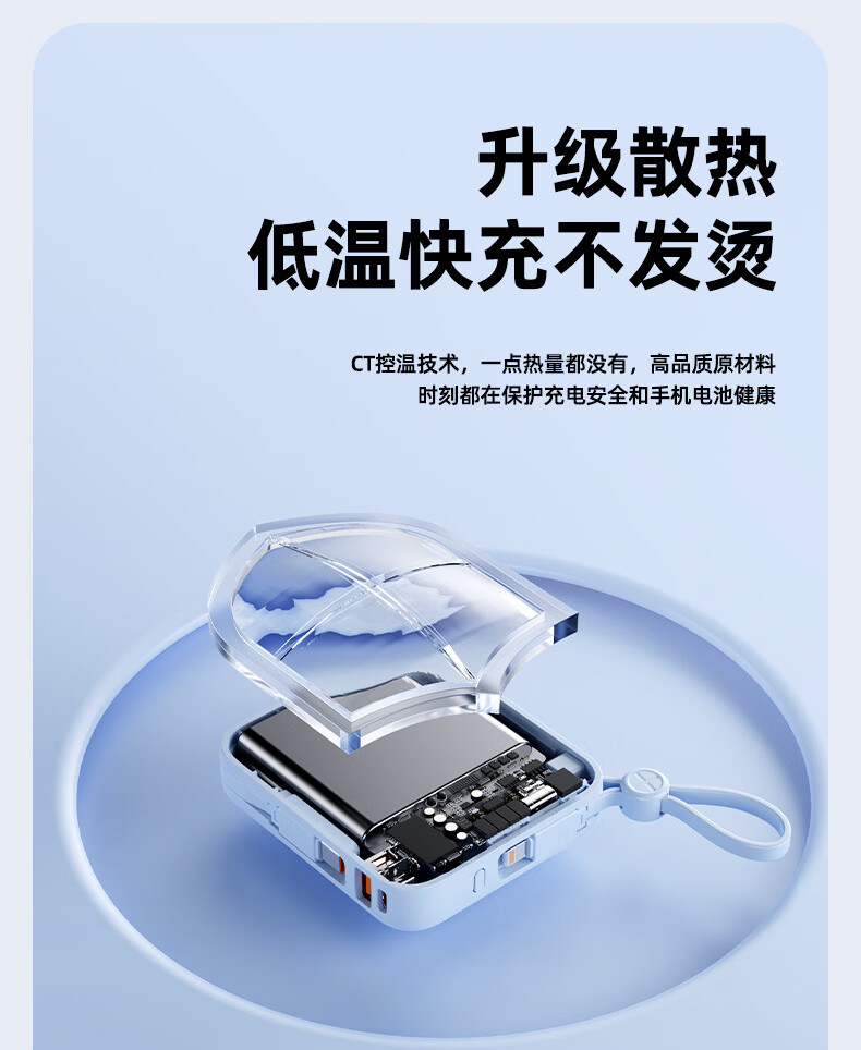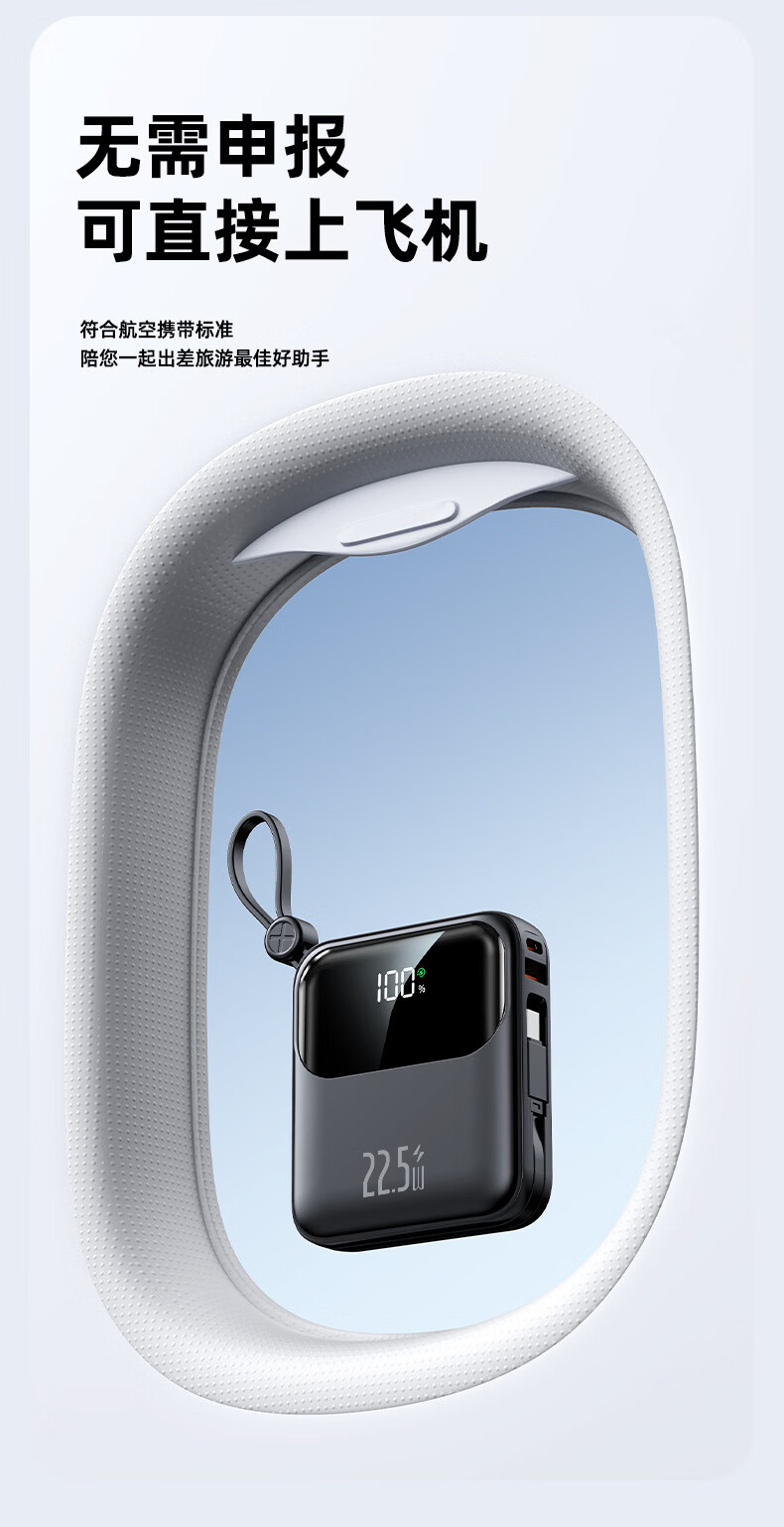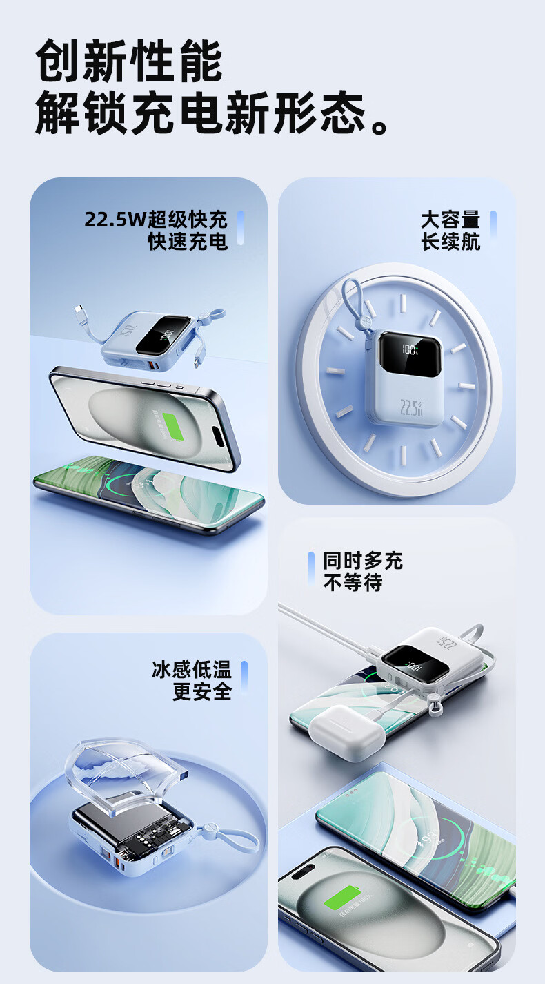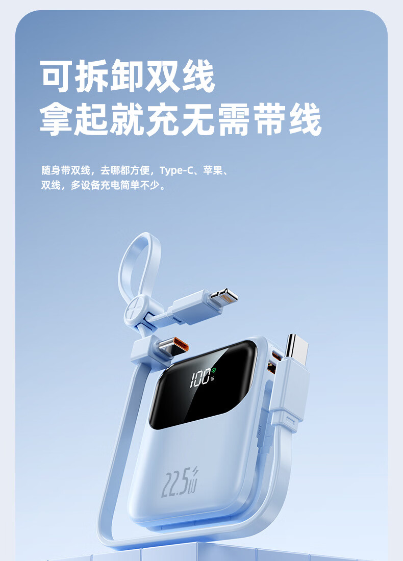 柯训3C认证22.5W快充10000毫安便携充电宝自带线移动电源定 制log 白色 10000mAH【足容】