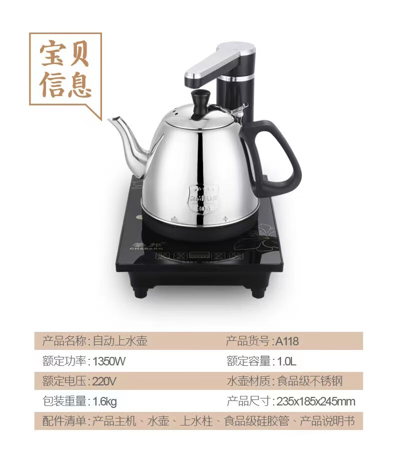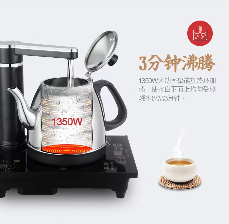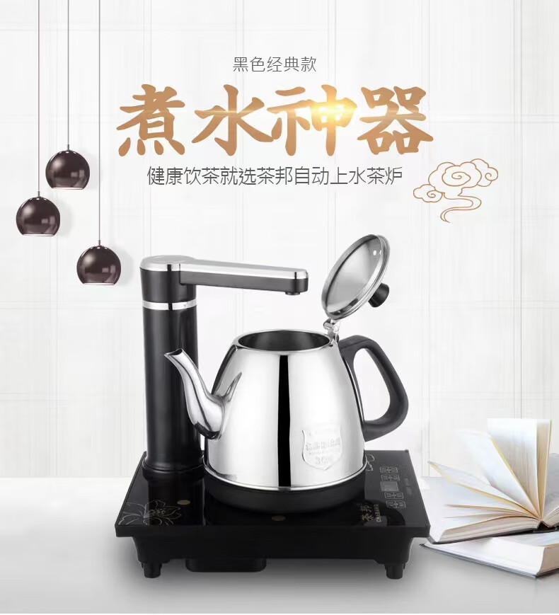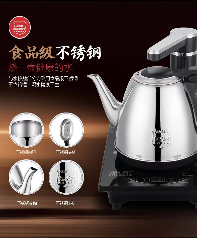 茶邦全自动上水壶电热烧水壶家用一体泡茶专用煮茶台办公室茶邦 CB-A 1L 全自动防烫款黑色食品级不锈钢+茶杯五件套 可