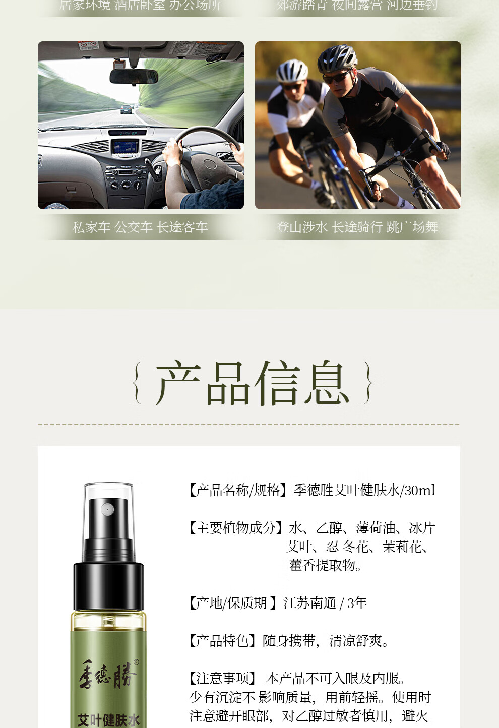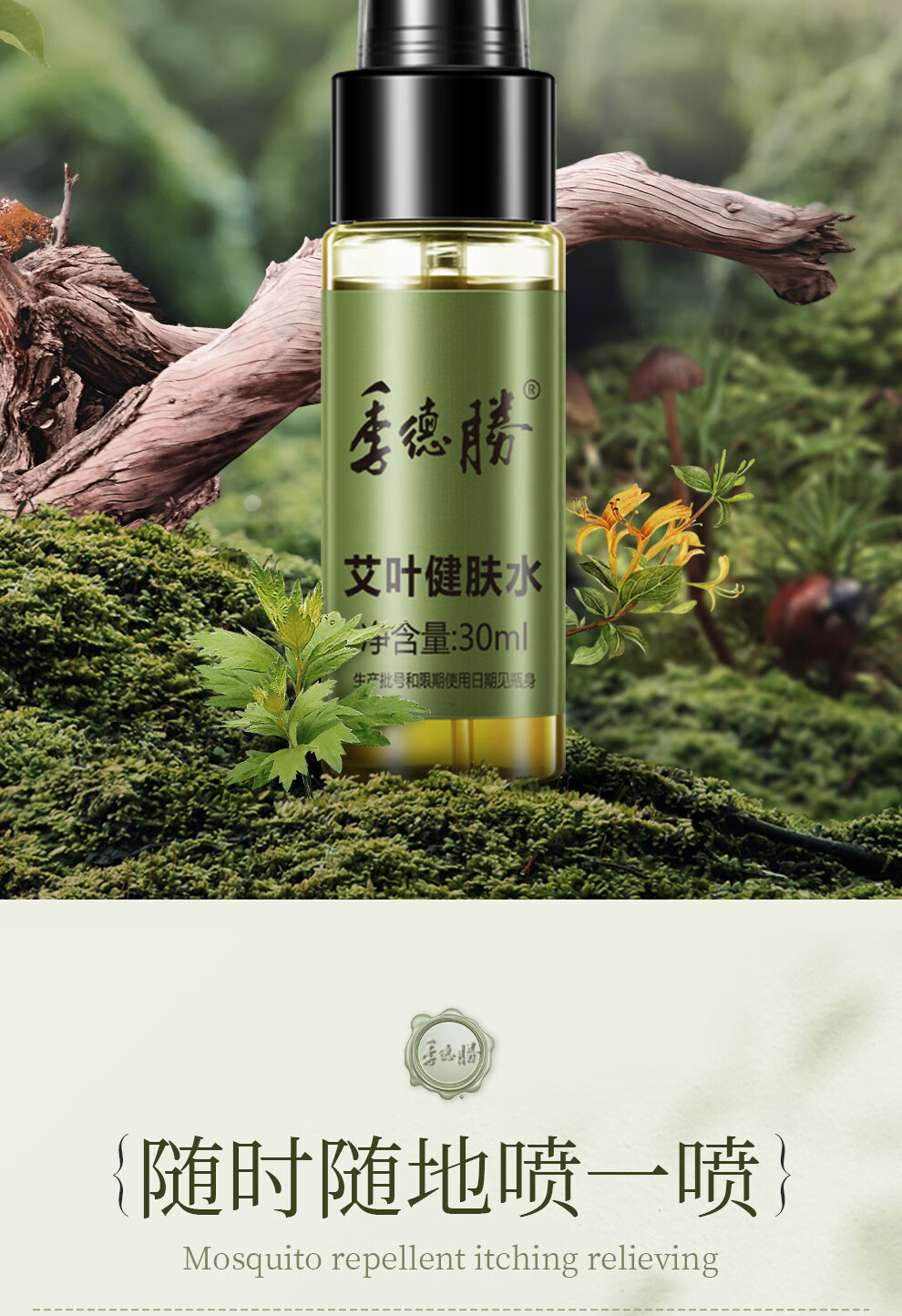 季德胜艾叶健肤水蚊虫叮咬爽身健肤水30ml 艾叶止痒健肤水