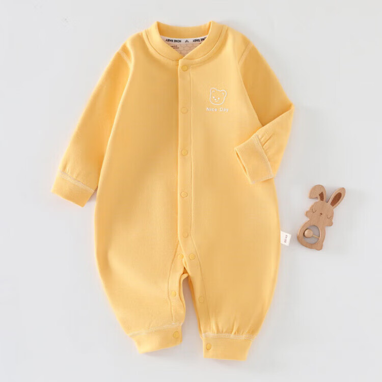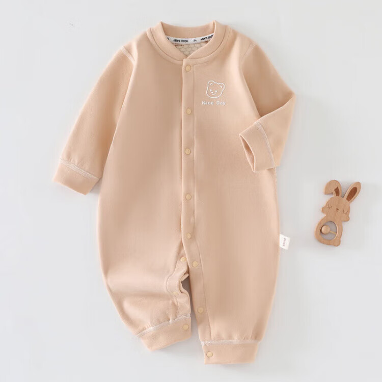 温小影宝宝秋冬新款温变连体衣婴儿无骨长袖爬服新生儿加厚保暖安阳童装 米色温感连体保暖 59cm (5-10斤合适)