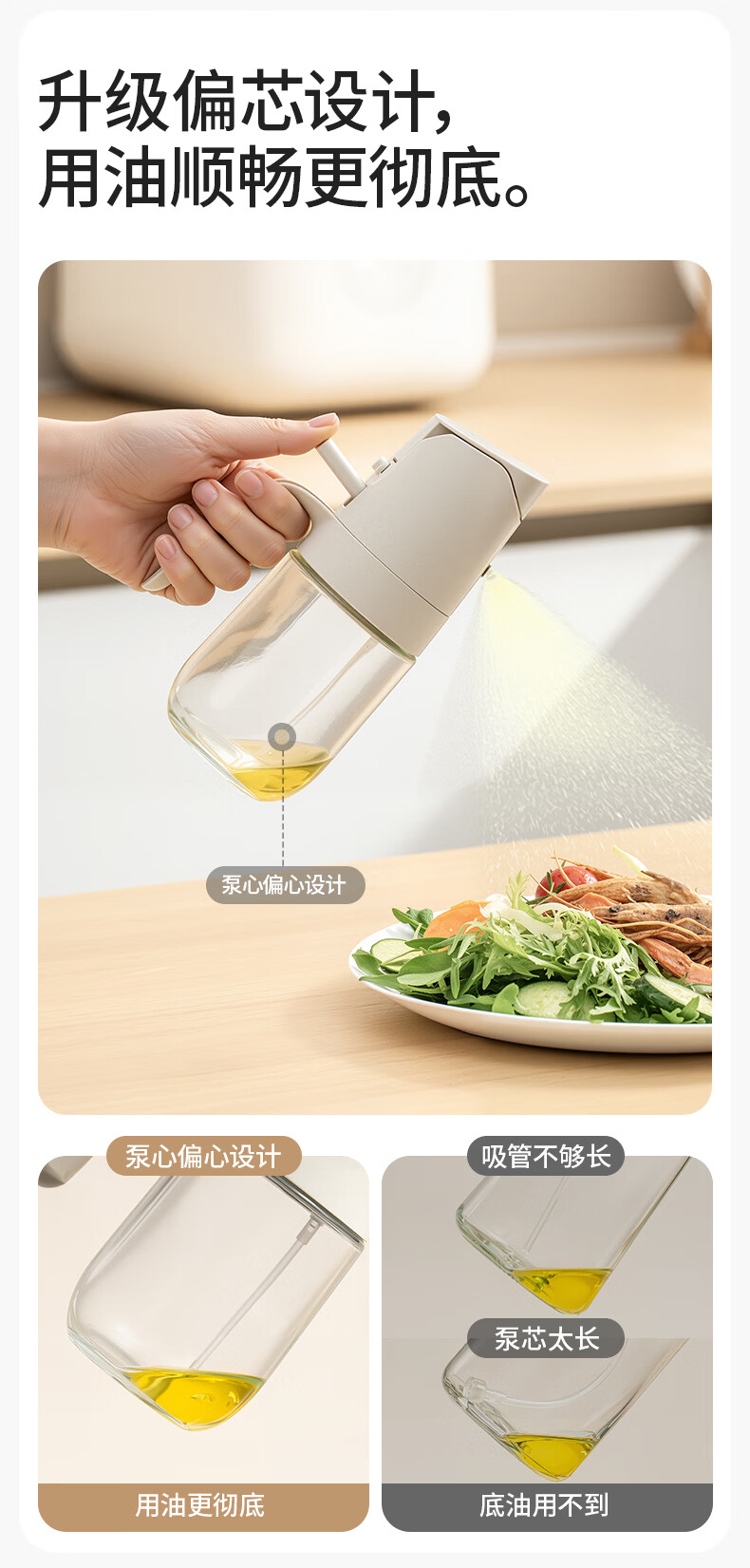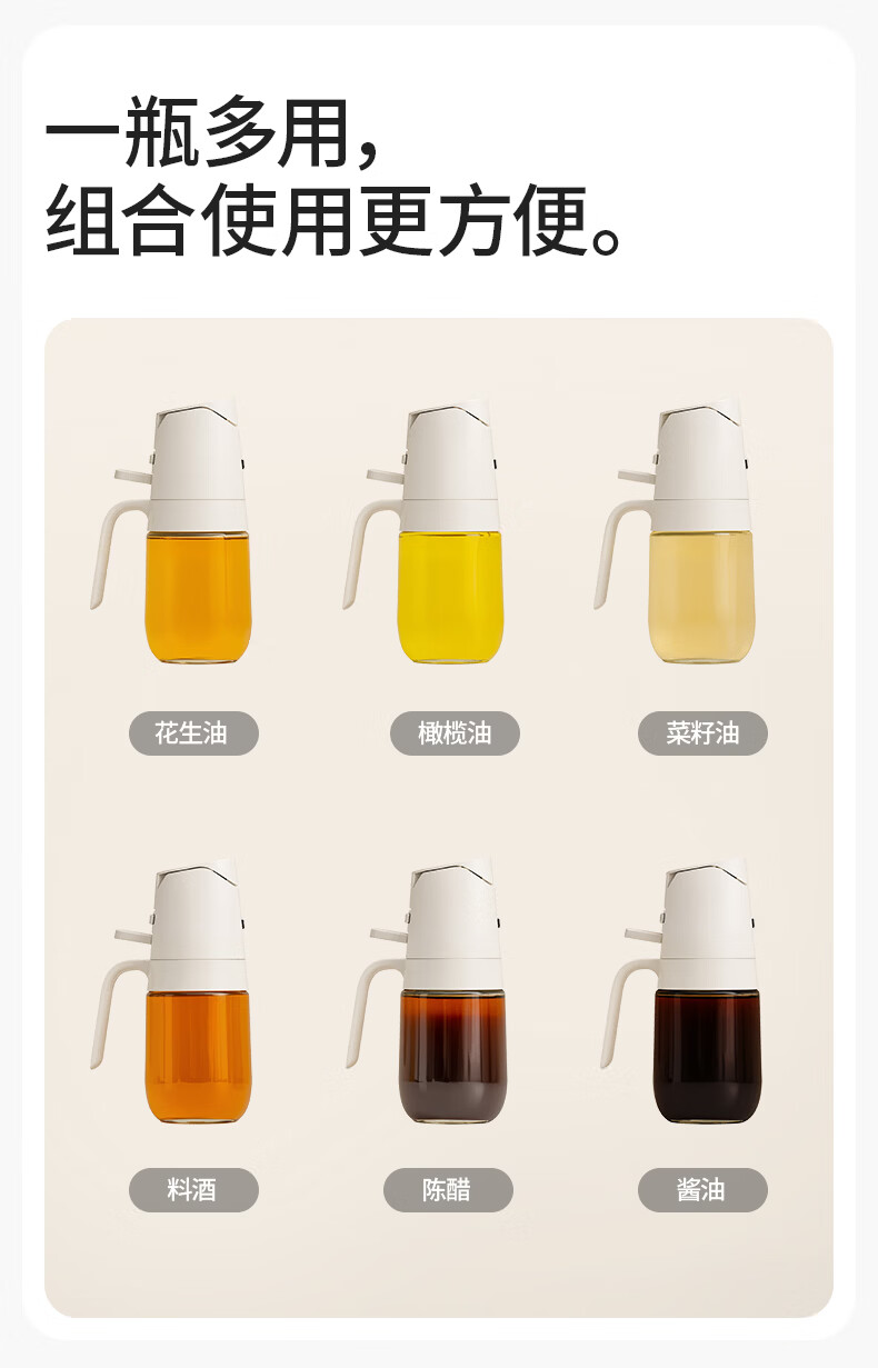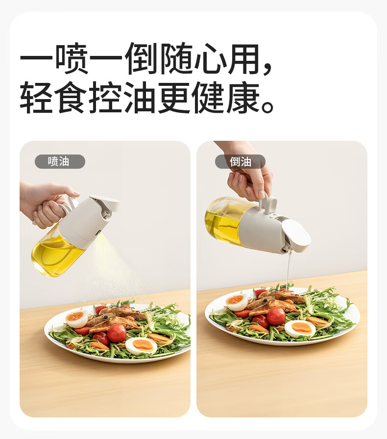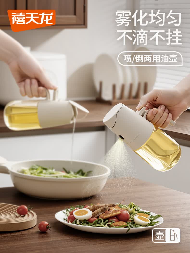 禧天龙油壶喷油壶 倒油喷油一体食用油玻璃油壶厨房家用不挂油 喷倒两用油壶-330ml
