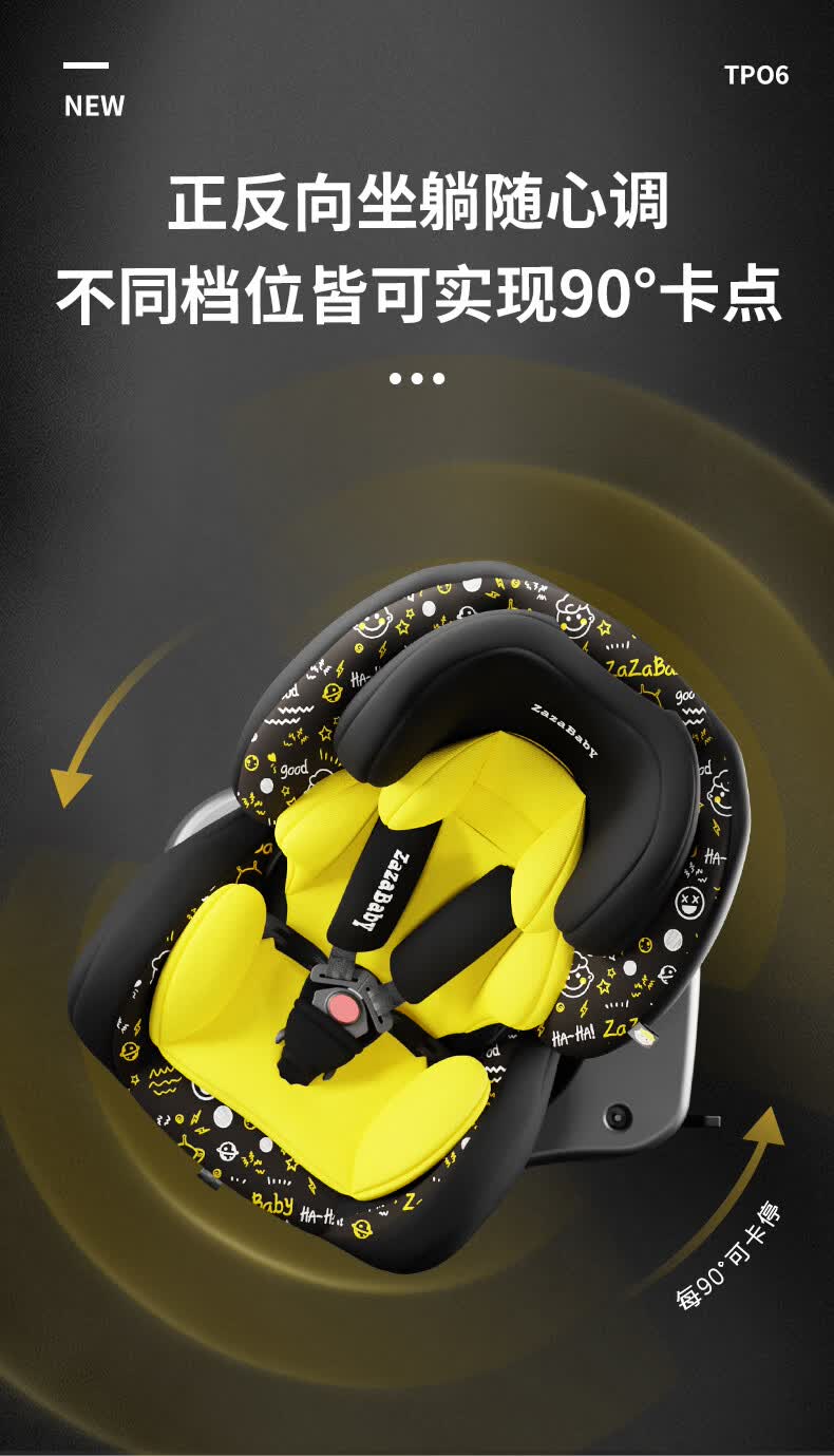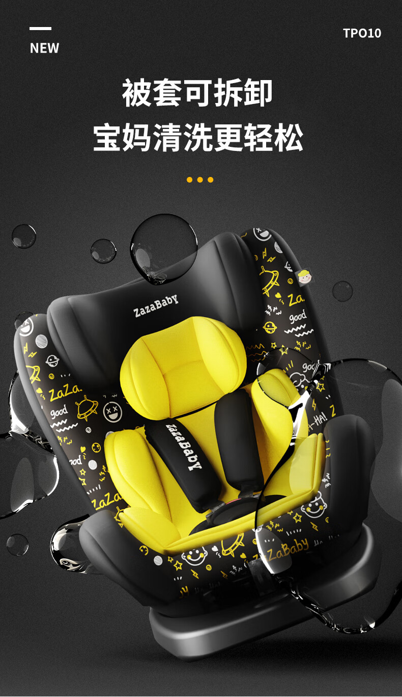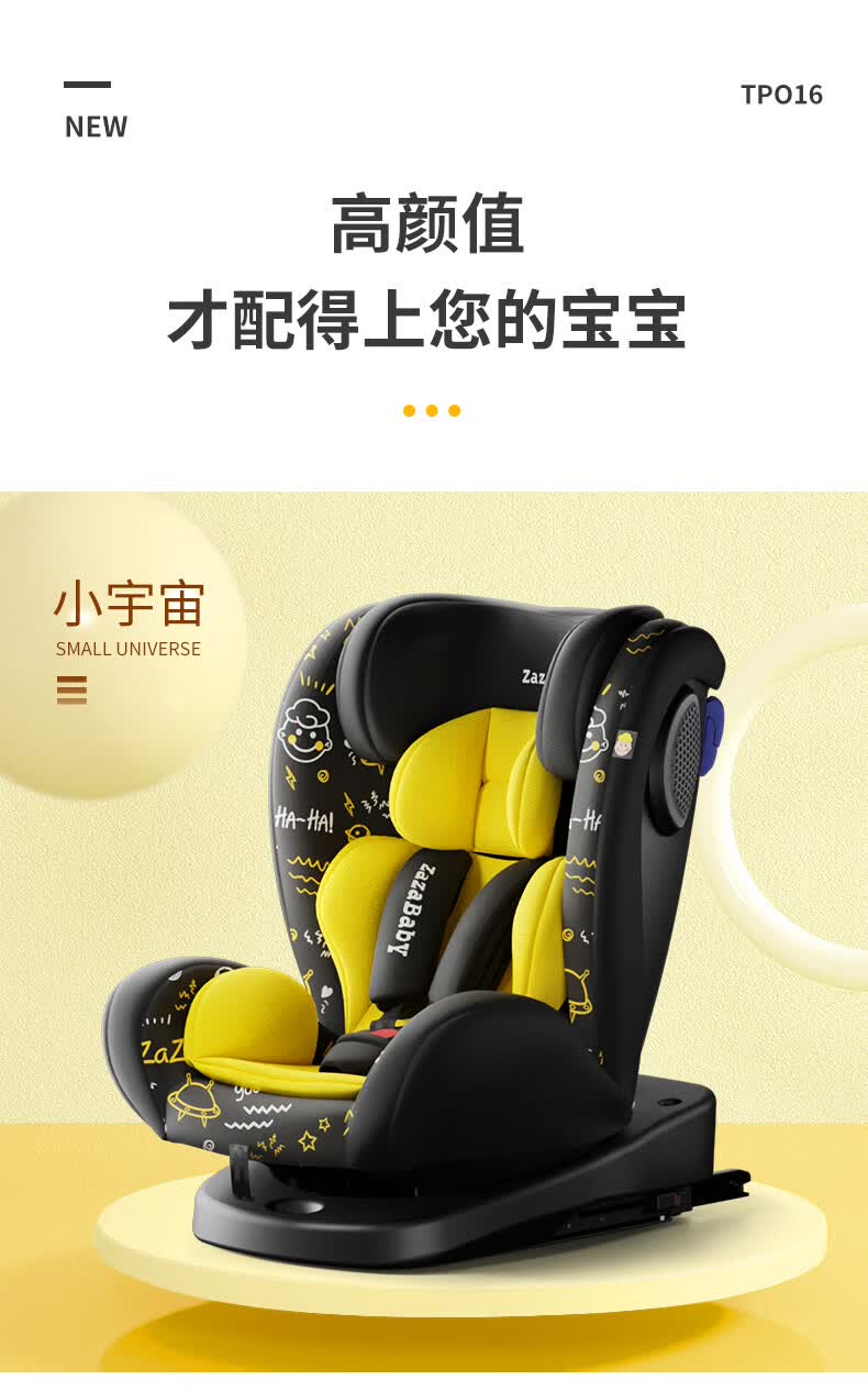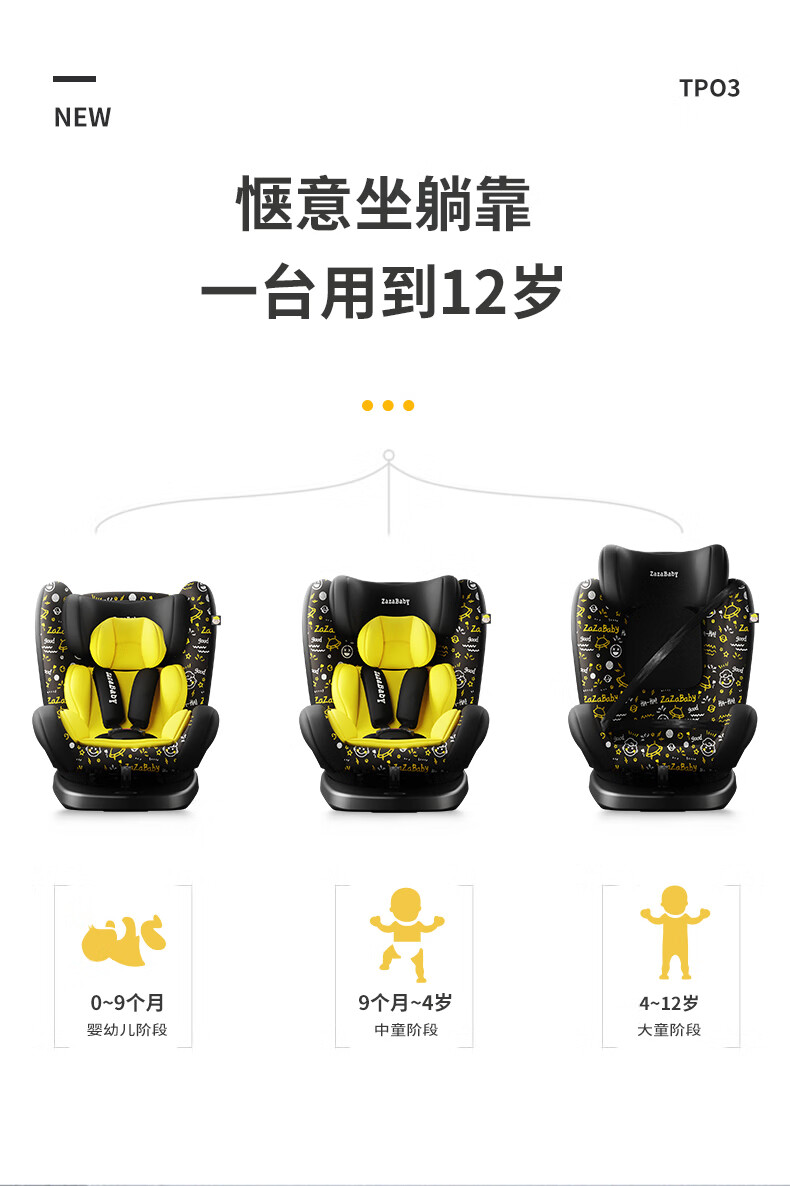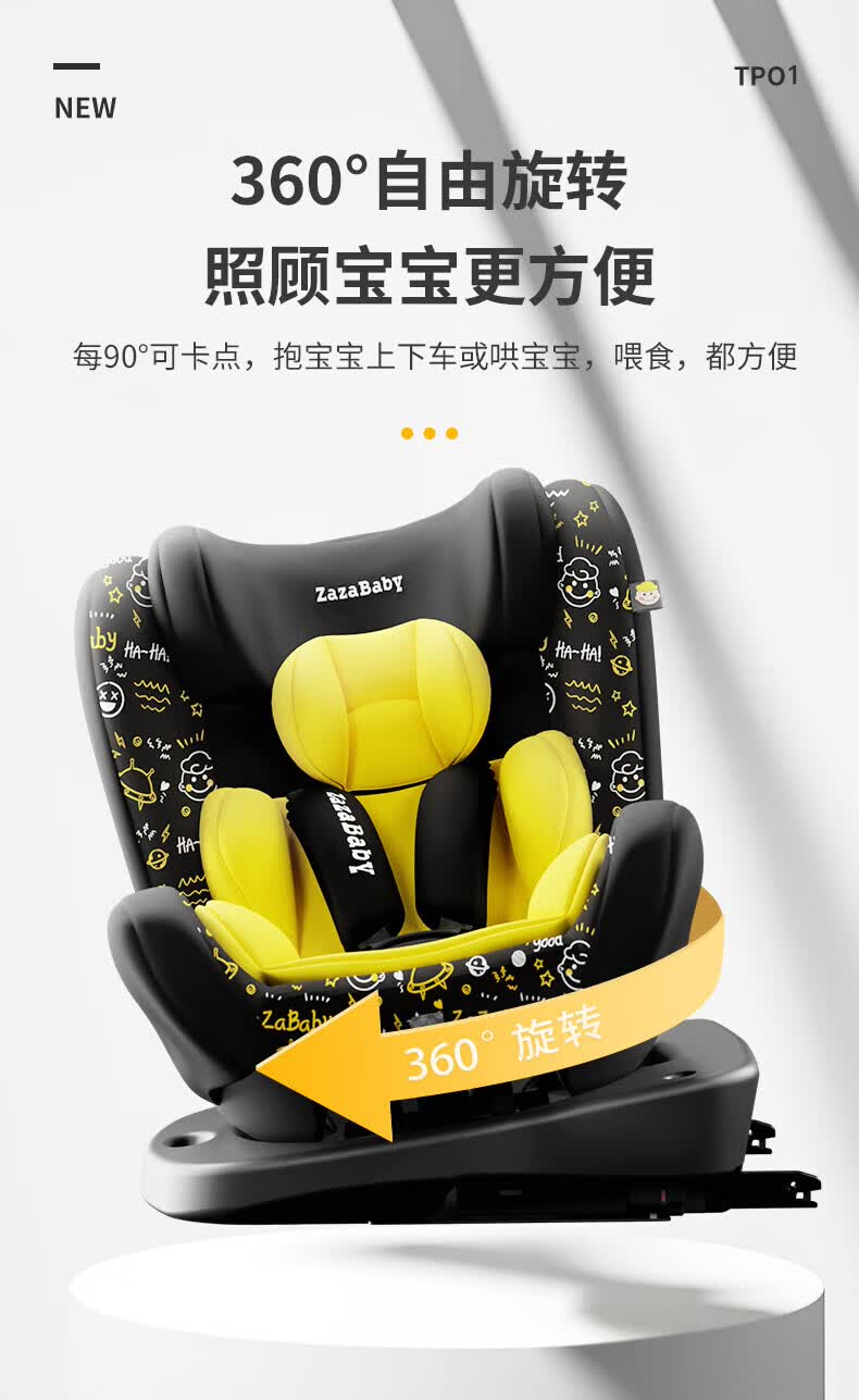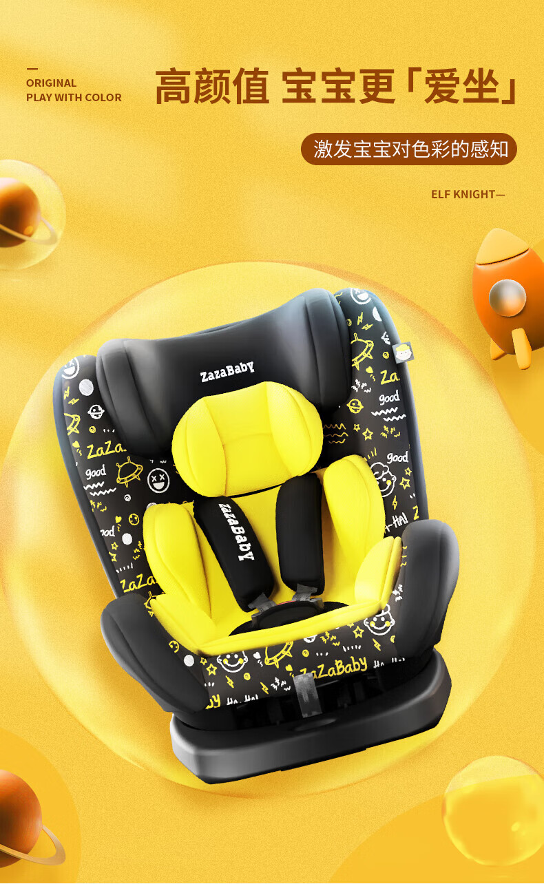 ZazaBaby儿童安全座椅婴儿宝宝0-10岁 汽车用isofix接口360旋转 捣蛋黄【360°旋转、中欧认证】