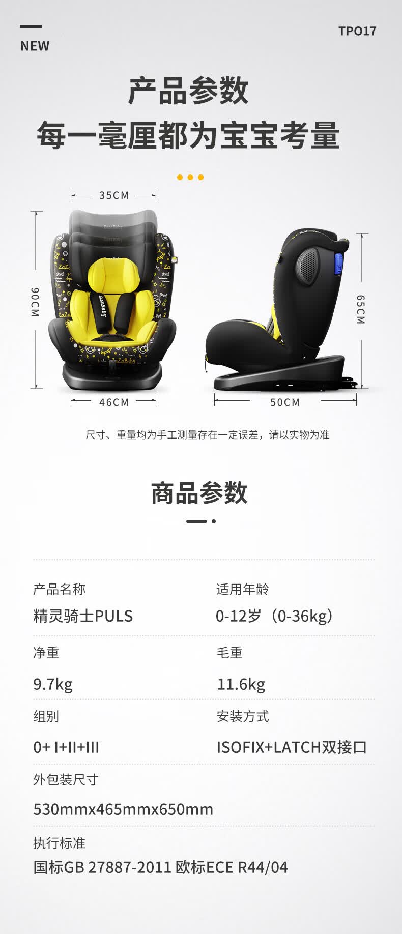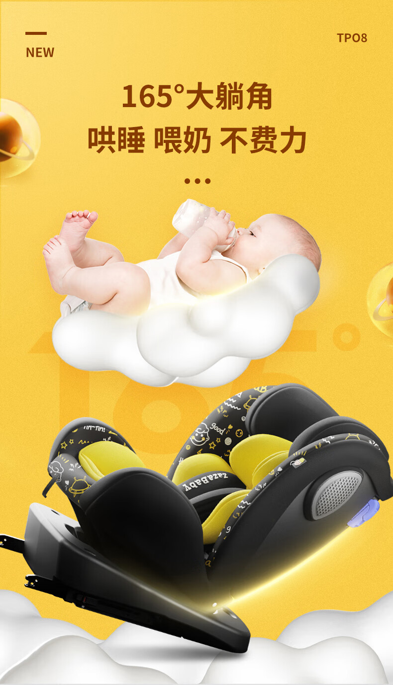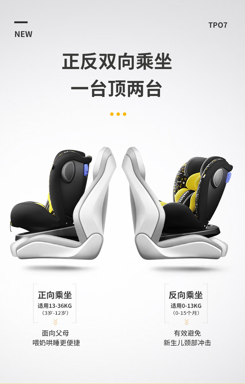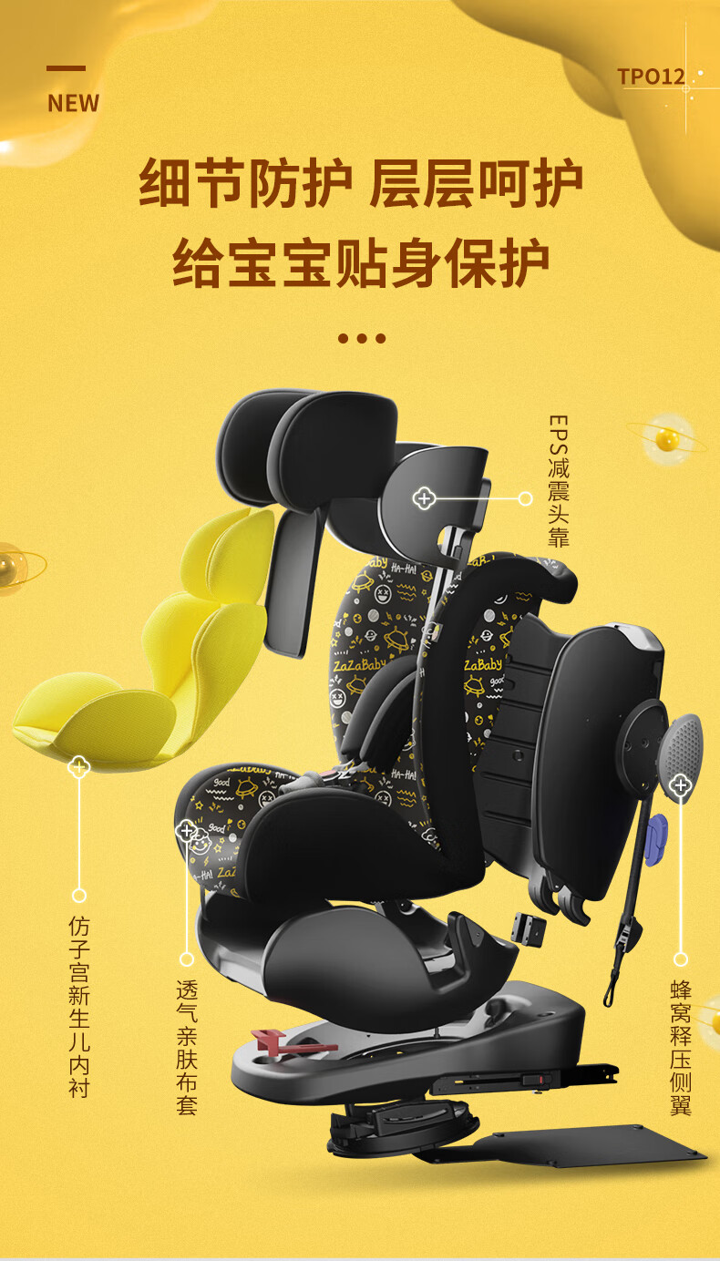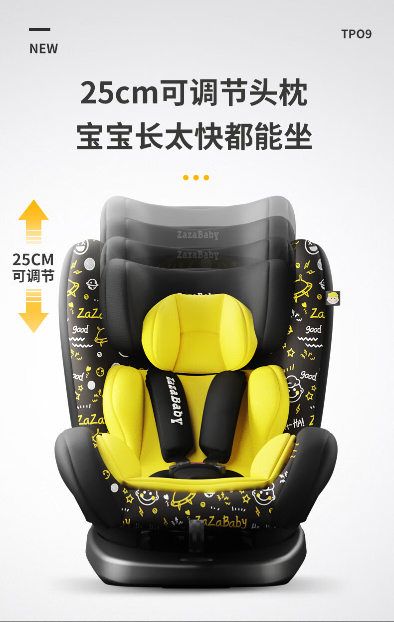ZazaBaby儿童安全座椅婴儿宝宝0-10岁 汽车用isofix接口360旋转 捣蛋黄【360°旋转、中欧认证】