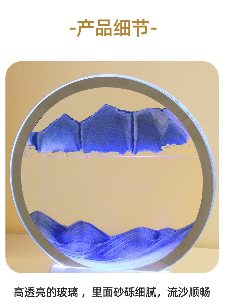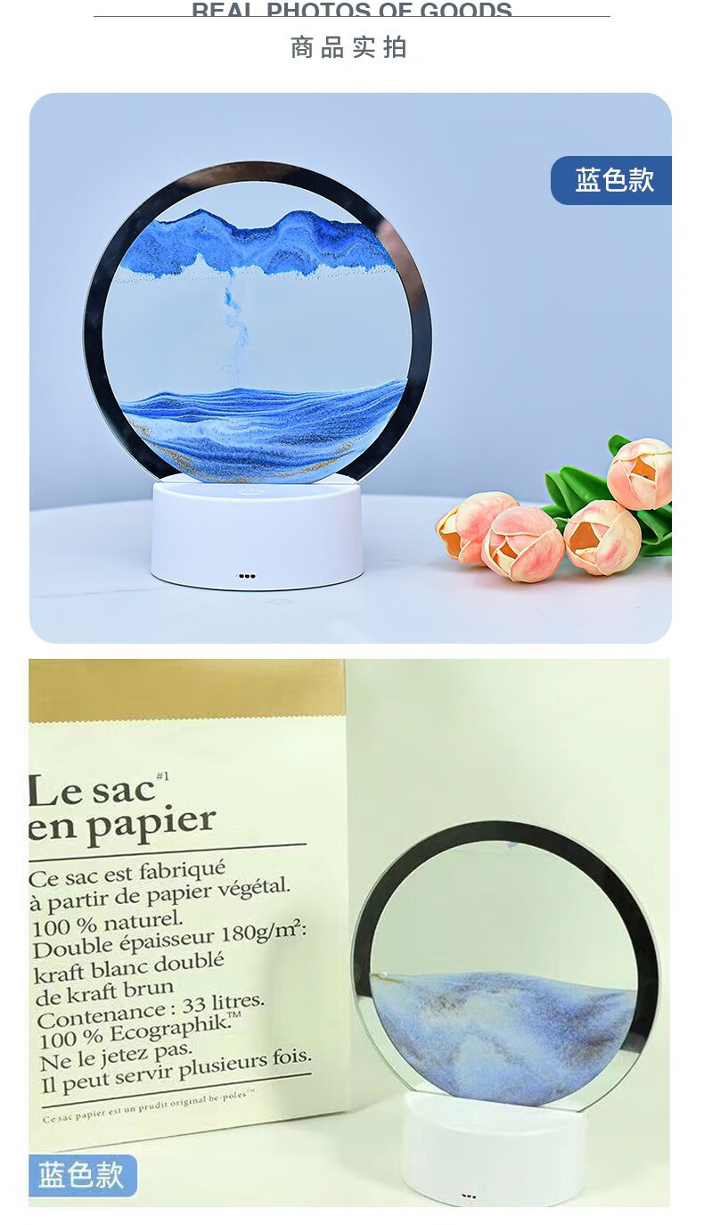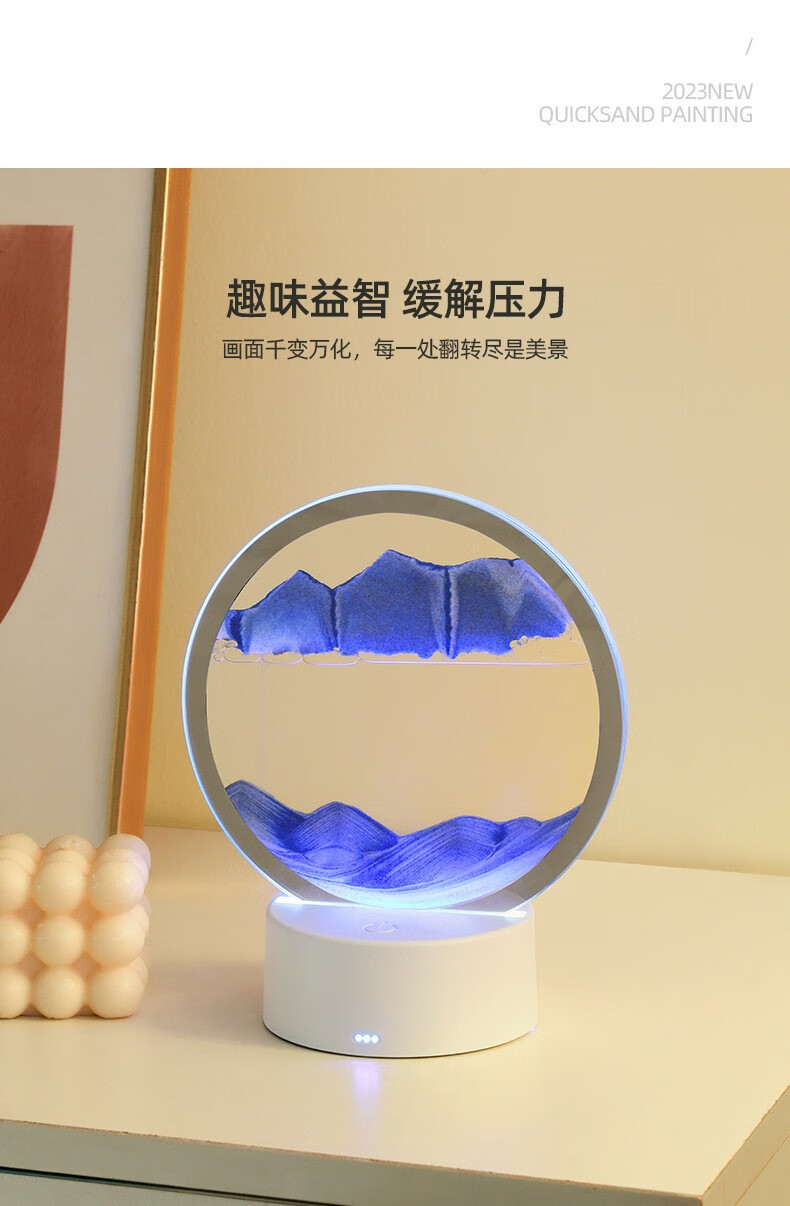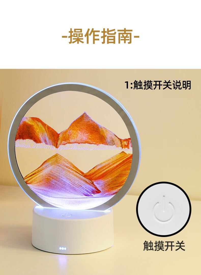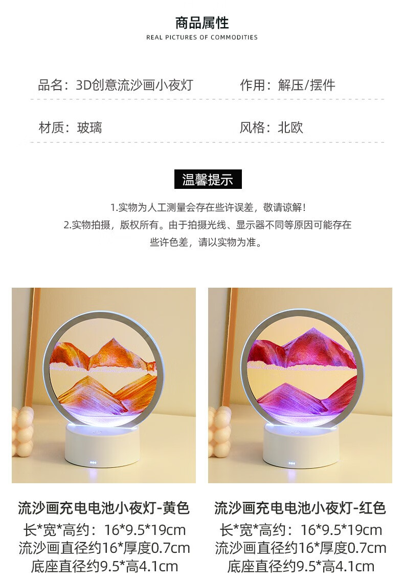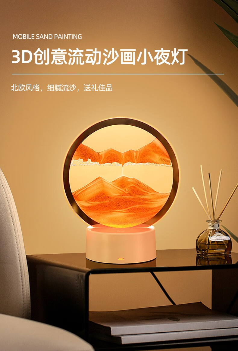 鸿礼钰流沙画小夜灯 USB氛围灯卧室床头桌面办公室沙漏摆件儿童节礼物 12寸圆翻转黄色 不带灯