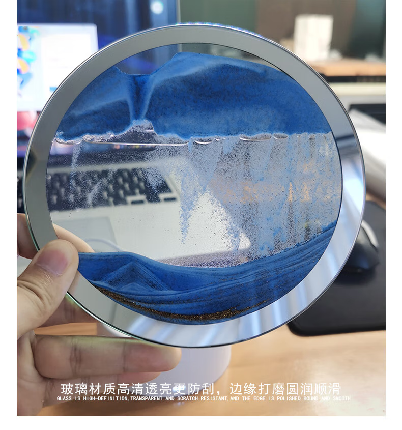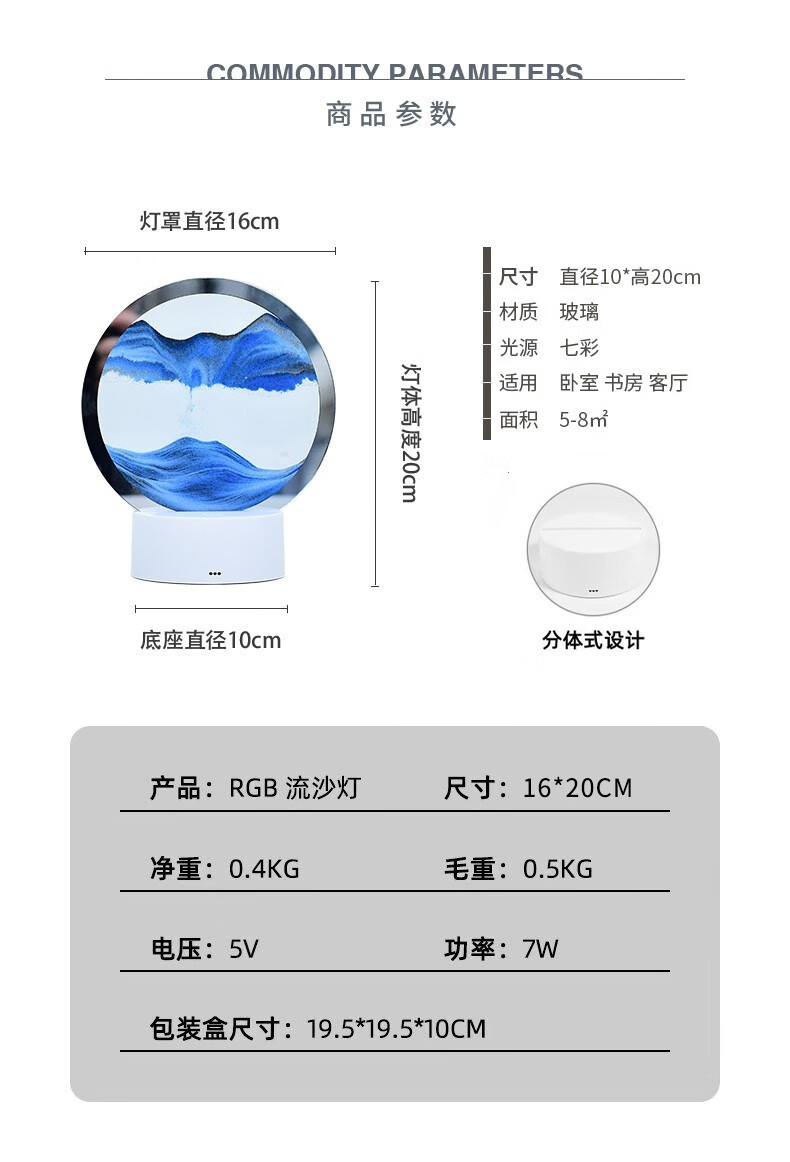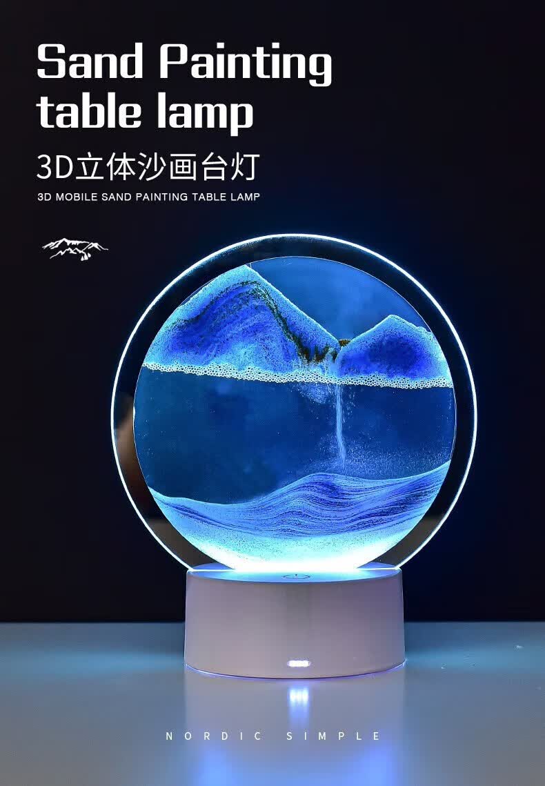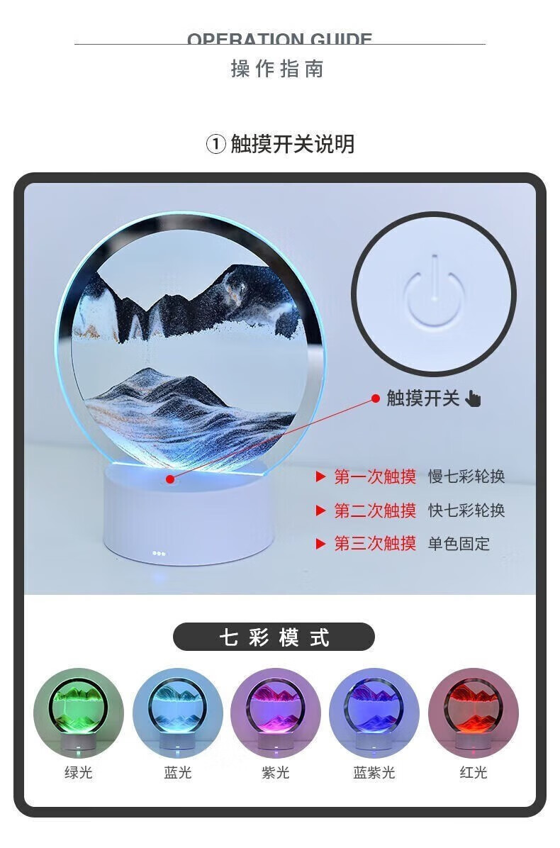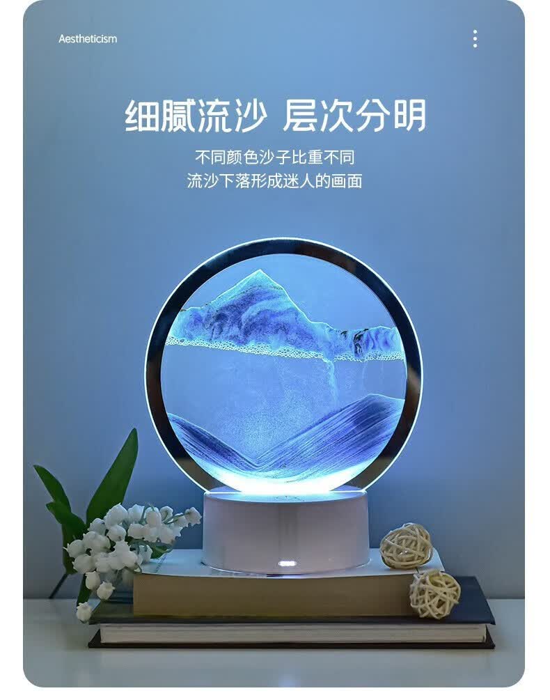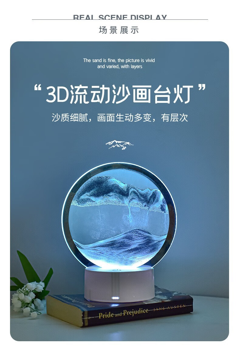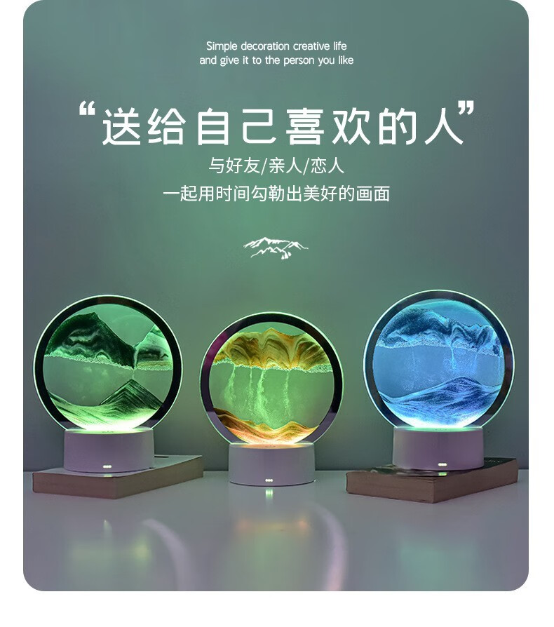 鸿礼钰流沙画小夜灯 USB氛围灯卧室床头桌面办公室沙漏摆件儿童节礼物 12寸圆翻转黄色 不带灯