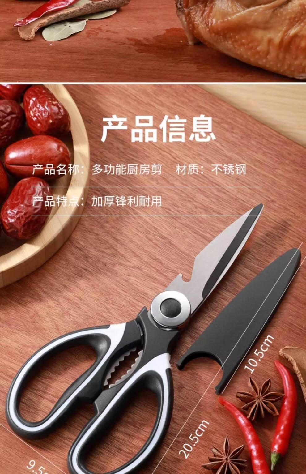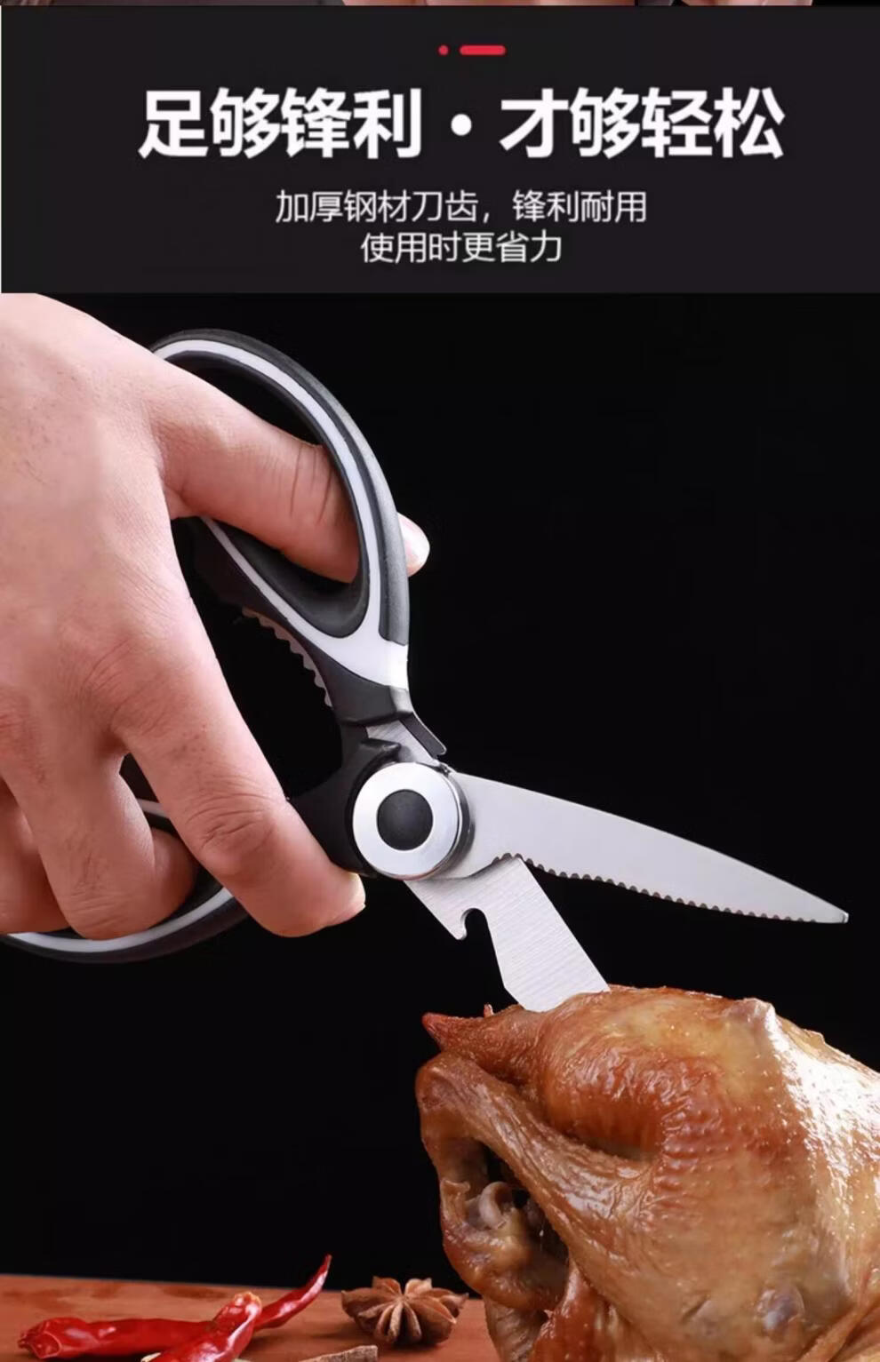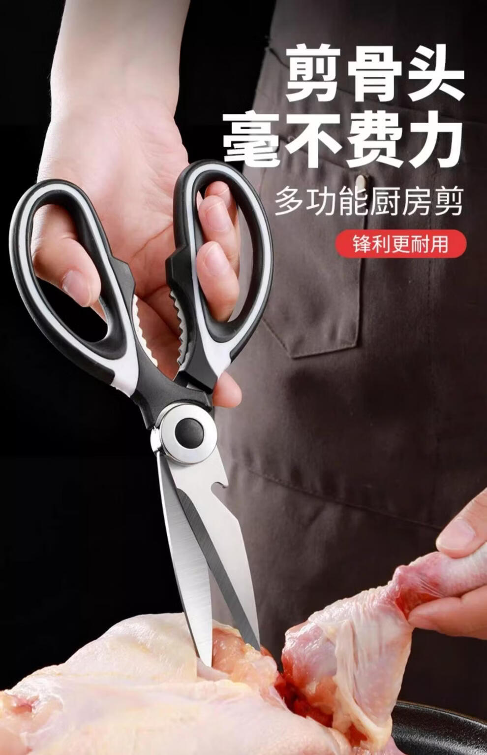 快本多功能鸡骨剪杀鱼食物剪子铝合金厨房强力大号不锈钢家用剪刀 【升级加厚】多功能剪骨刀