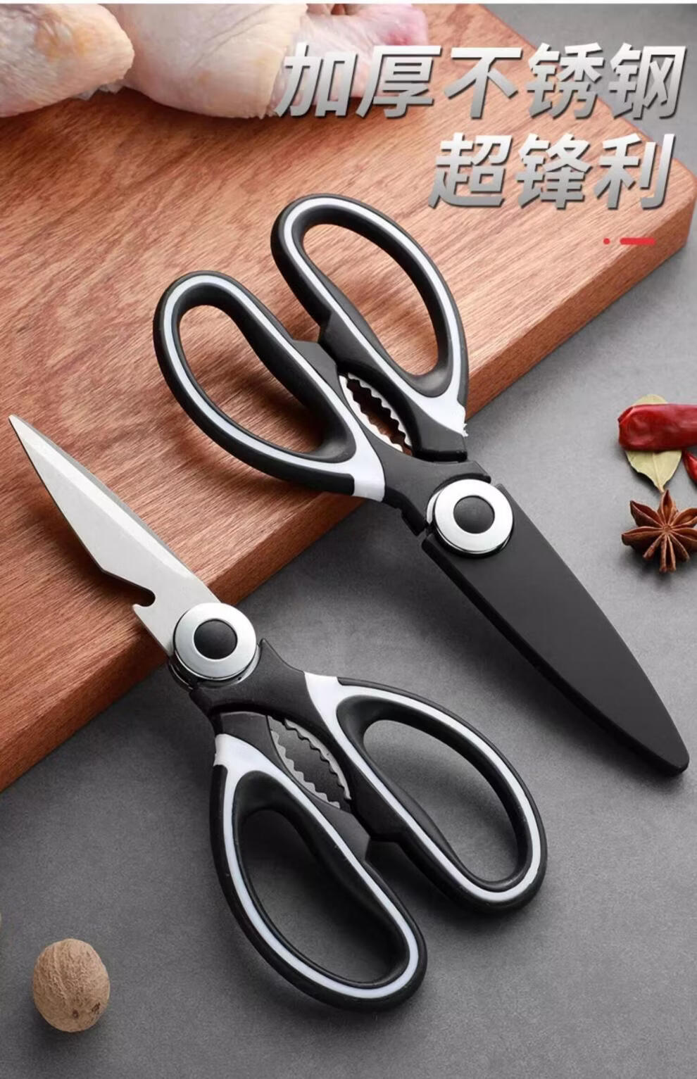 剪刀厨房专用森爵辅食剪家用多功能强力剪骨头杀鱼烤肉食物剪蔬菜 万人购买【1把】黑色厨房剪刀