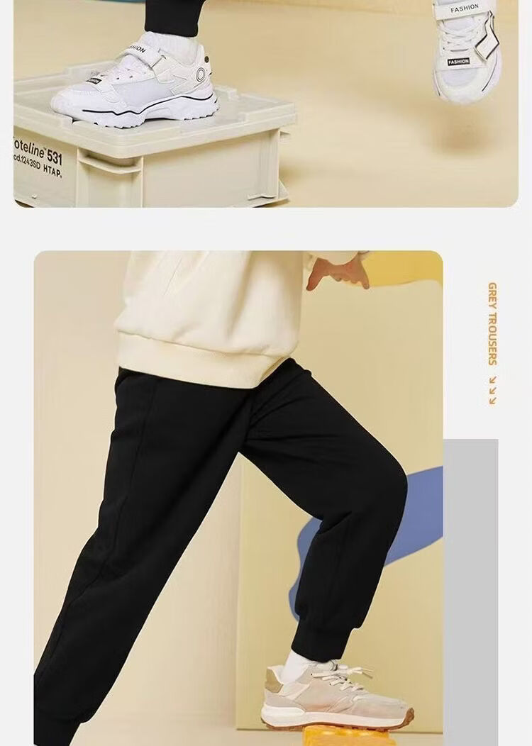 史努比(SNOOPY)儿童裤子男童春秋款2026新款运动裤女童帅气卫裤春秋薄款束脚童装 卫裤/388小灰色 110 适合体重15-20公斤