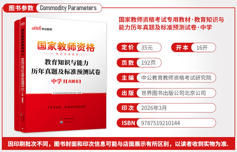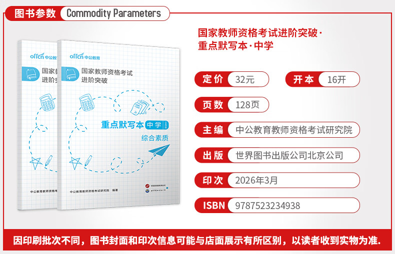 中公教育教资考试资料2026上半年初中高中教师资格证考试教材用书中学中职教资历年真题试卷预测卷教材:综合素质教育知识与能力 教资初中高中语文数学英语物理化学生物地理历史等中学各学科公共科目通用科目一二