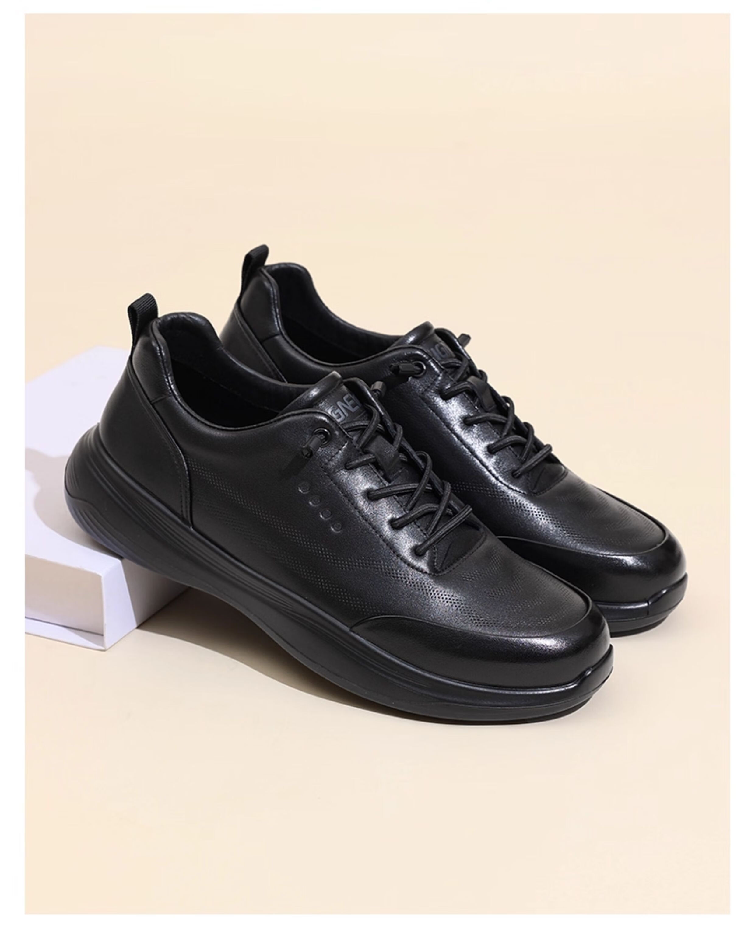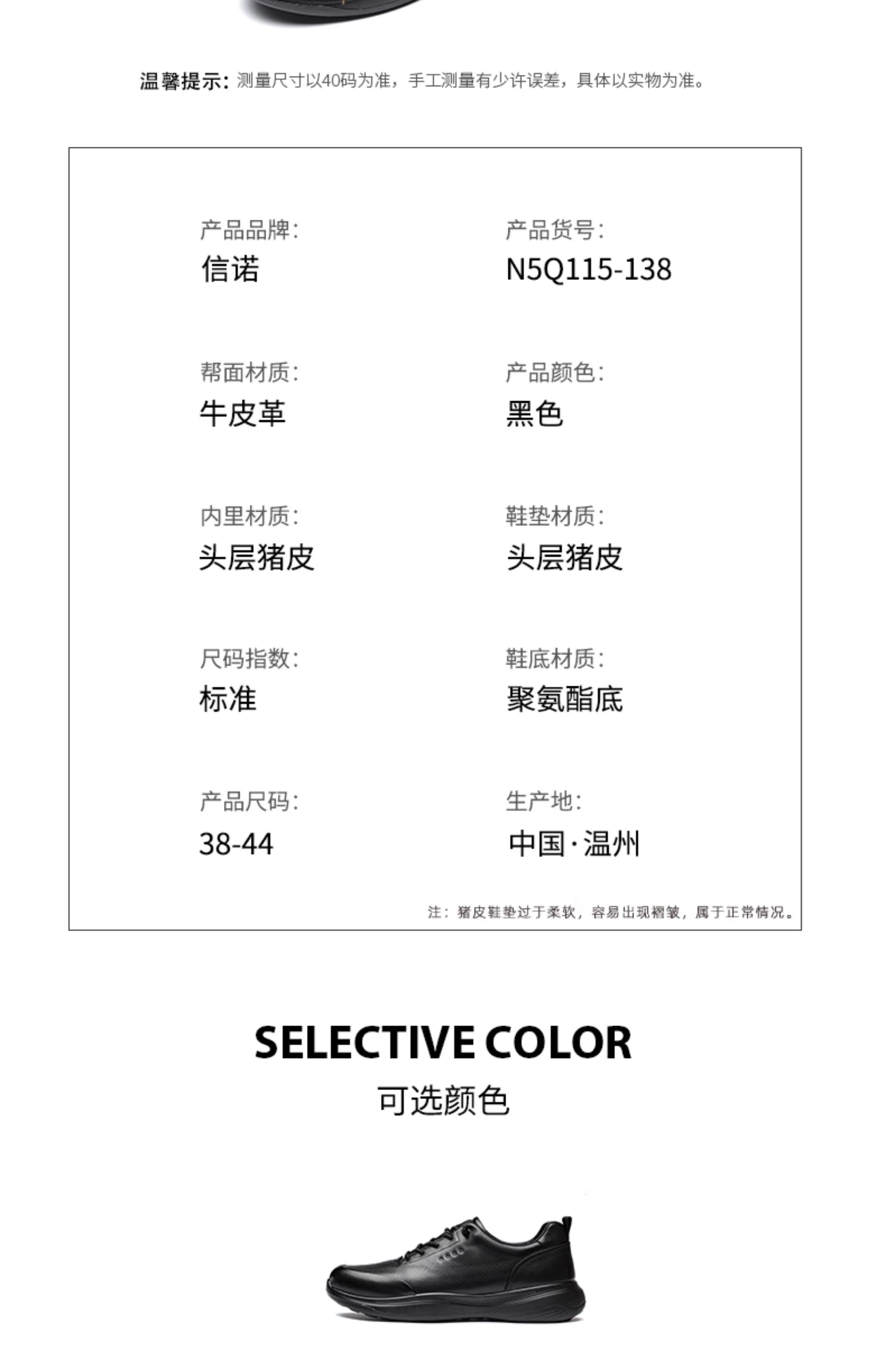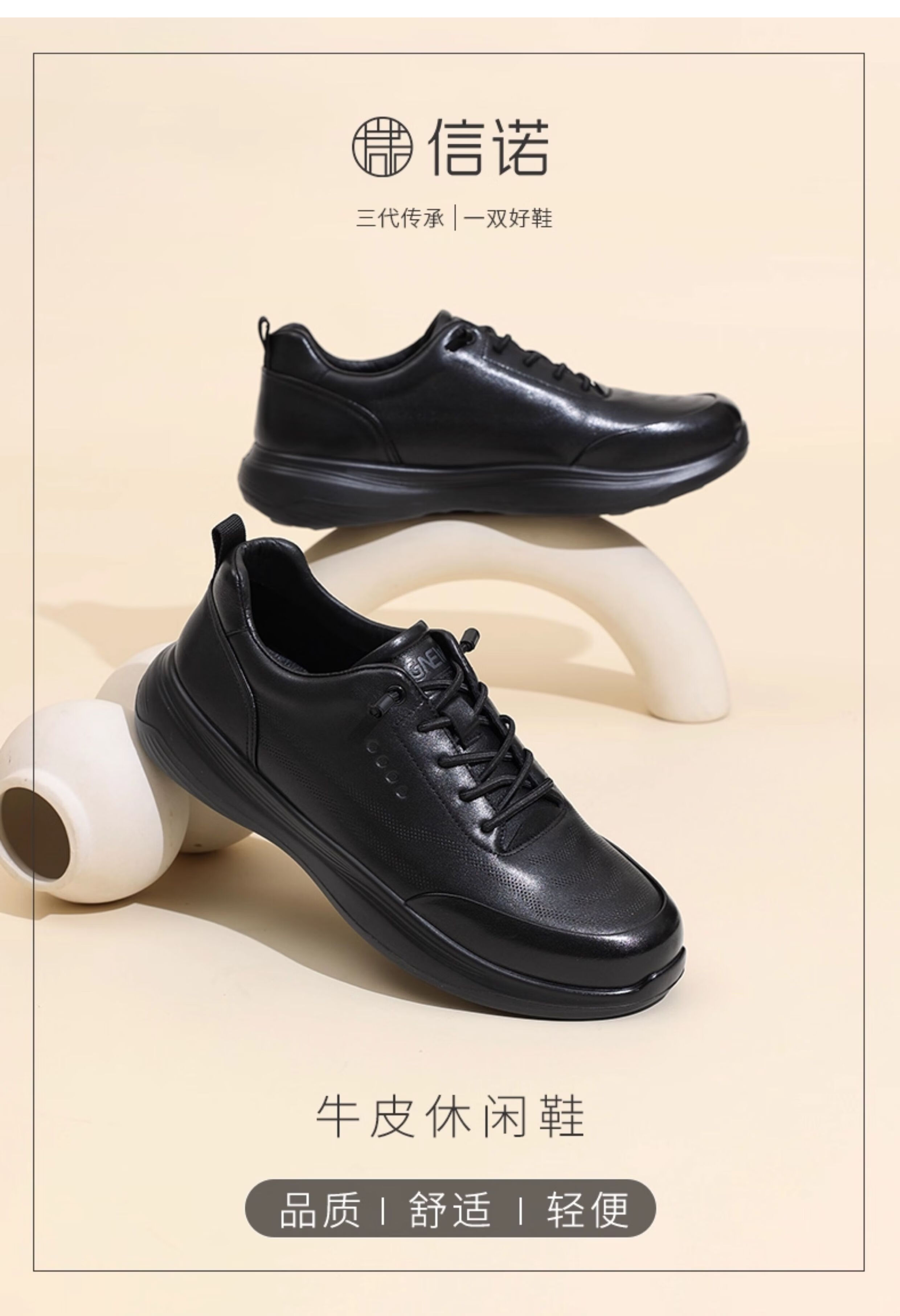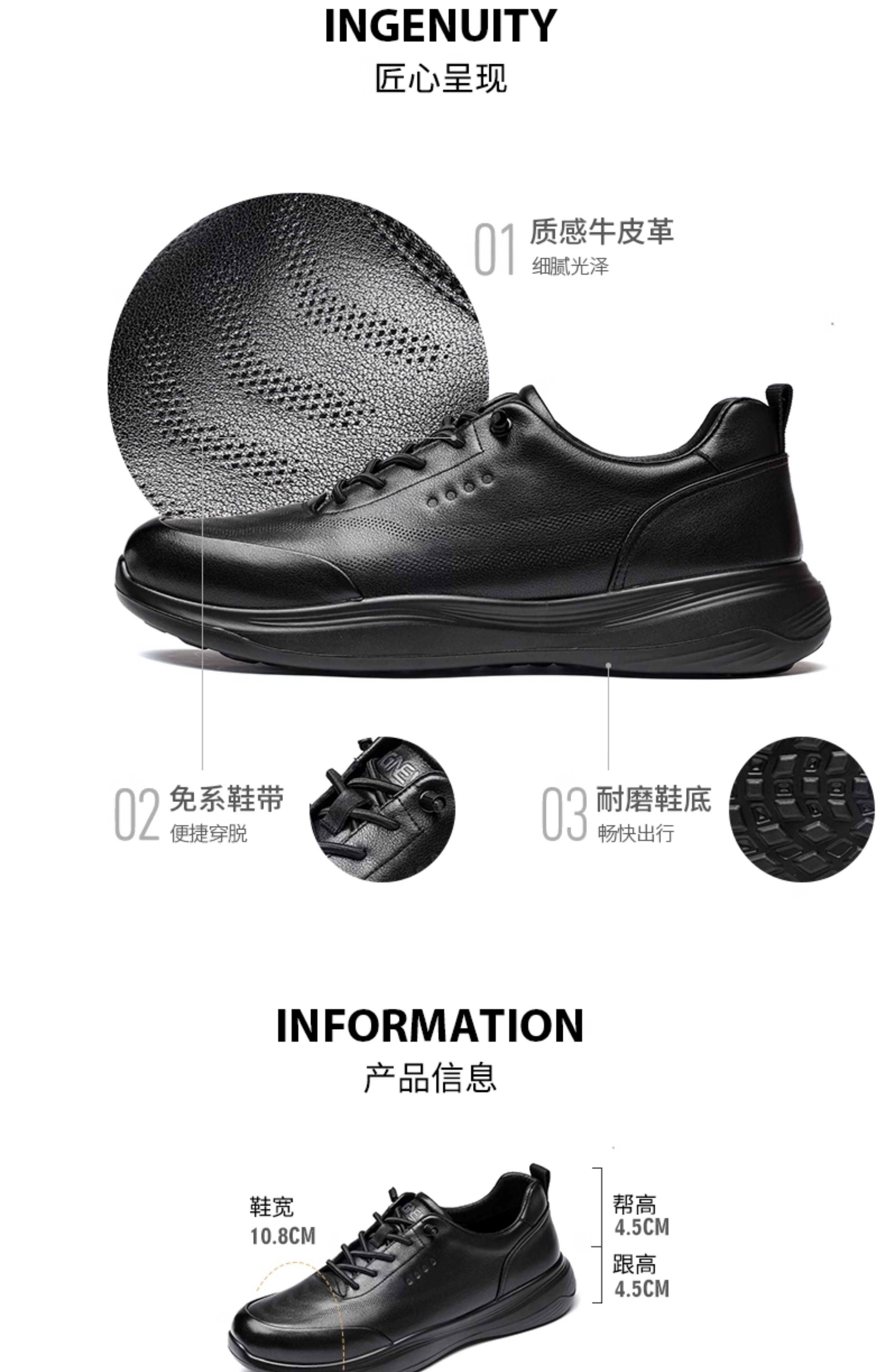 信诺真皮爸爸鞋中老年舒适软底商务休闲通勤皮鞋单鞋2025新款秋季 黑色 44
