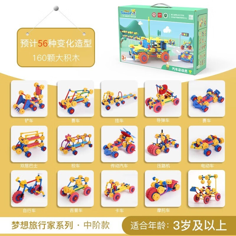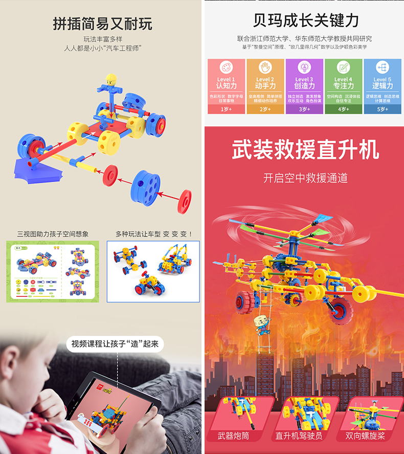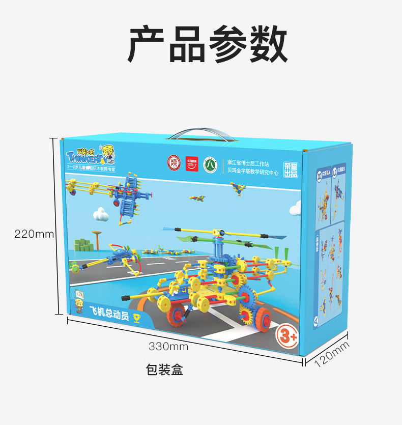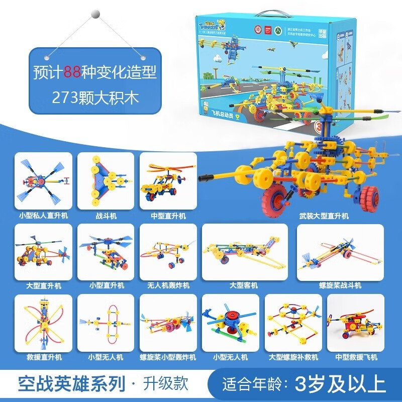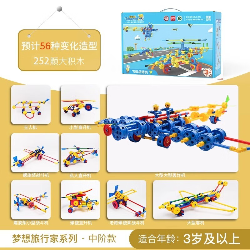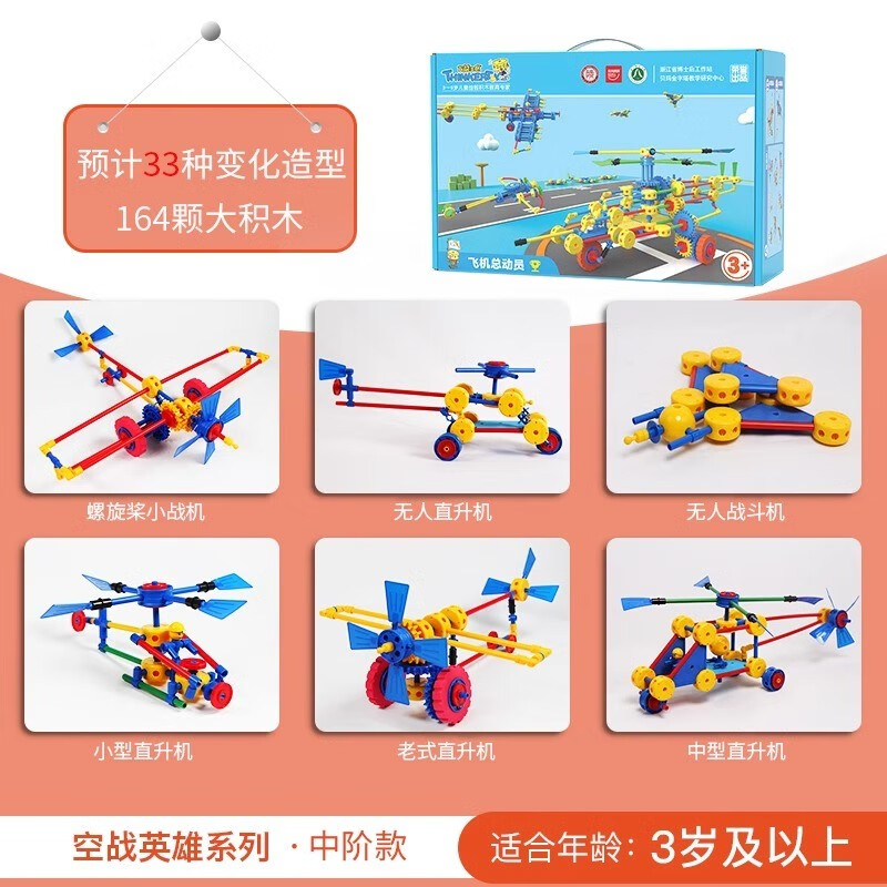 万能工匠儿童大颗粒积木拼装汽车飞机百变拼装插男女孩齿轮幼儿园桌面玩具 飞机总动员-(武装直升机)