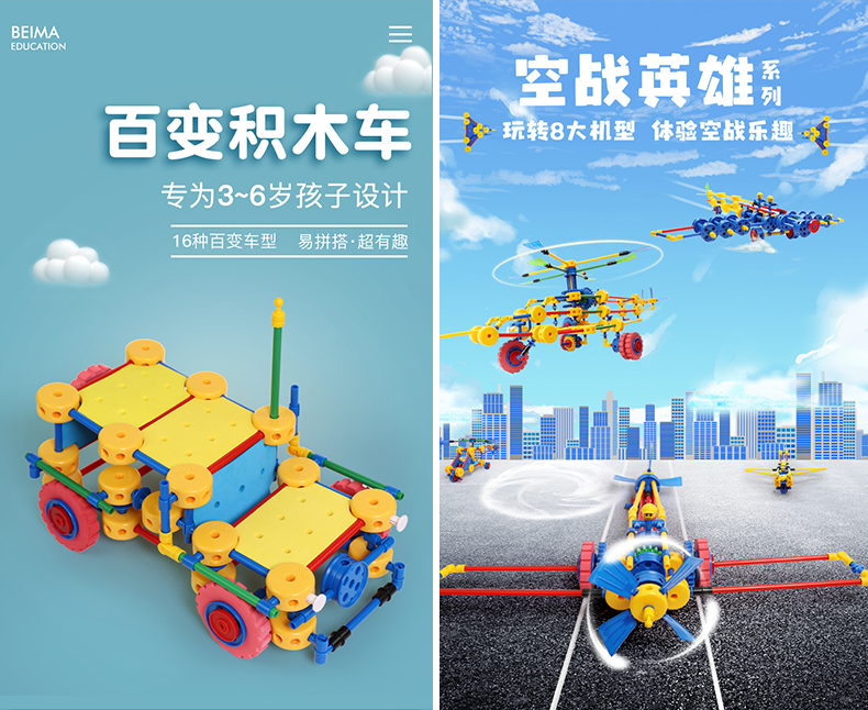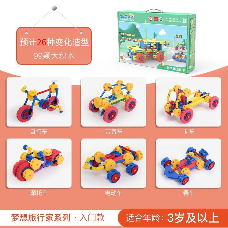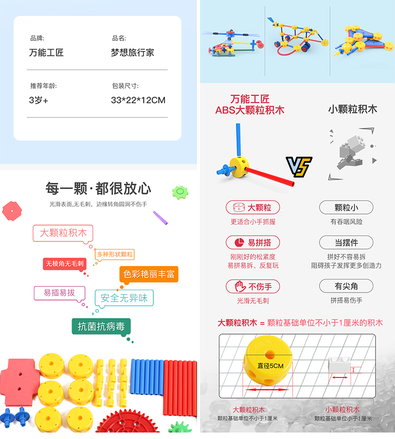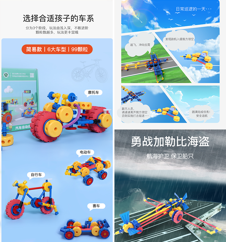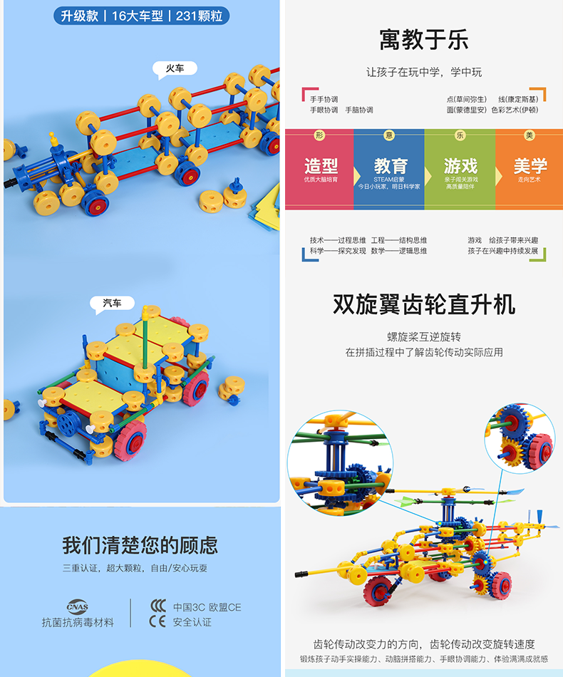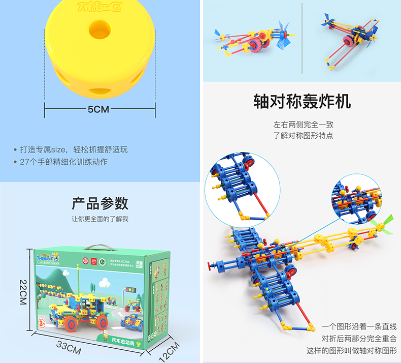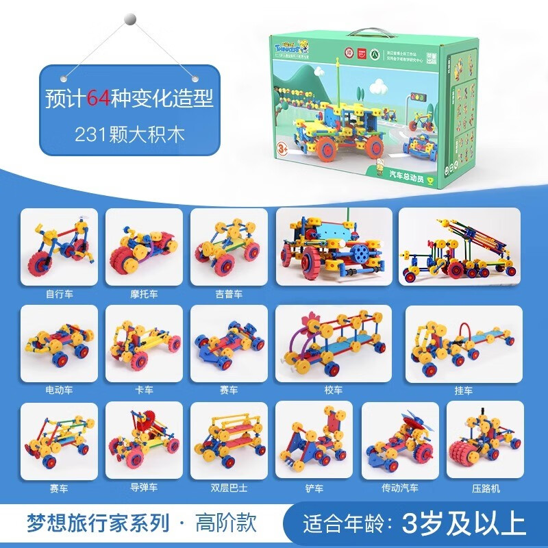 万能工匠儿童大颗粒积木拼装汽车飞机百变拼装插男女孩齿轮幼儿园桌面玩具 飞机总动员-(武装直升机)