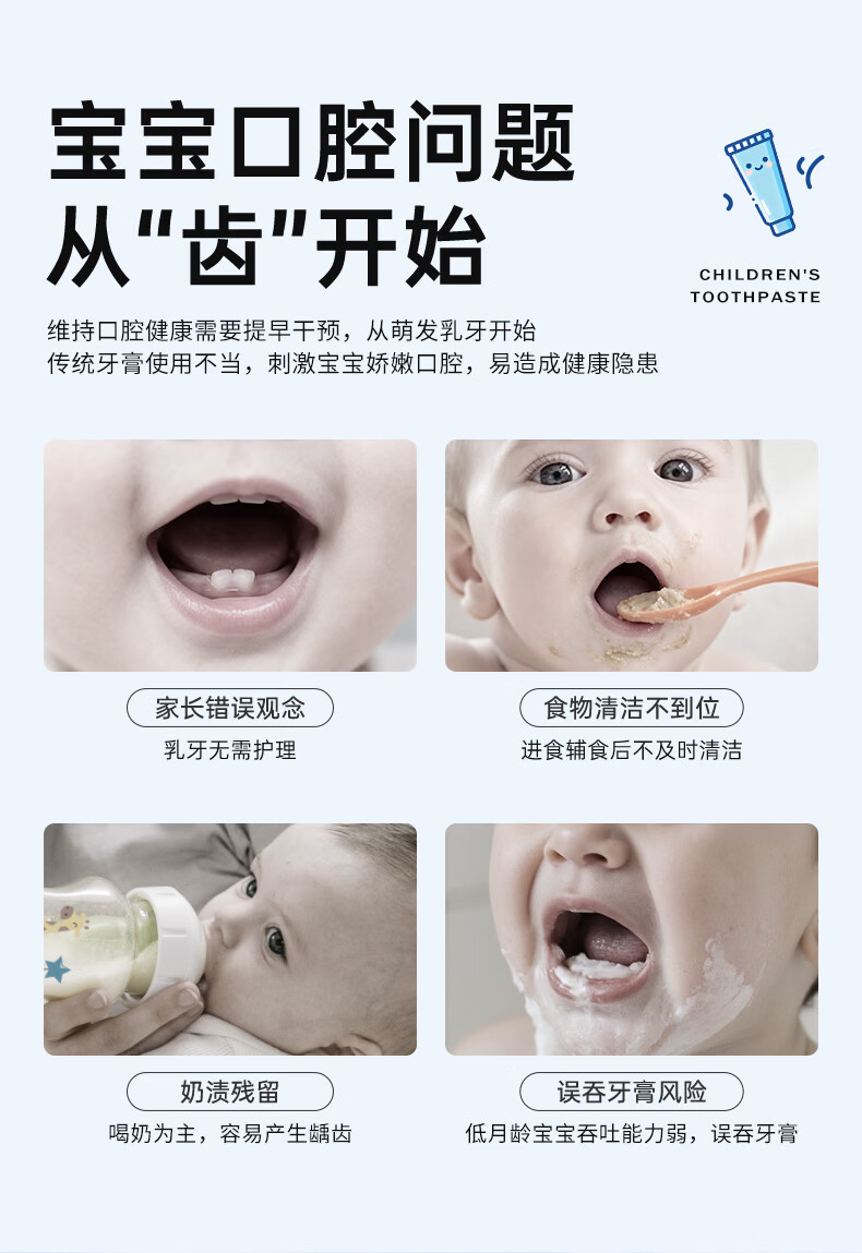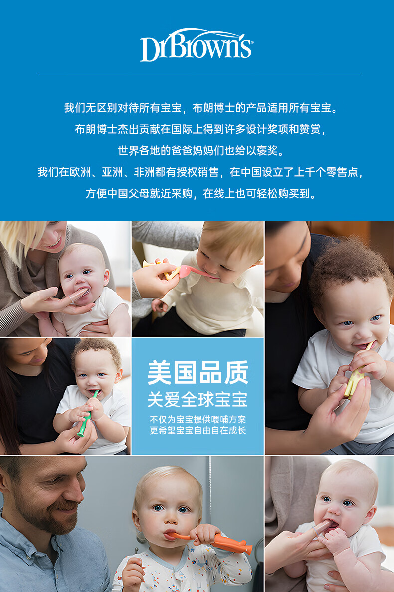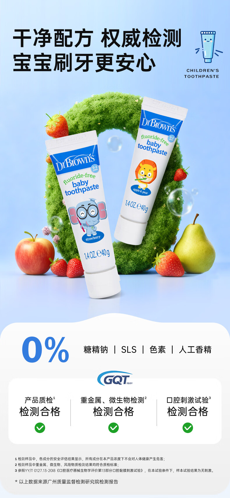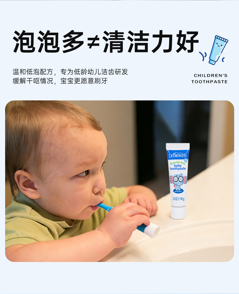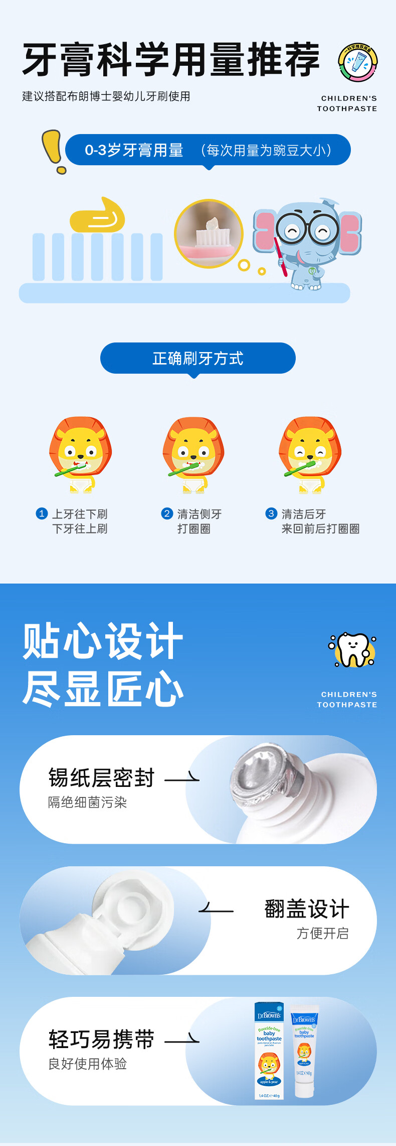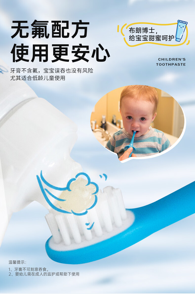 布朗博士儿童牙膏 无氟木糖醇配方防龋齿 0-3岁宝宝婴儿 双口味 牙刷组合 护齿组合1-小象牙膏+小象牙刷