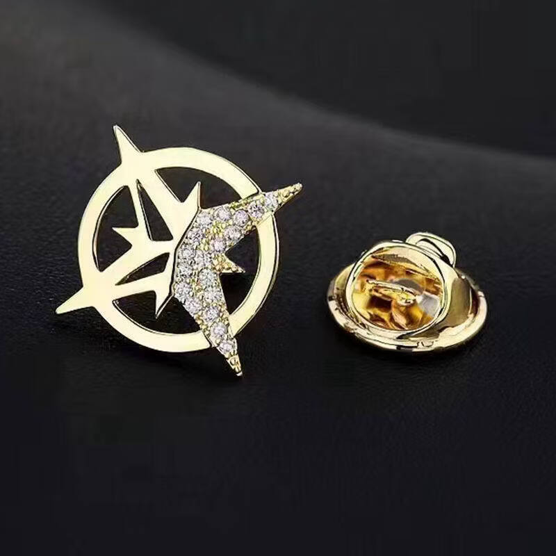KZD老凤凰商务男士胸针西装胸花六芒星衬衫领针扣ins个性微章 金色胸针