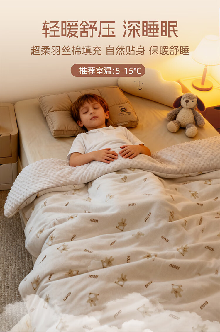 雅赞(YAZAN)儿童被子秋冬透气保暖豆豆绒盖毯夹棉被新生儿软糯包裹婴幼儿被子 布偶熊-四季被【适用温度15℃-25℃】 115cm*150cm(儿童被)