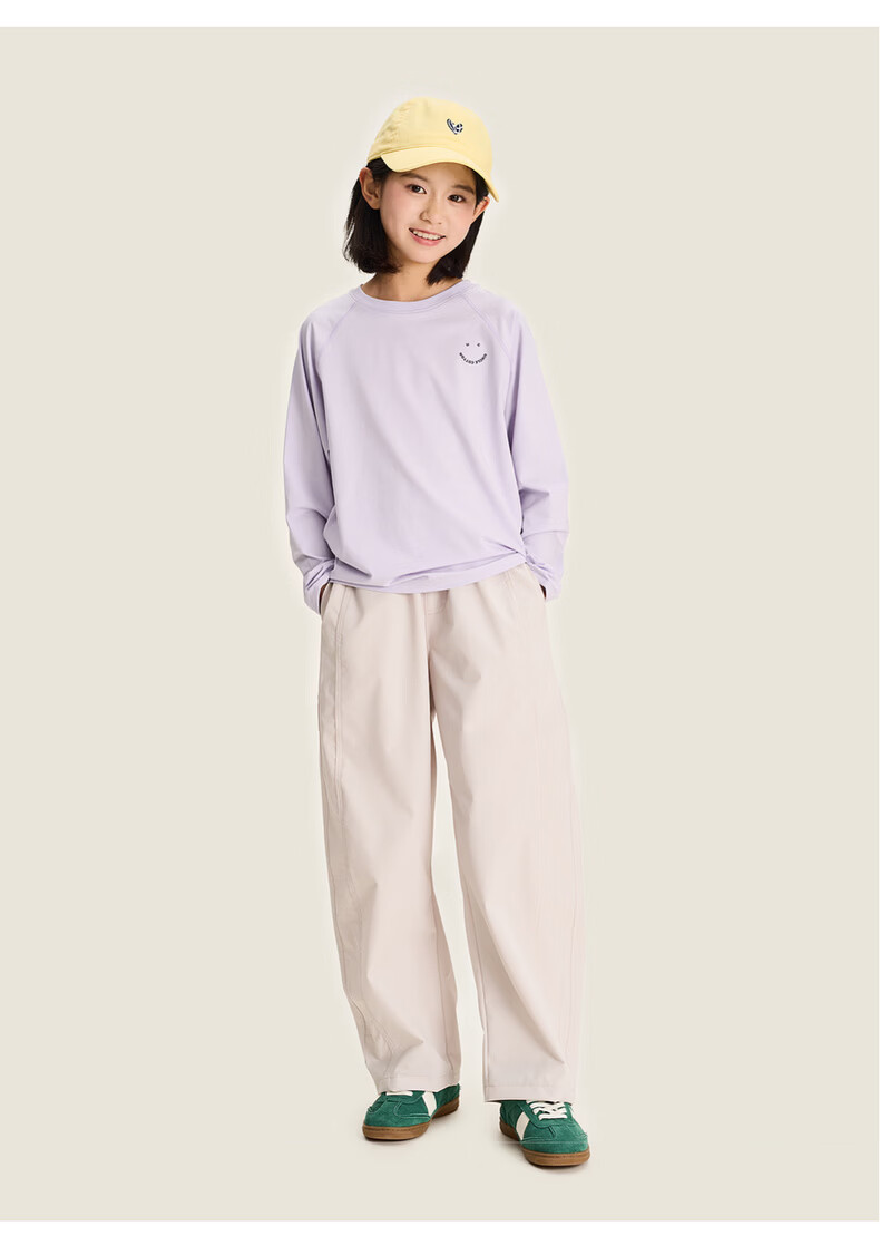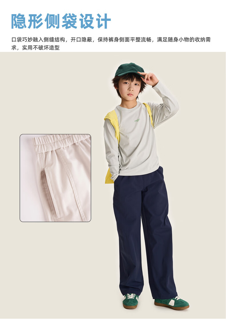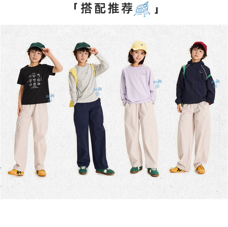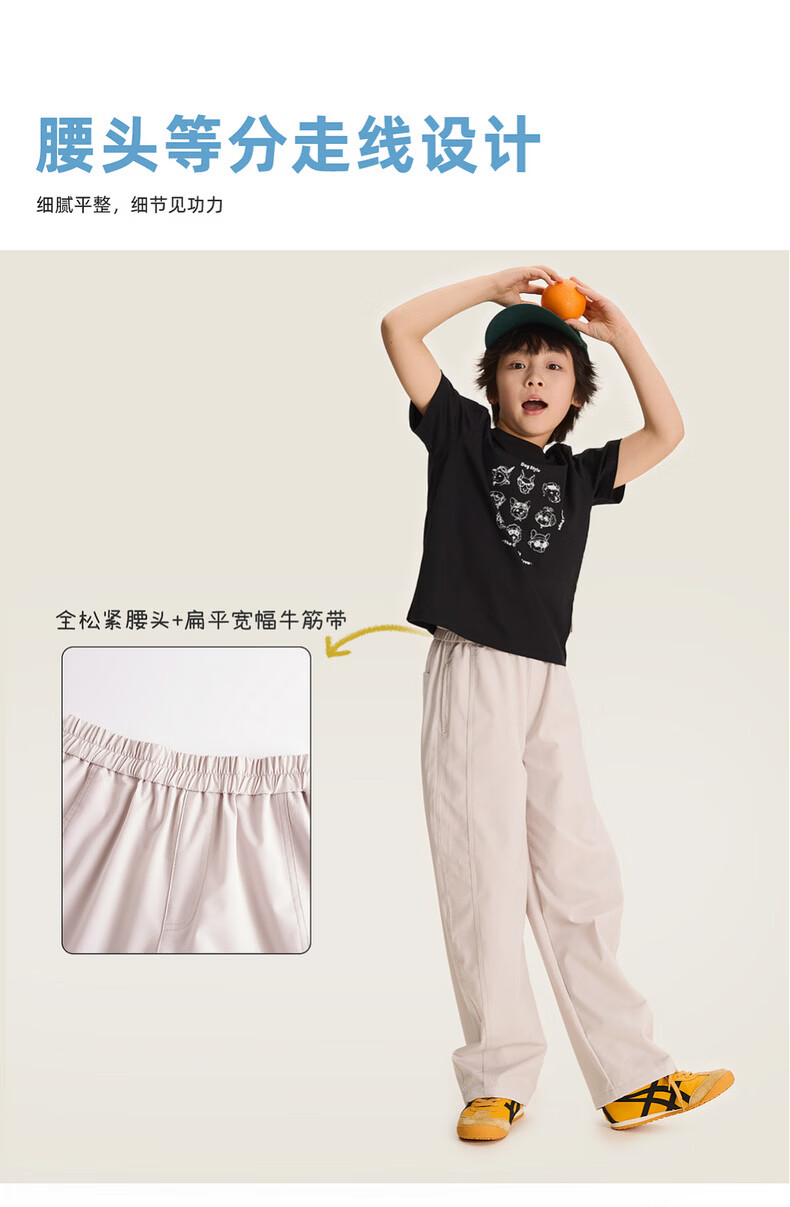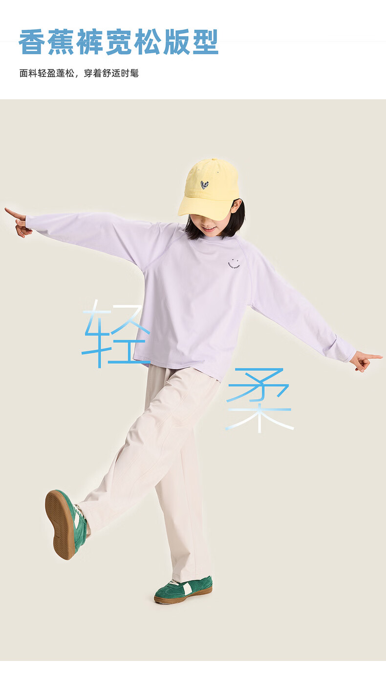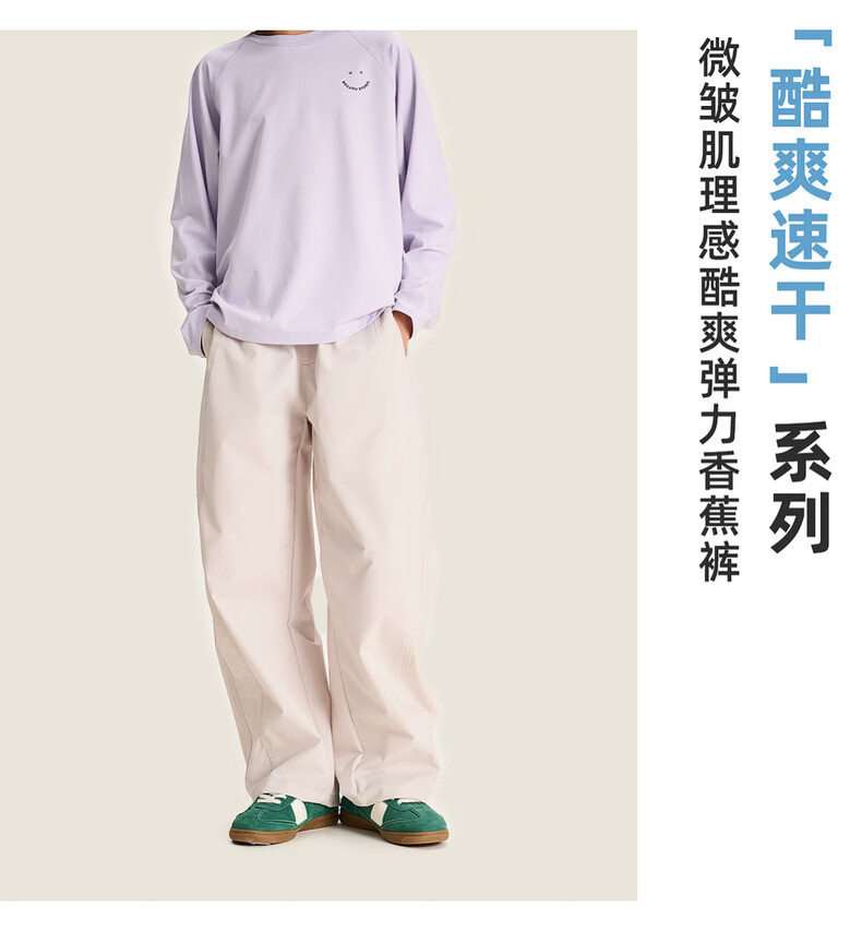棉叔叔【酷爽速干香蕉裤】棉叔叔女童春夏新款微皱肌理感休闲裤男童2.24 卡其米 120 120