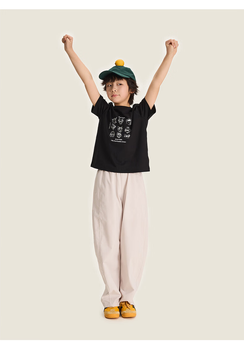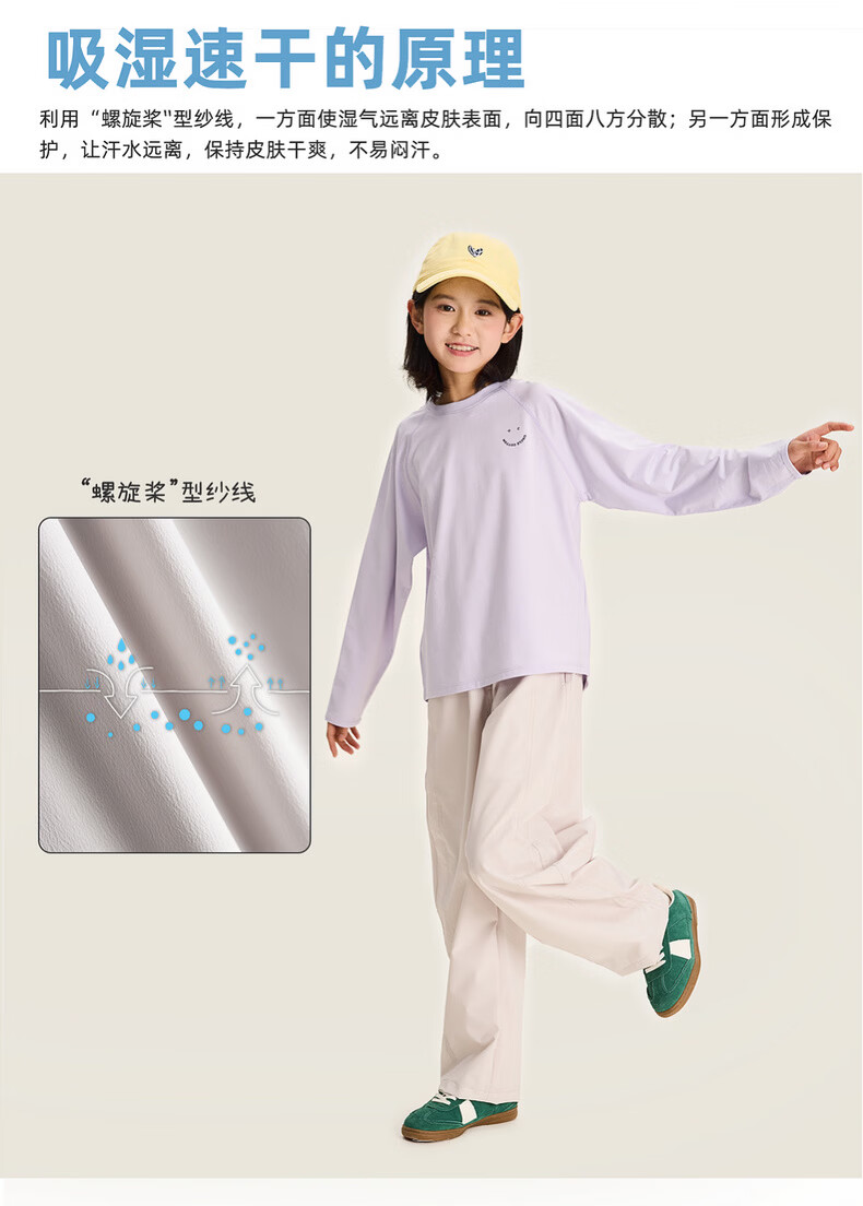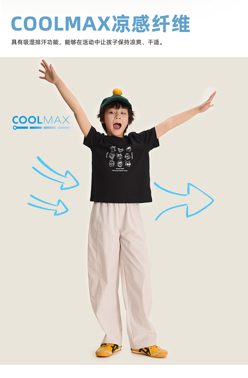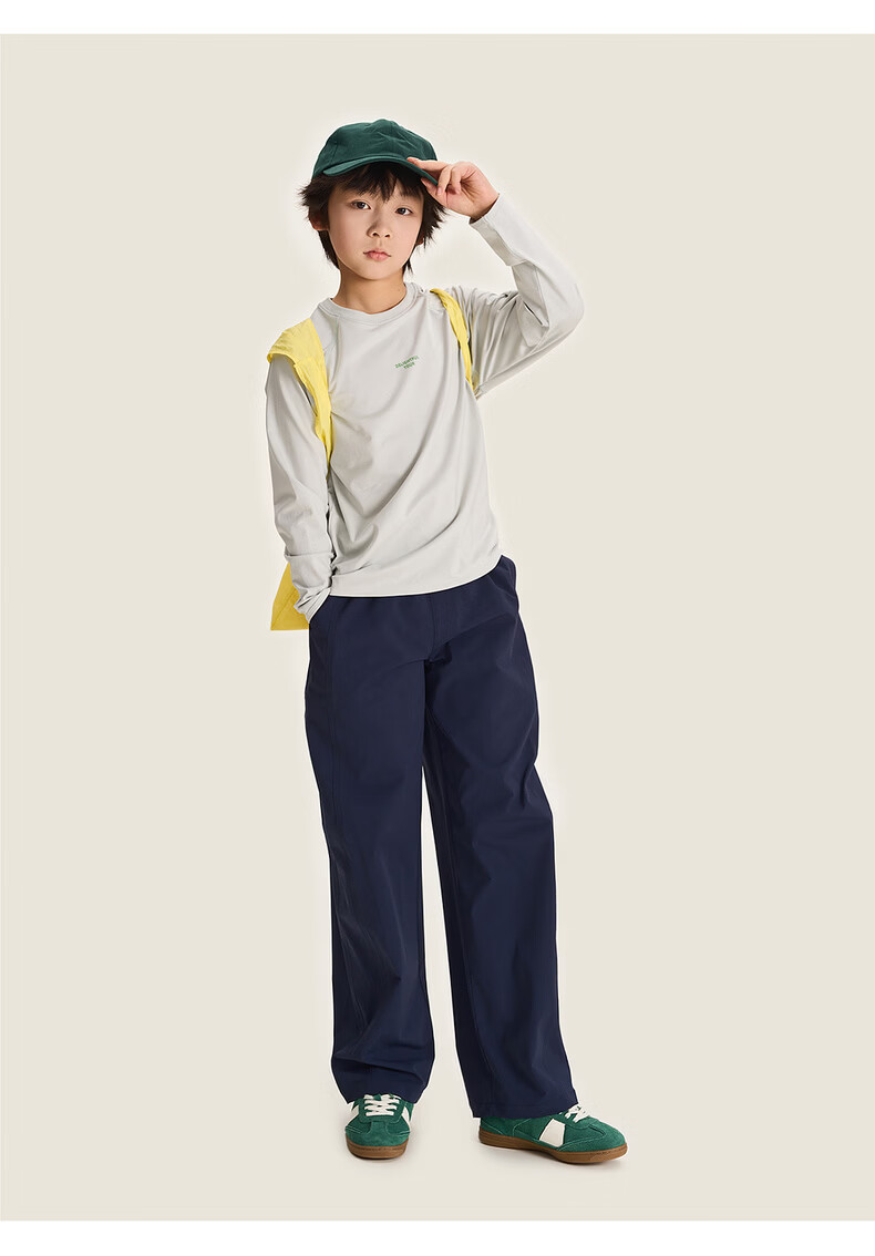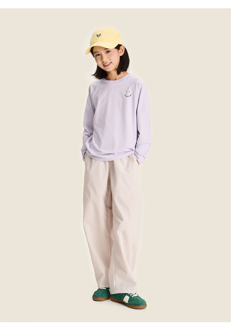 棉叔叔【酷爽速干香蕉裤】棉叔叔女童春夏新款微皱肌理感休闲裤男童2.24 卡其米 120 120