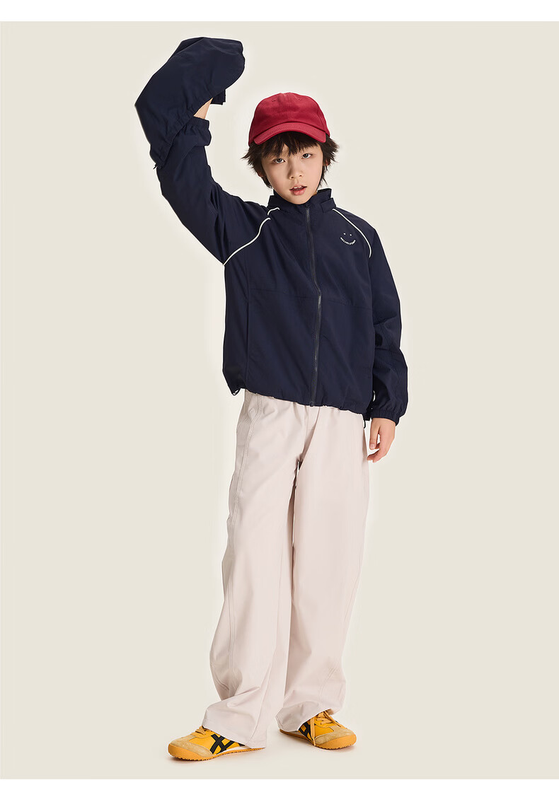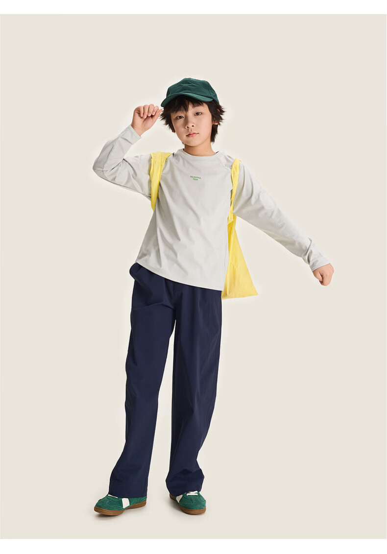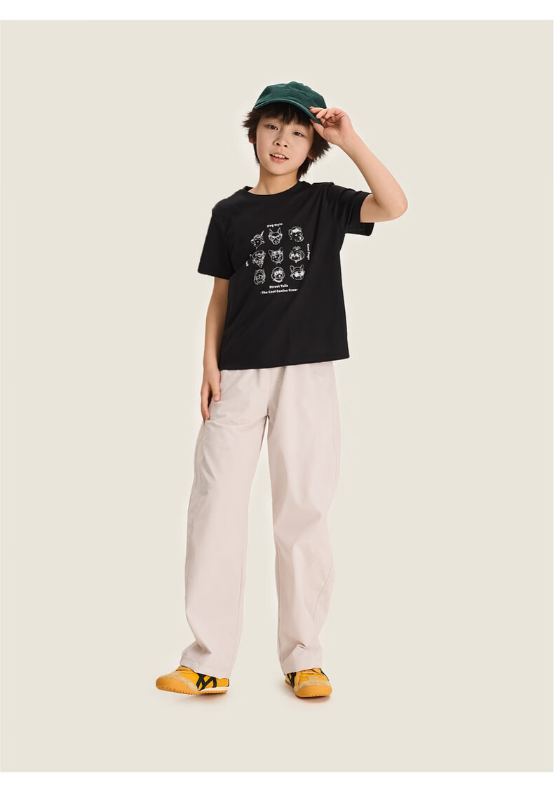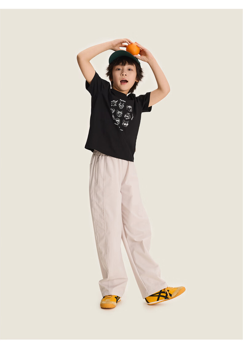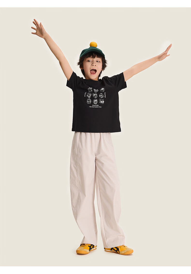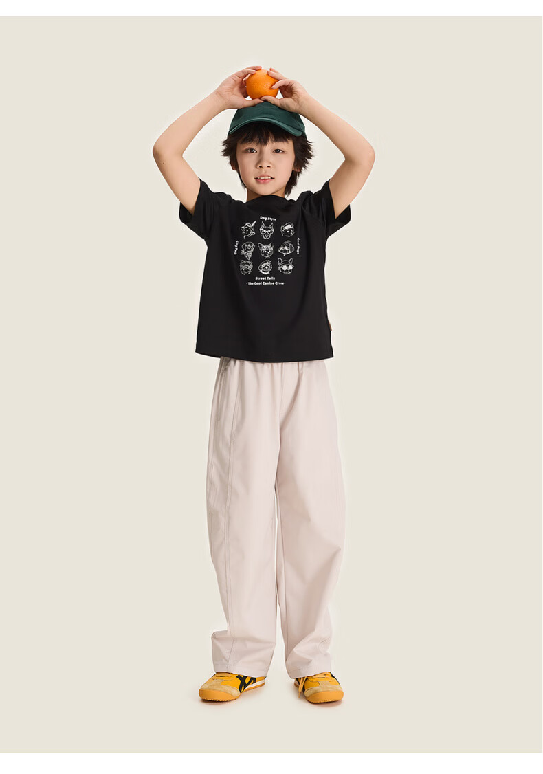 棉叔叔【酷爽速干香蕉裤】棉叔叔女童春夏新款微皱肌理感休闲裤男童2.24 卡其米 120 120