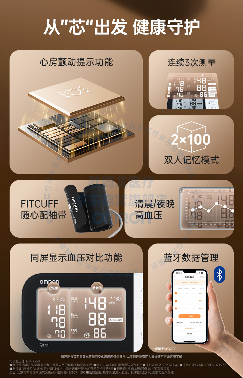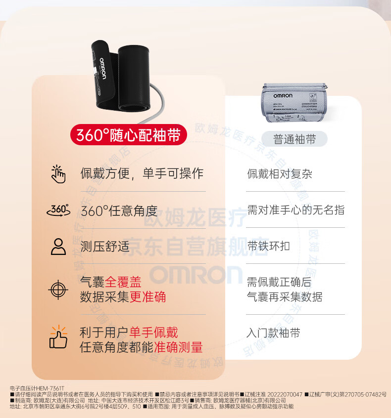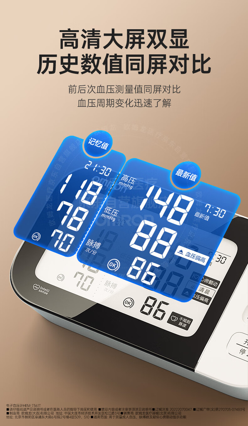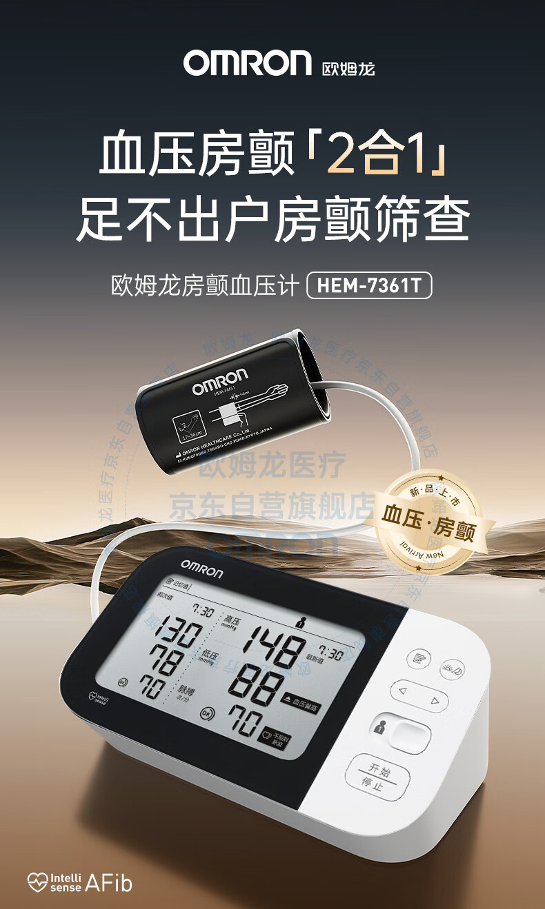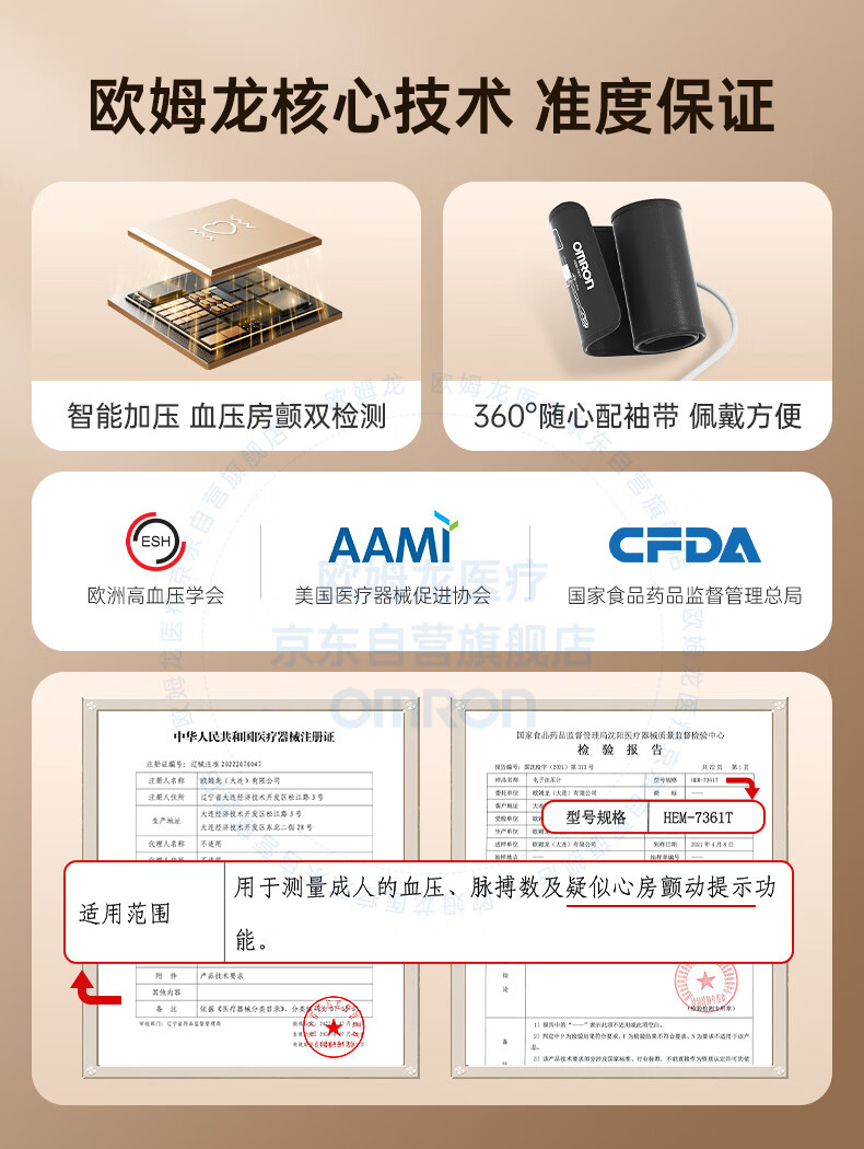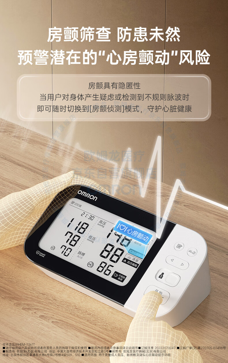 欧姆龙(OMRON)房颤电子血压计测量仪老人家用医用高精准上臂式血压7361T