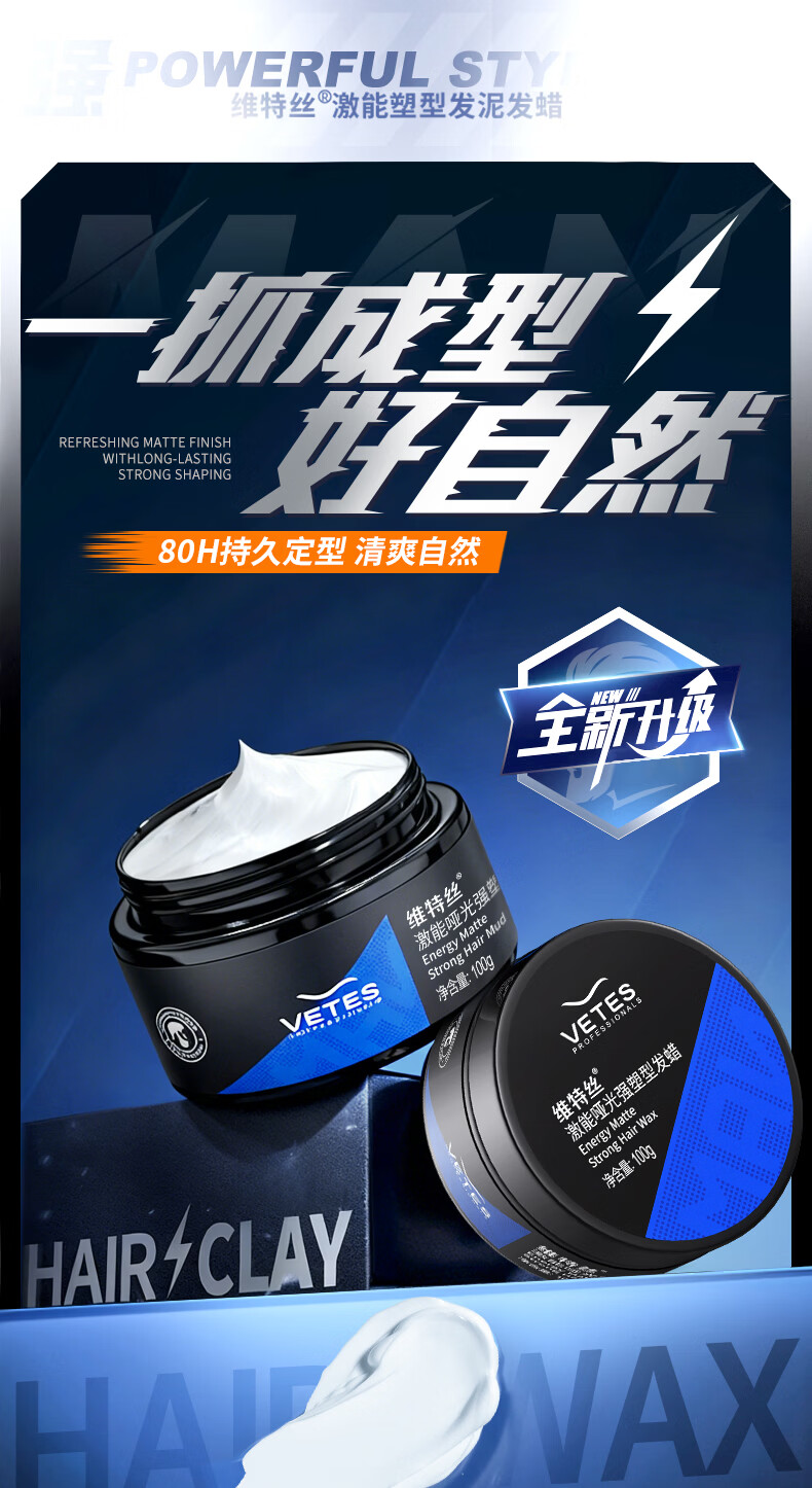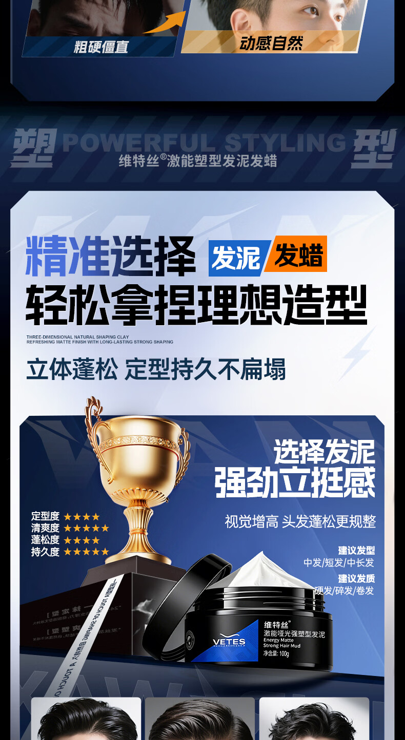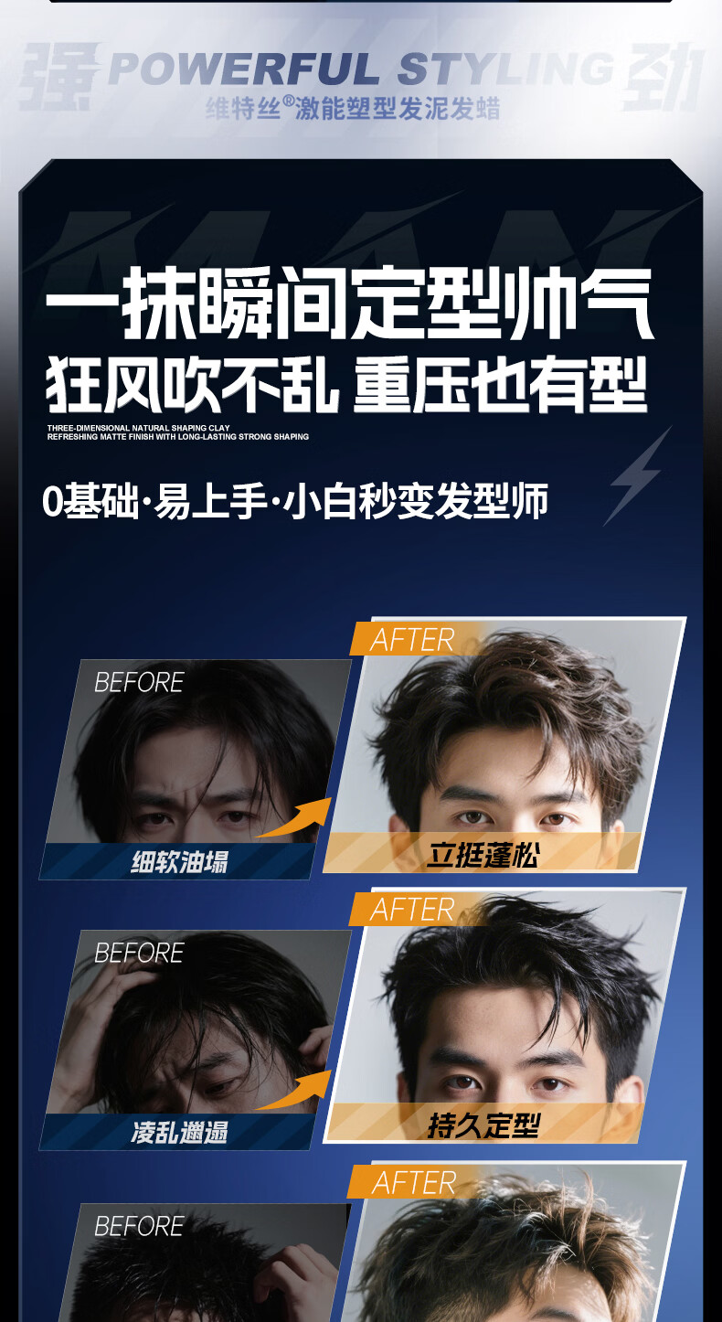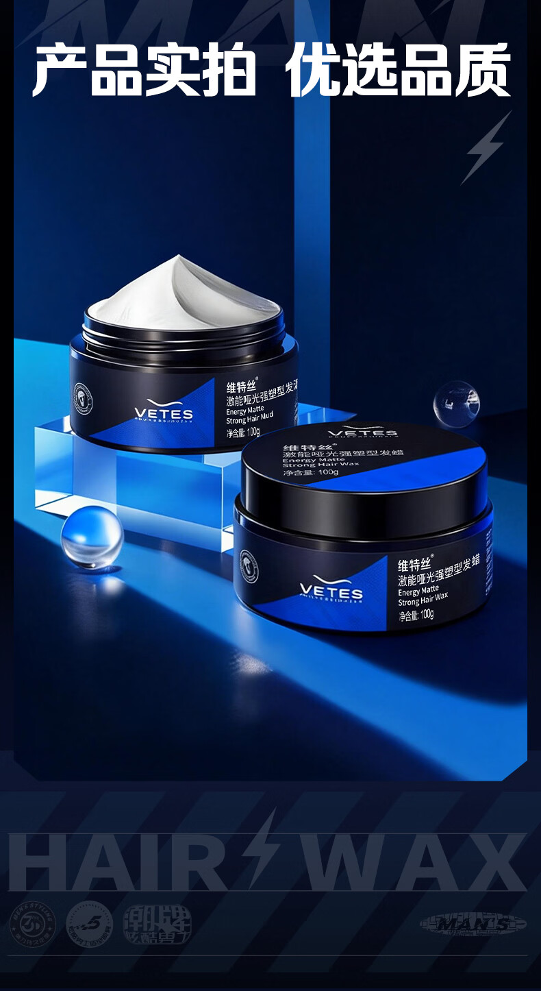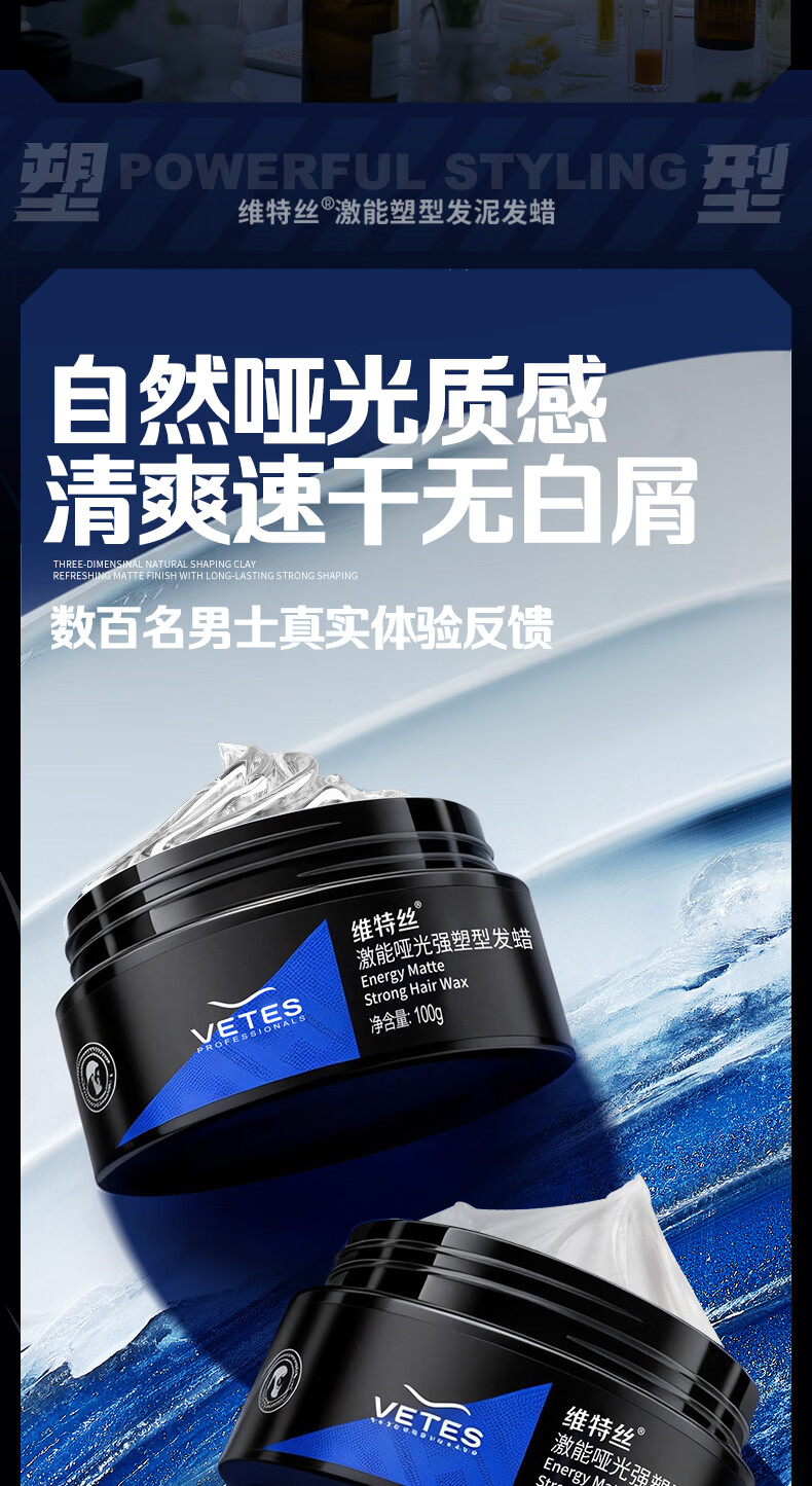 维特丝男士哑光强力塑型发泥自然蓬松持久定型发蜡发胶发膏发油清爽造型