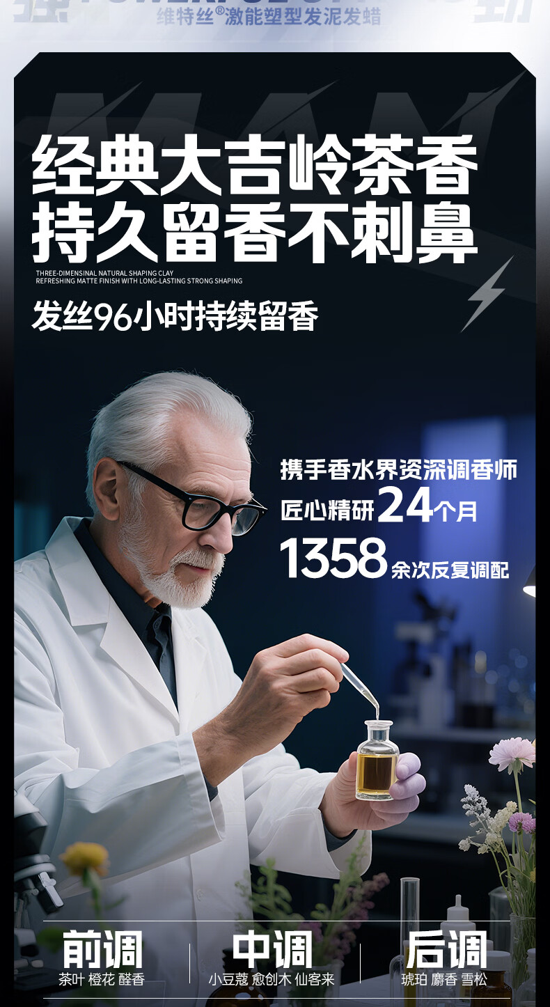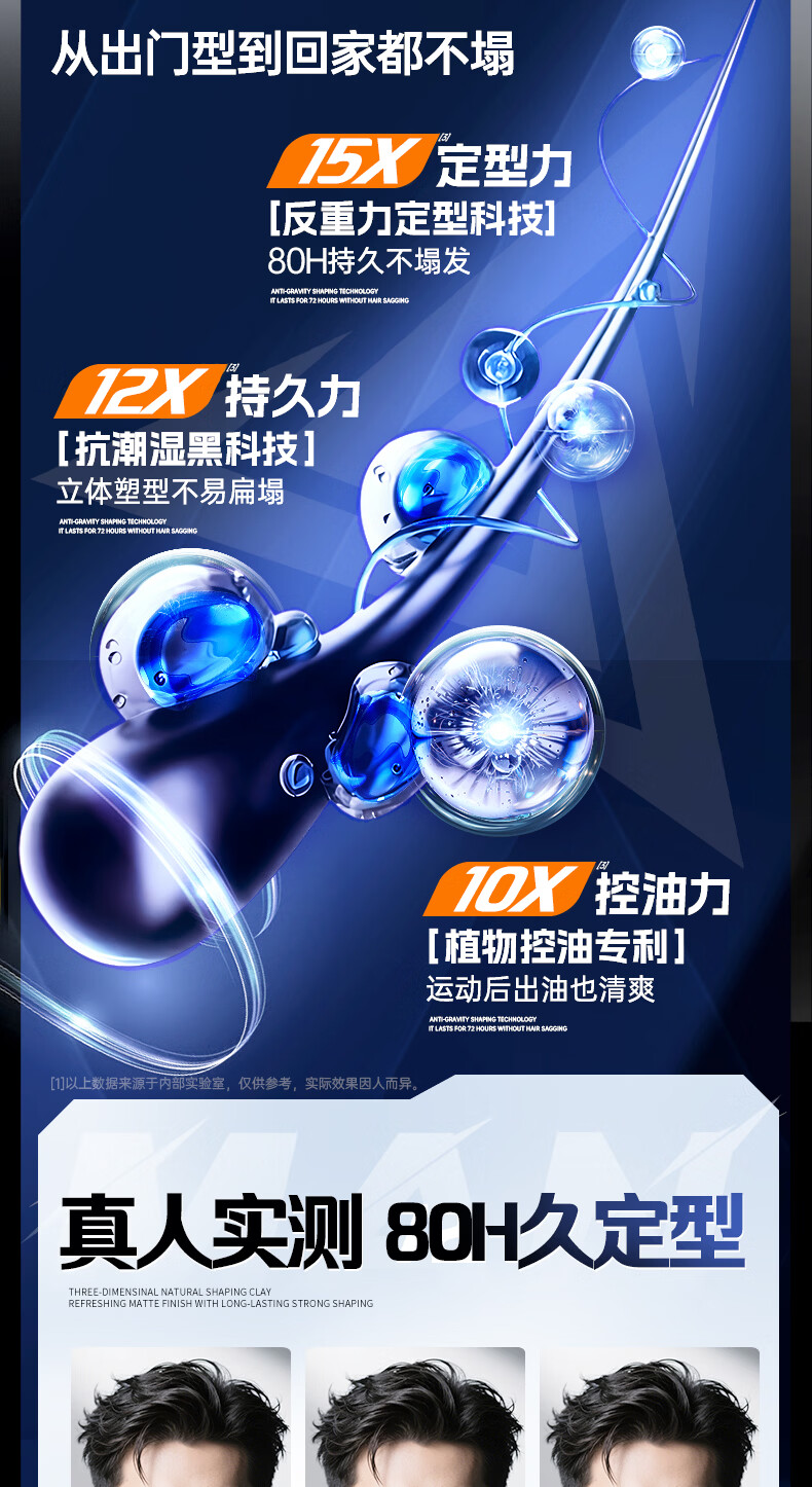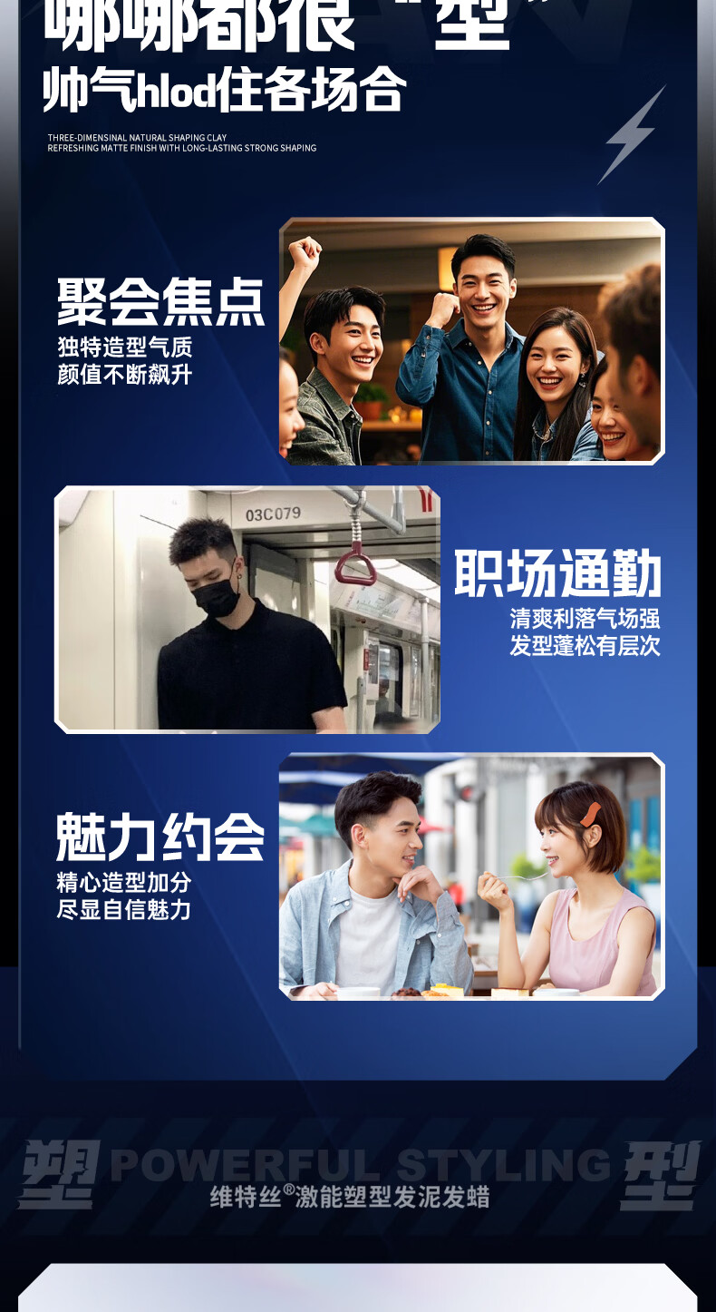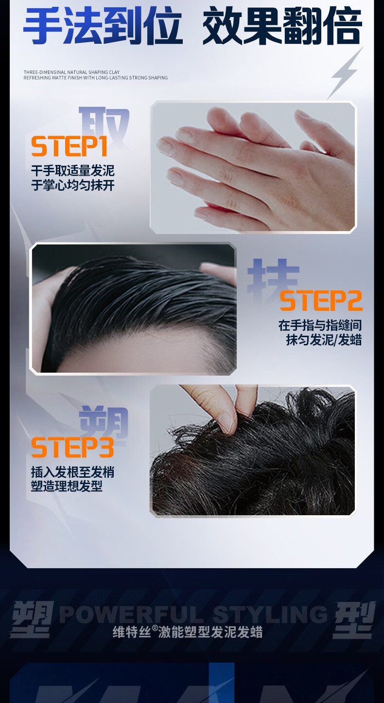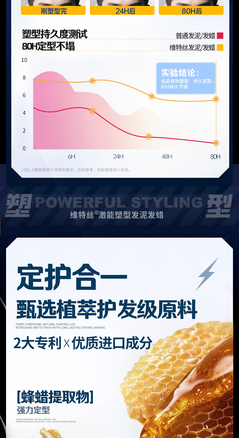 维特丝男士哑光强力塑型发泥自然蓬松持久定型发蜡发胶发膏发油清爽造型