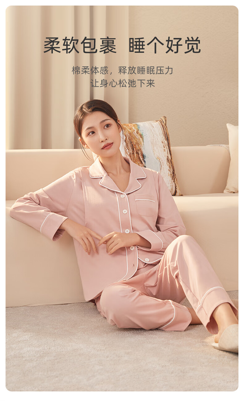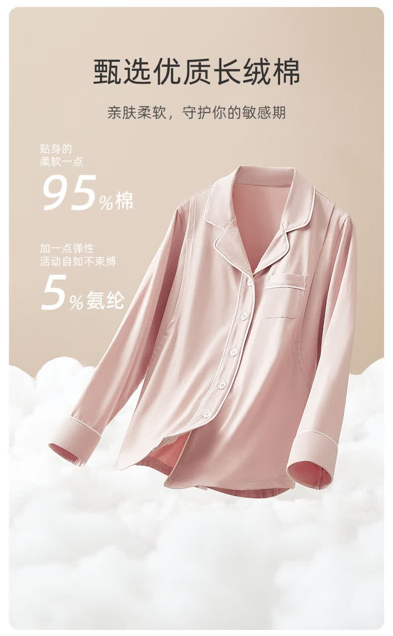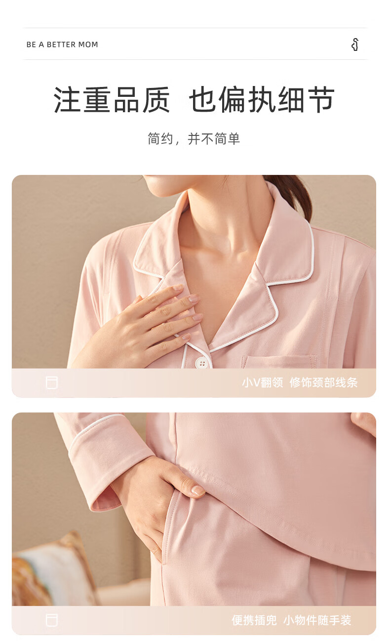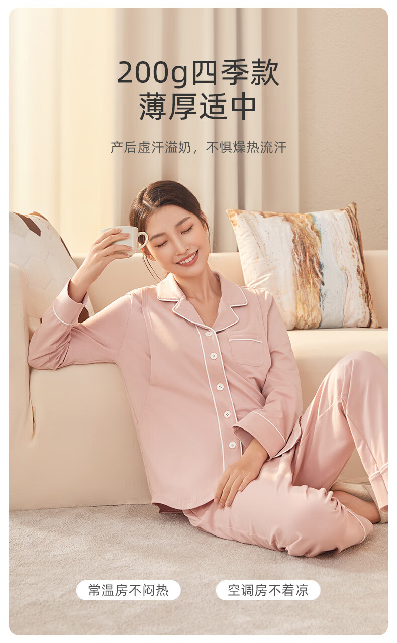 十月结晶月子服春秋棉产后孕妇睡衣哺乳家居服套装豆粉 L码