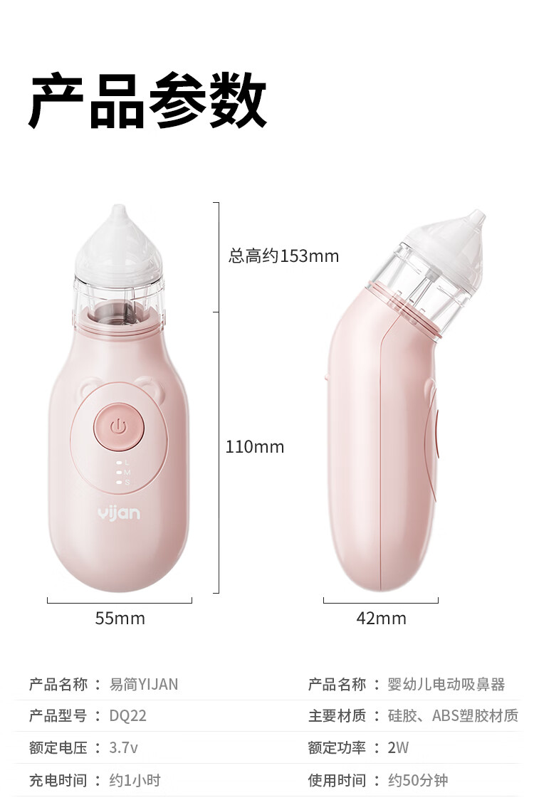 易简(yijan)电动吸鼻器婴儿洗鼻器新生儿宝宝儿童鼻涕鼻屎清理神器通鼻塞DQ22
