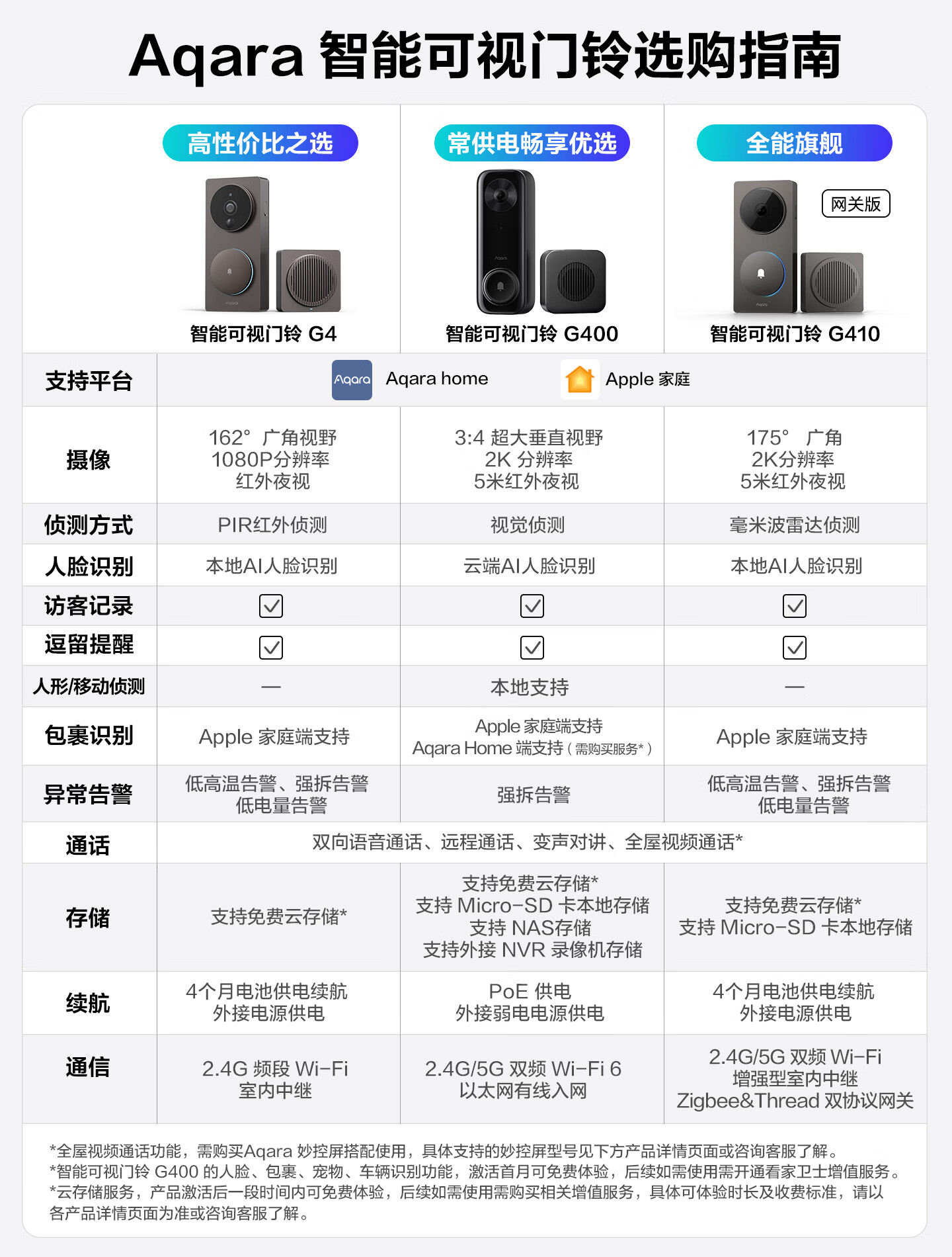 Aqara绿米联创智能门铃G400监控器POE常供电智能摄像头已接入Homekit 智能门铃G400黑色