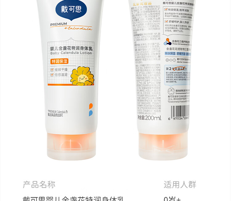 戴·可·思婴儿儿童面霜身体乳 金盏花滋润保湿乳液清爽不粘腻 200ml