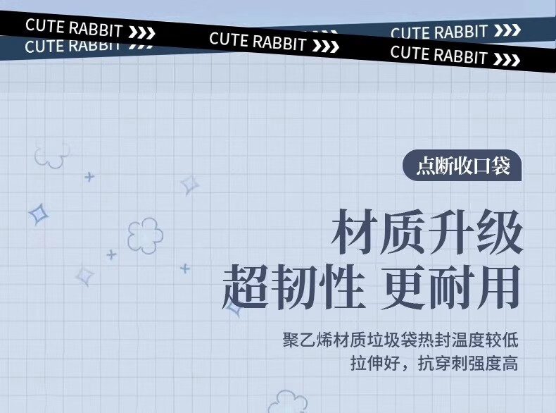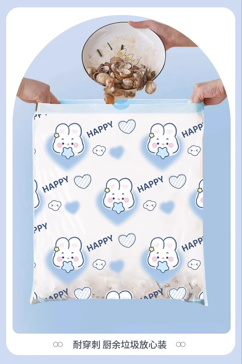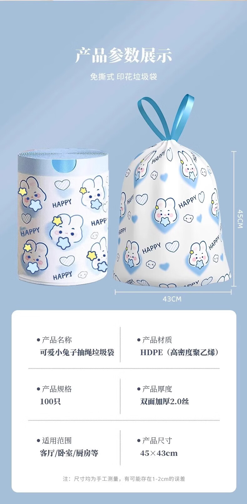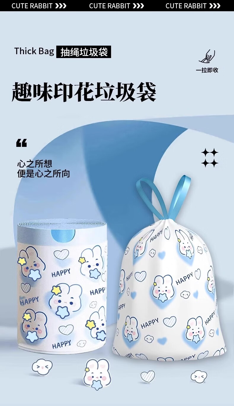 蓝星兔印花垃圾袋家用加厚手提式抽绳特超厚自动收口客厅宿舍 1卷50只【共50只】