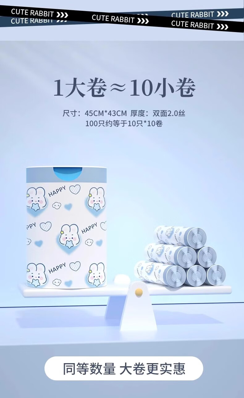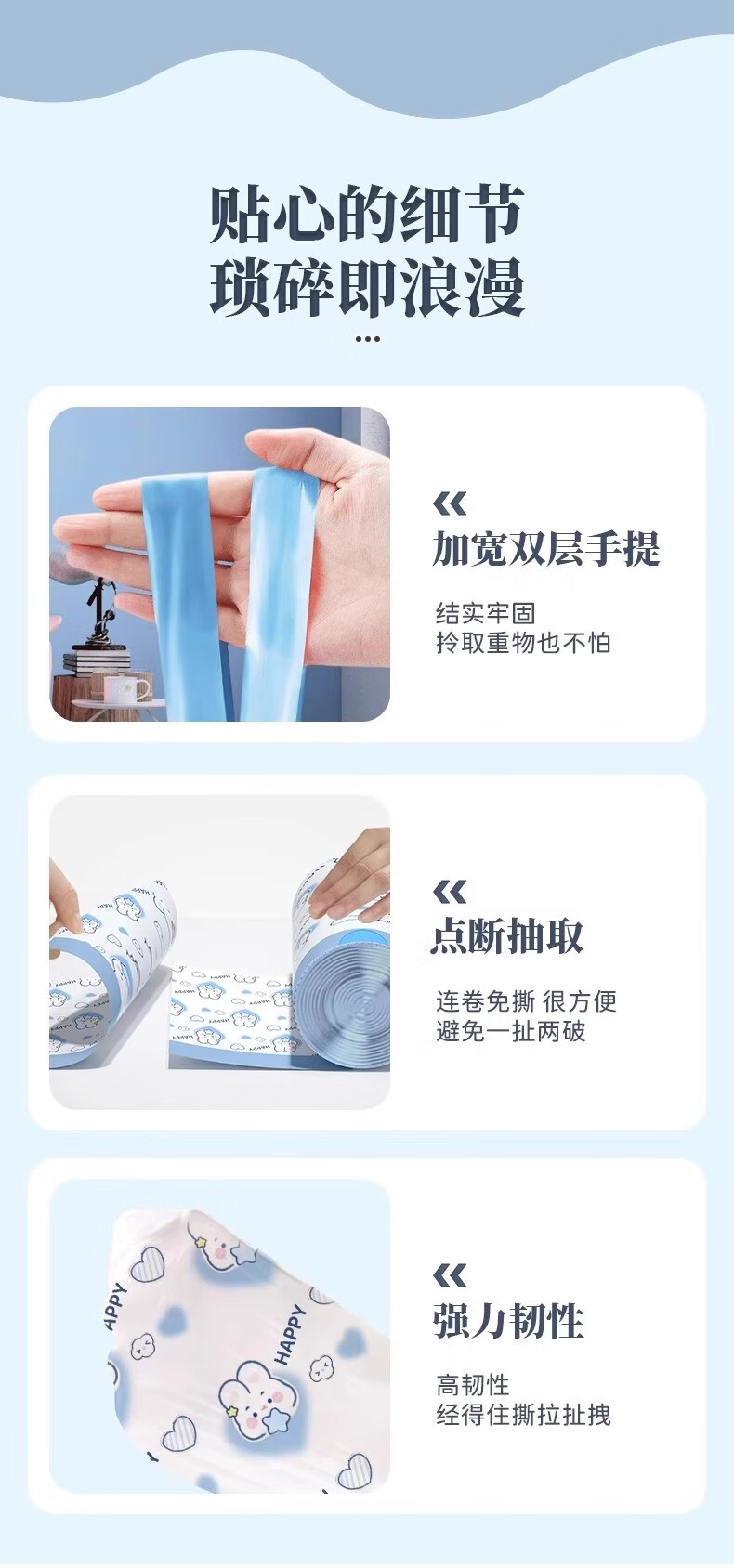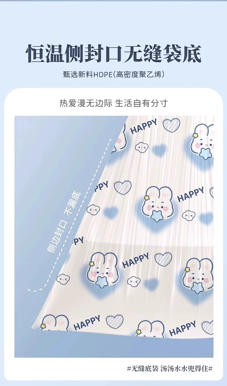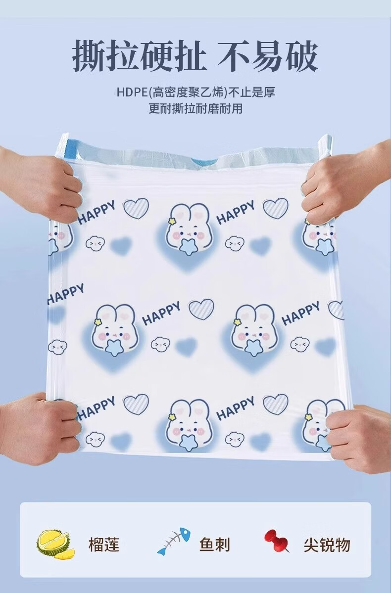 蓝星兔印花垃圾袋家用加厚手提式抽绳特超厚自动收口客厅宿舍 1卷50只【共50只】