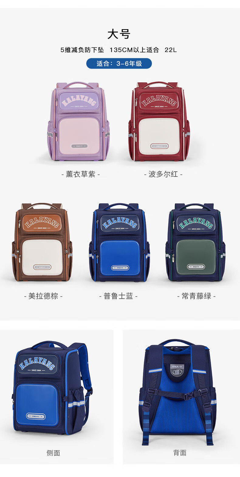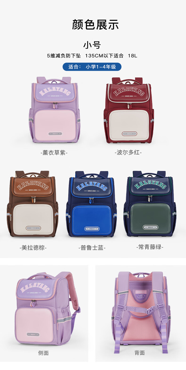 卡拉羊(KALA·Y)【蒋勤勤代言】书包小学生1-4年级游学减负儿童休闲出游双肩背包 小号-薰衣草紫爱丽丝【身高110-150cm】