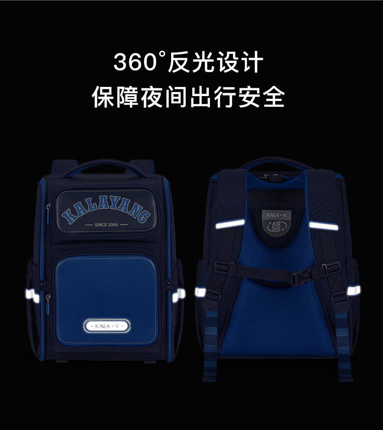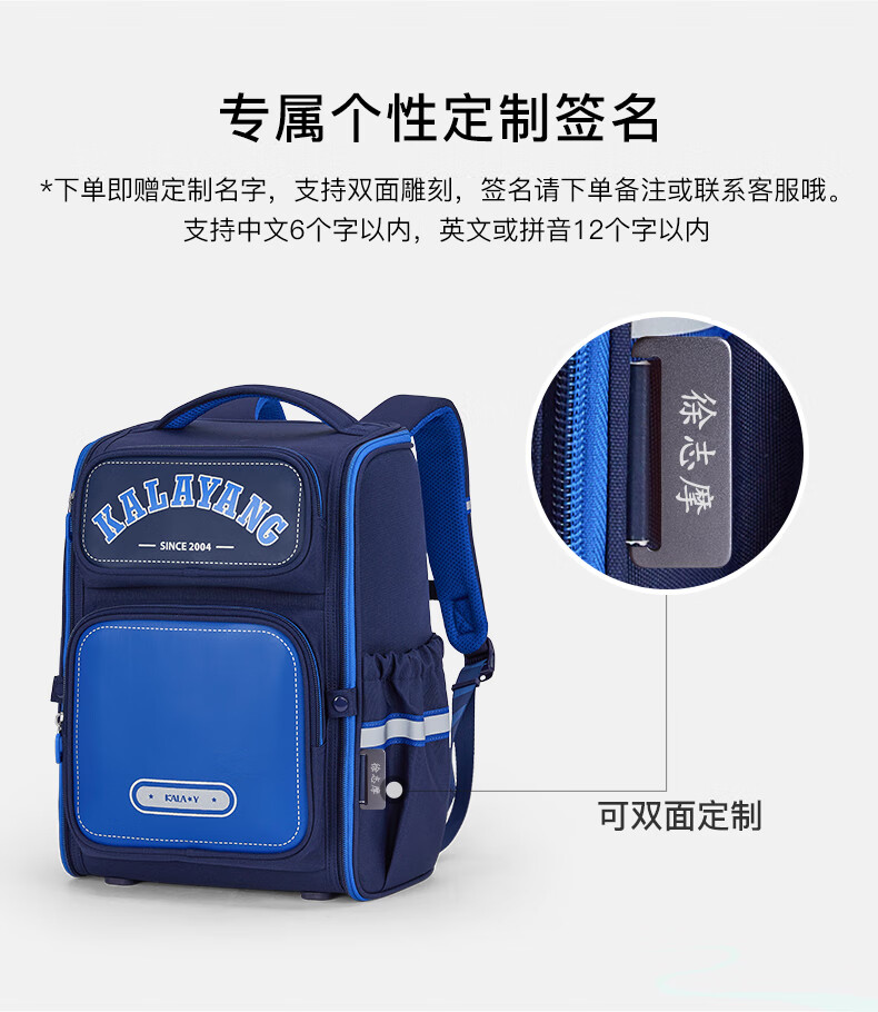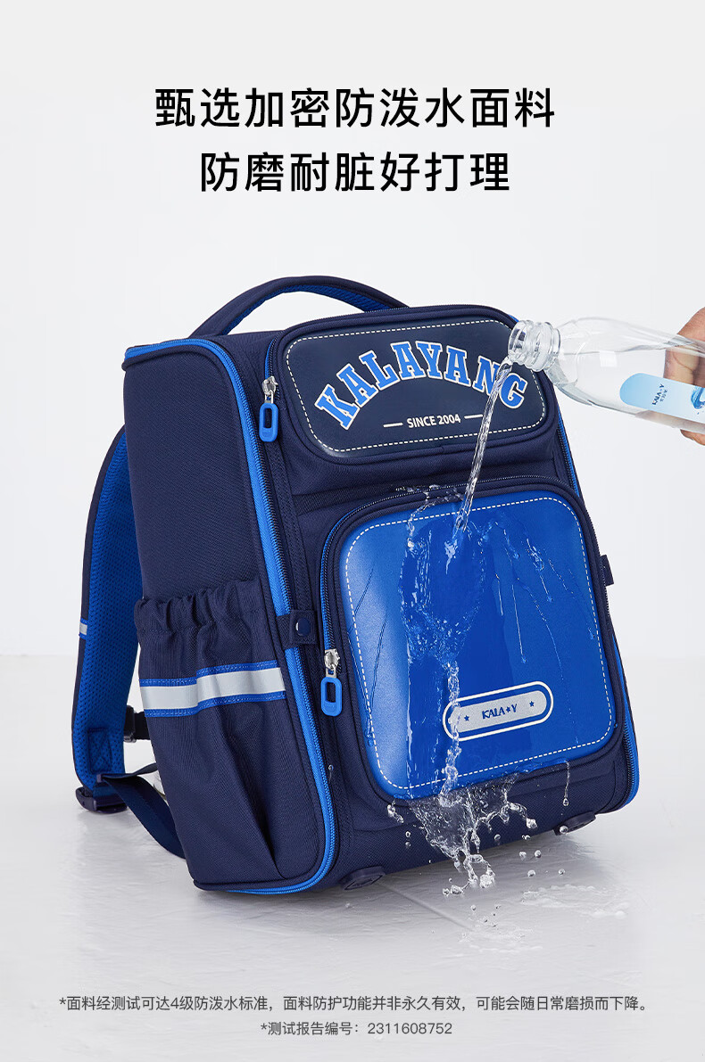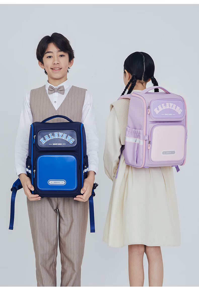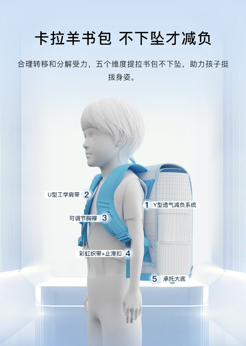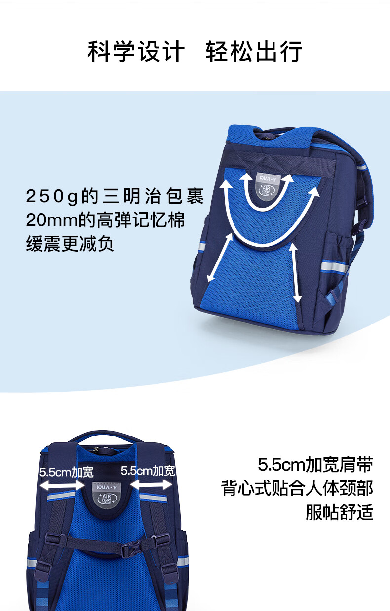 卡拉羊【蒋勤勤代言】书包小学生五维减负防下坠书包防泼水儿童书包 18L普鲁士蓝|1-4年级