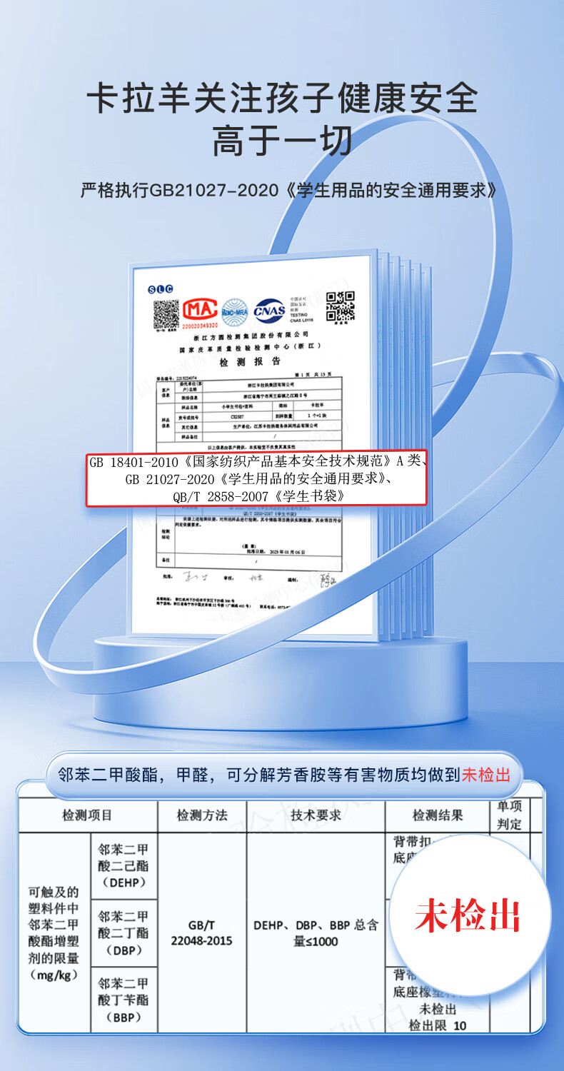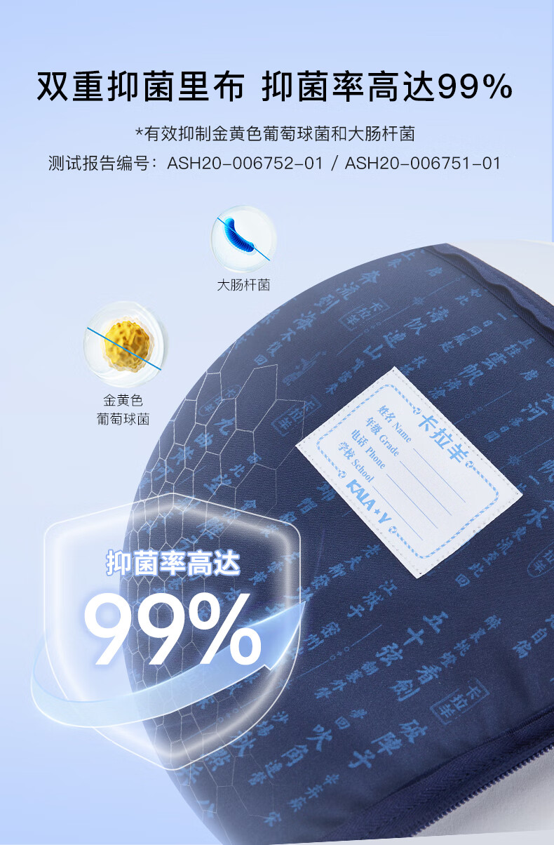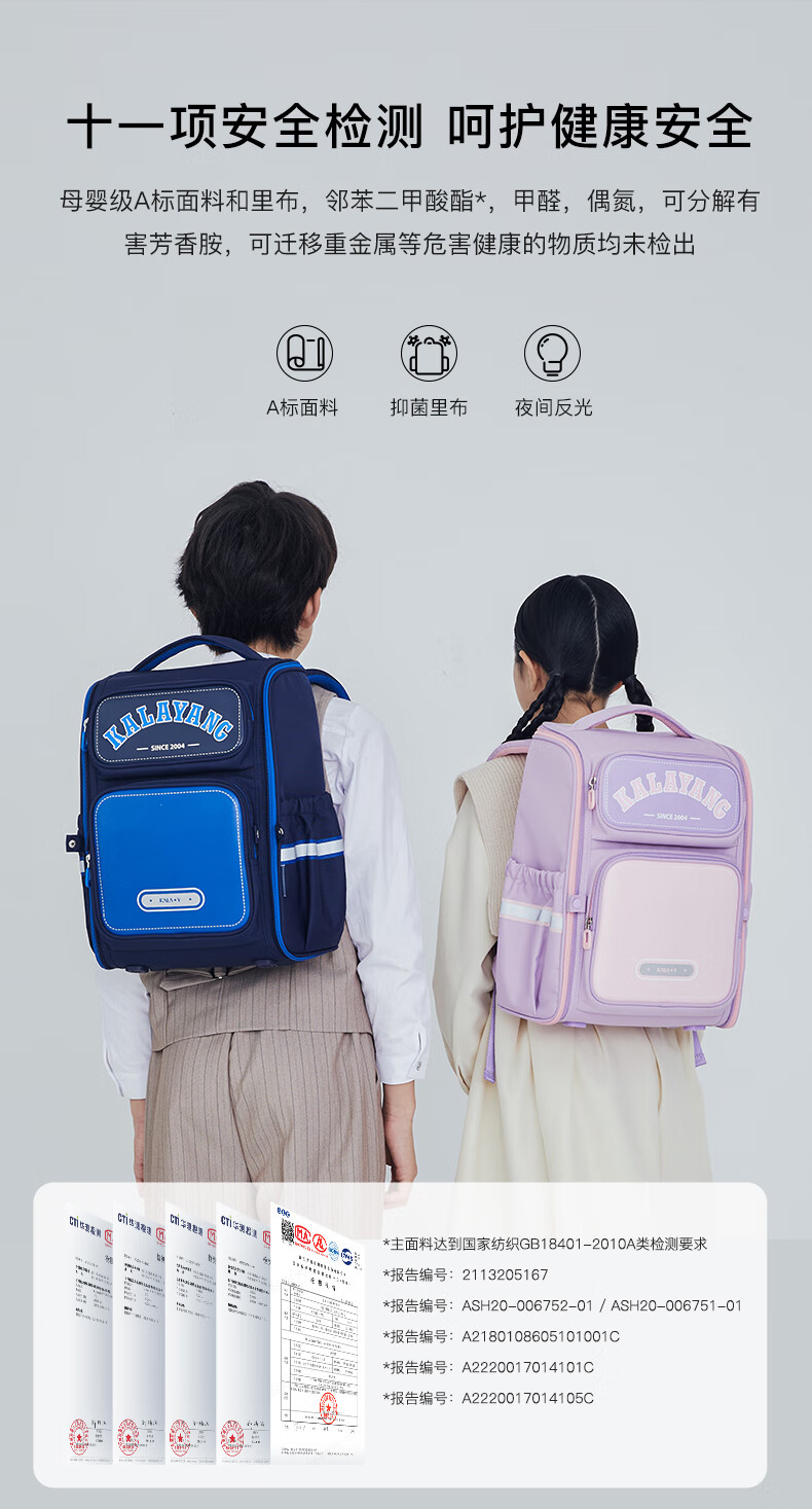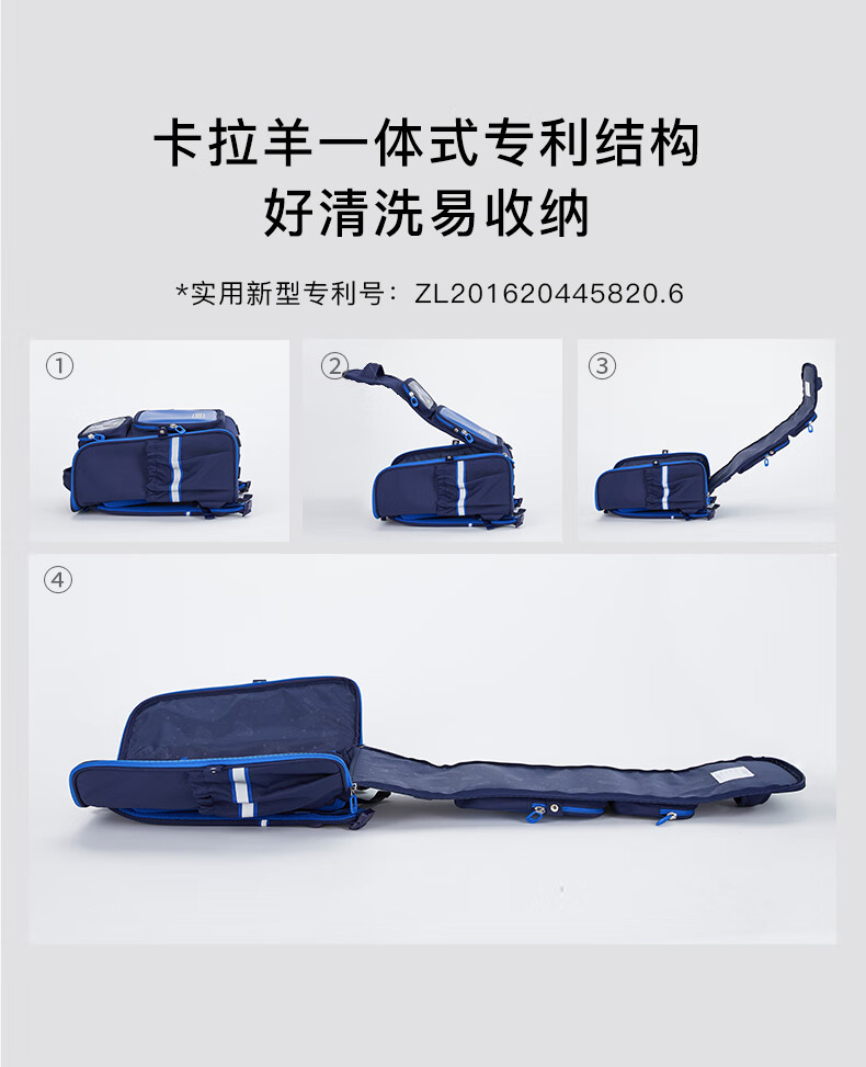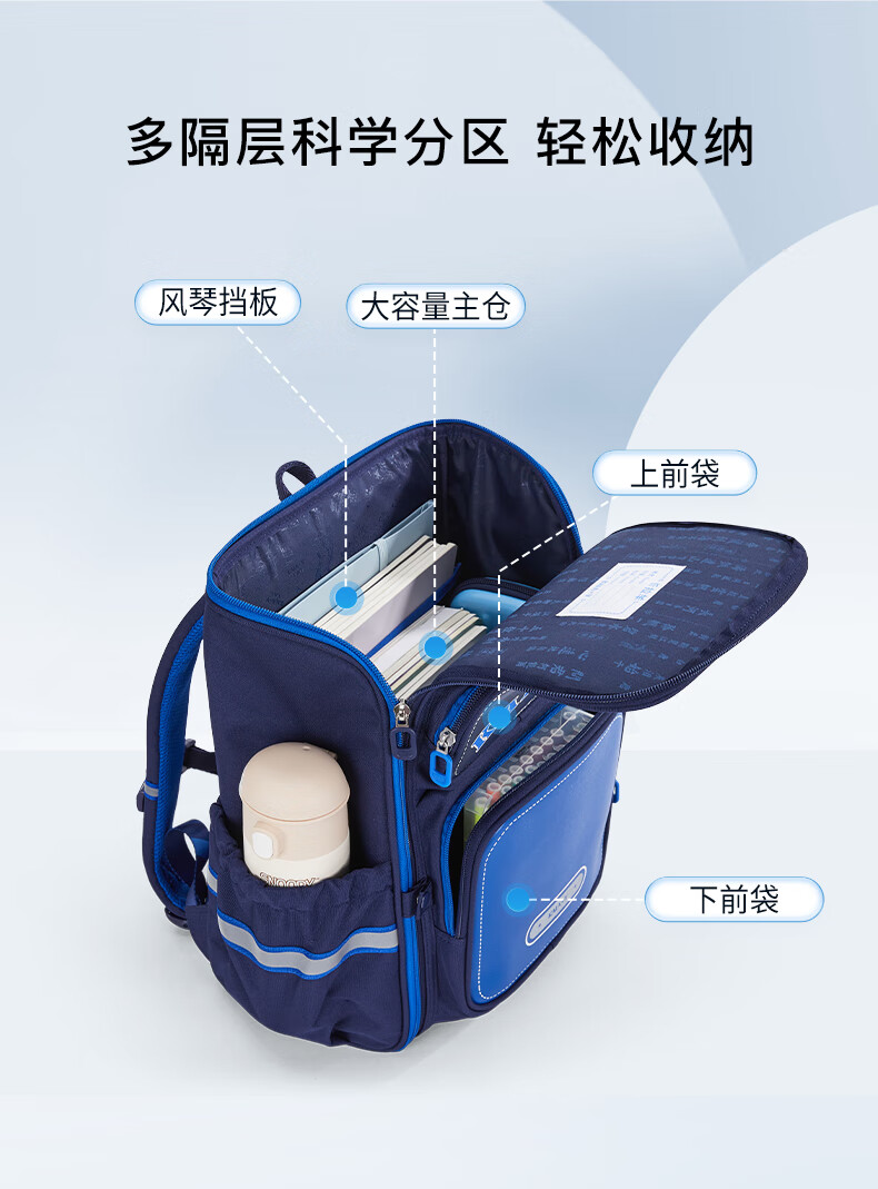 卡拉羊【蒋勤勤代言】书包小学生五维减负防下坠书包防泼水儿童书包 18L普鲁士蓝|1-4年级