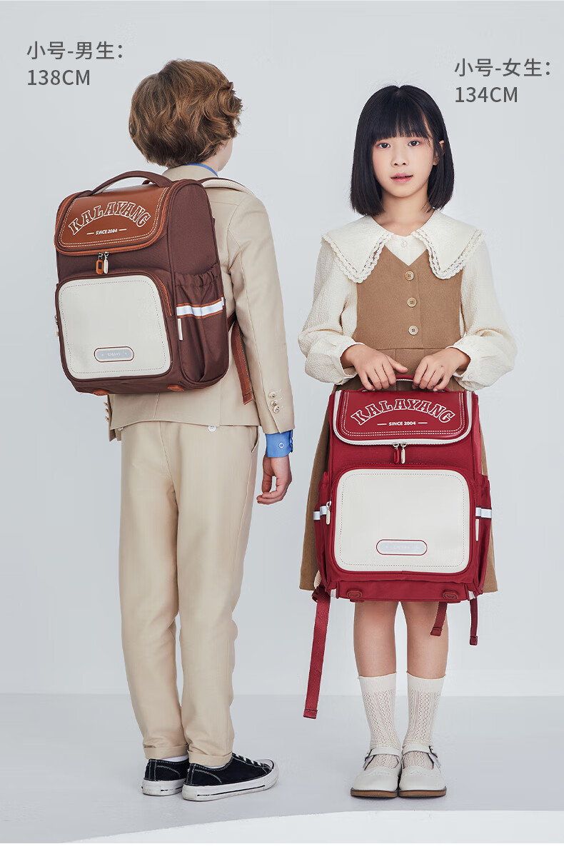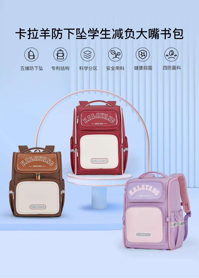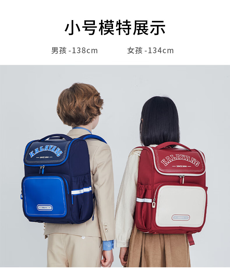 卡拉羊【蒋勤勤代言】书包小学生1-6年级防下坠减负大嘴书包儿童书包 小号(5维减负)藏青
