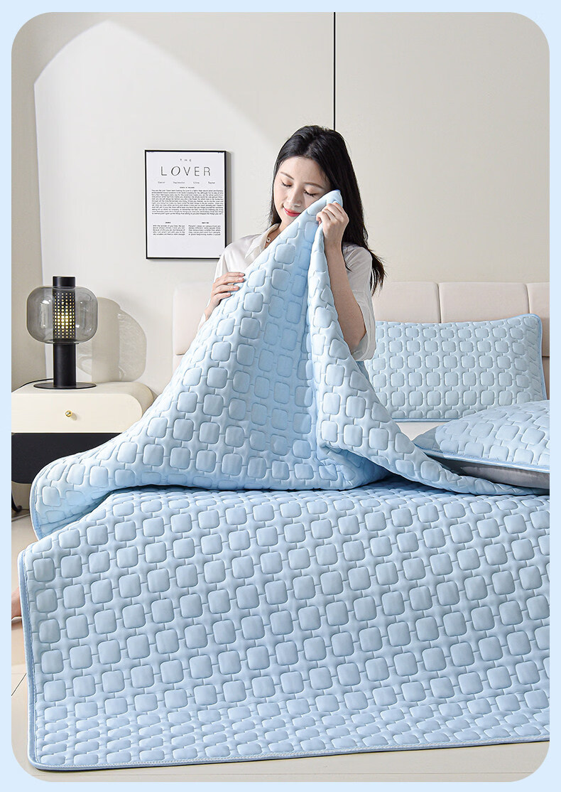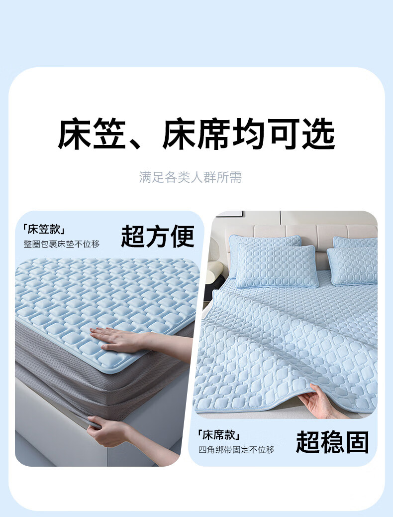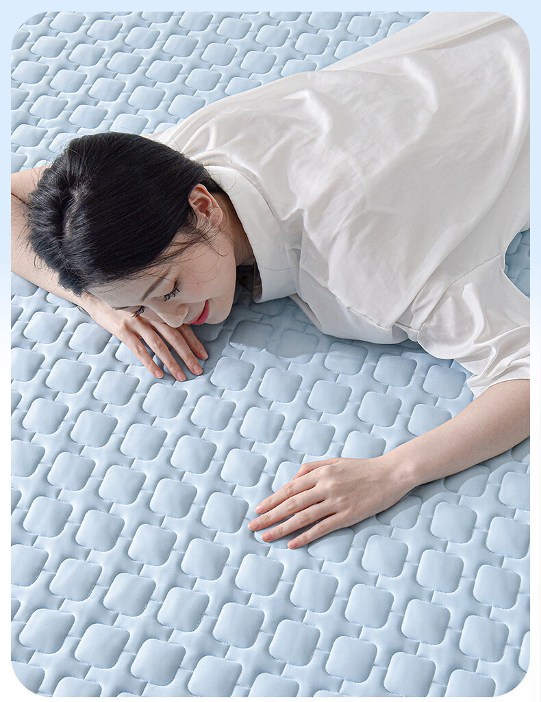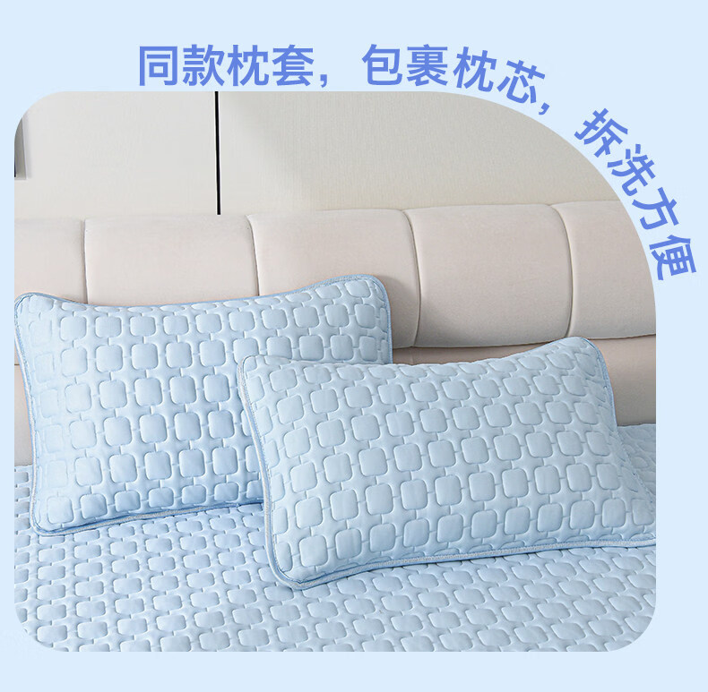 水星家纺北欧·海岸可水洗冰丝席/床笠式提花冰丝席升级款 北欧·海岸可水洗提花冰丝席升级款(灰蓝色) 195cm*90cm