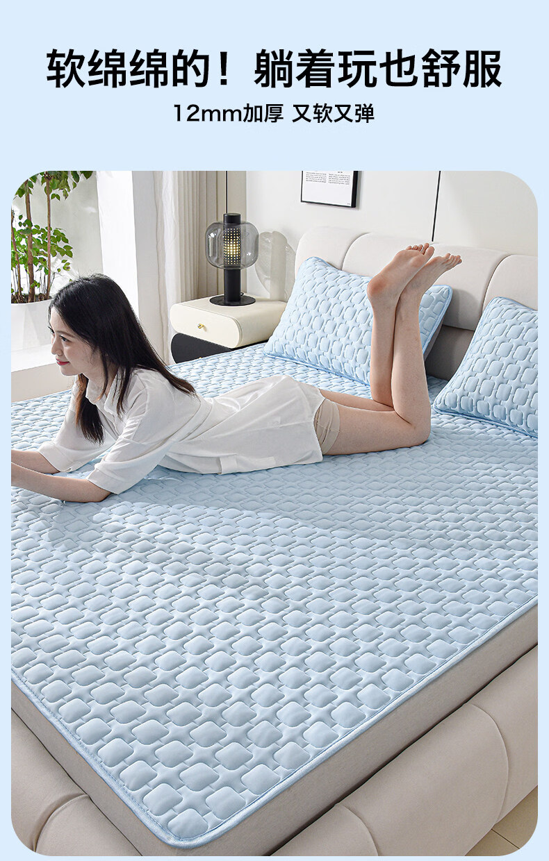 猫人(MiiOW)夏季乳胶凉席1.8x2米加厚床单床笠款冰丝席子家用卧室三件套宿舍 【天空蓝】12mm加厚床单款·送同款枕套 90cmx200cm 【凉而不冰丨亲肤裸睡】