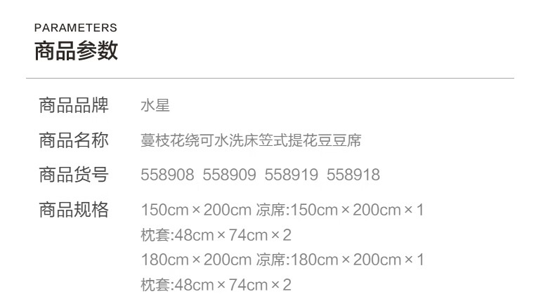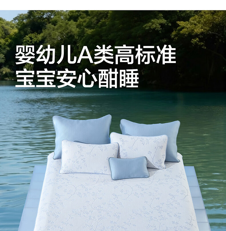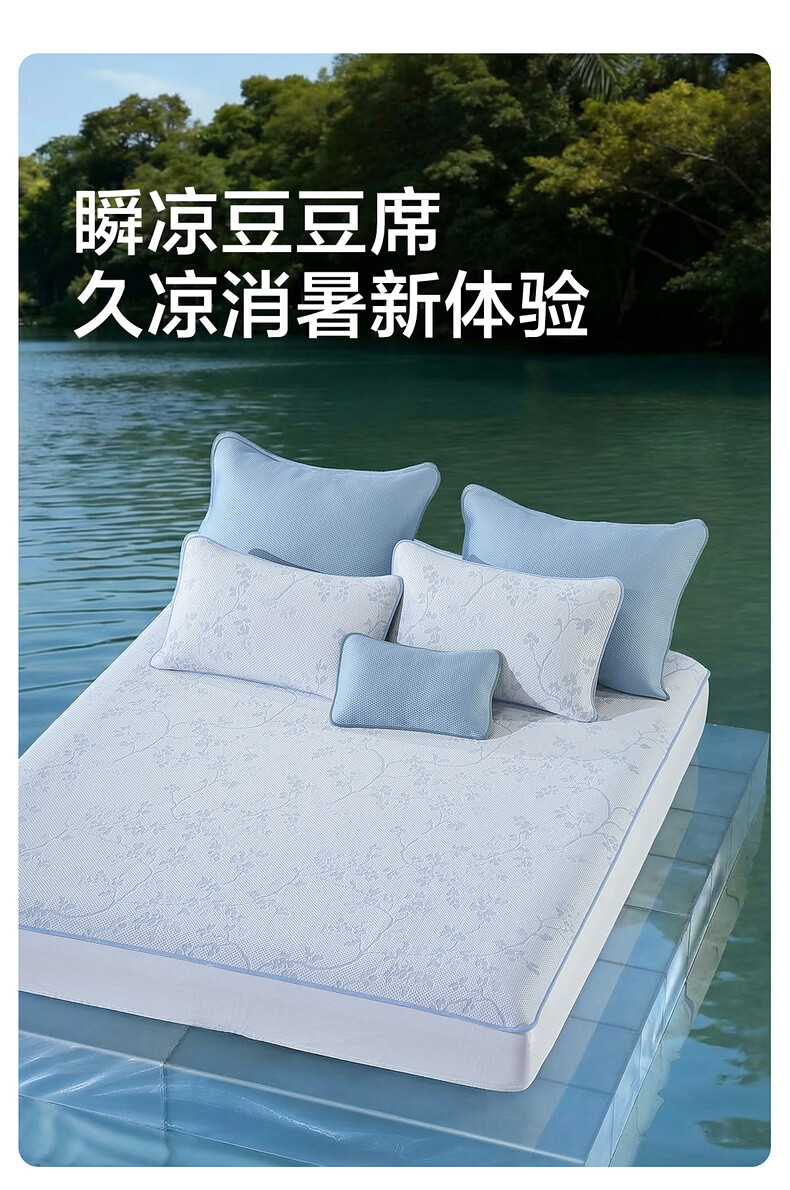 水星家纺蔓枝花绕可水洗床笠式提花豆豆席 蔓枝花绕可水洗床笠式提花豆豆席(海蓝色) 150cm*200cm