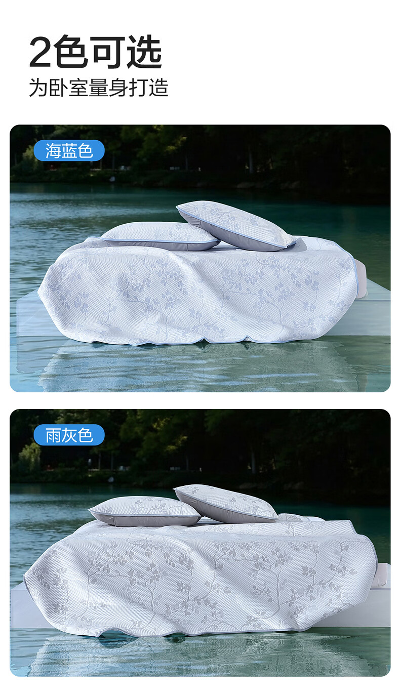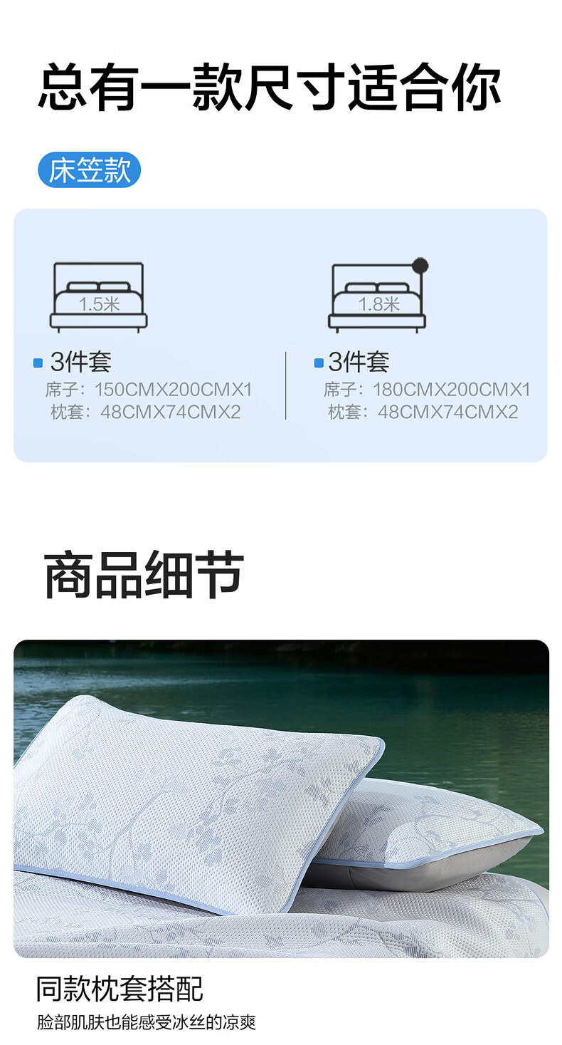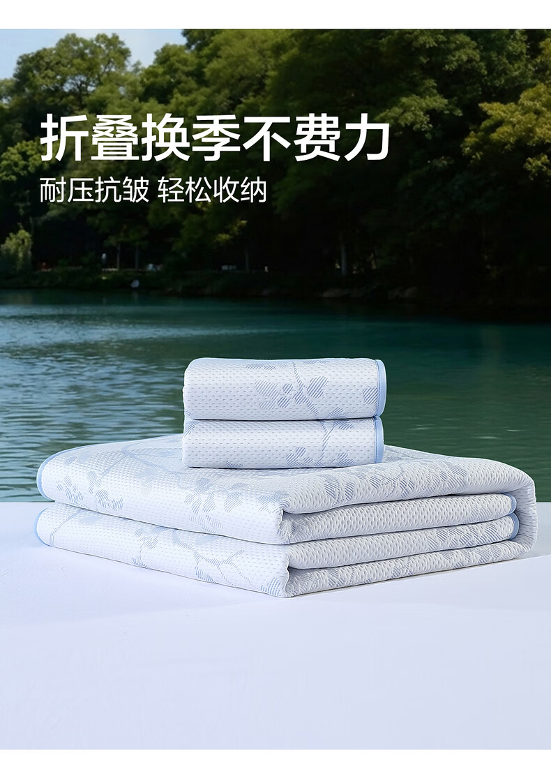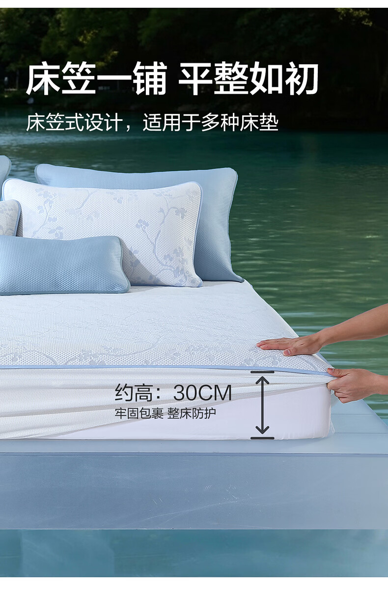 水星家纺北欧·海岸可水洗冰丝席/床笠式提花冰丝席升级款 北欧·海岸可水洗提花冰丝席升级款(灰蓝色) 195cm*90cm