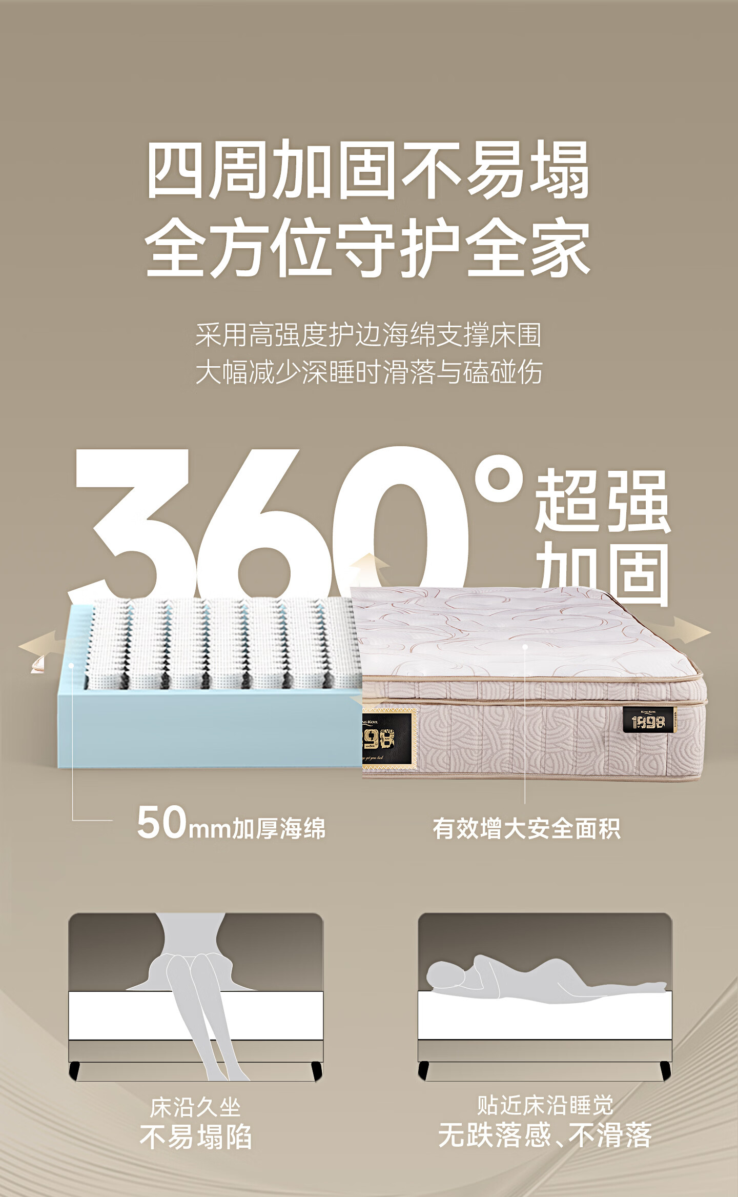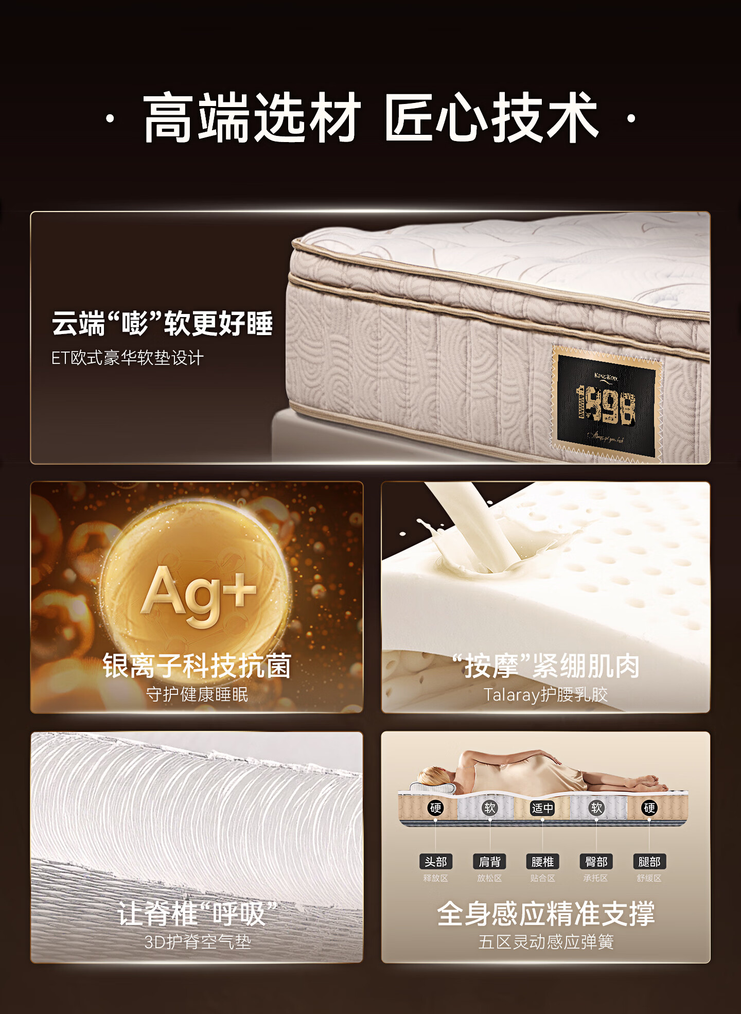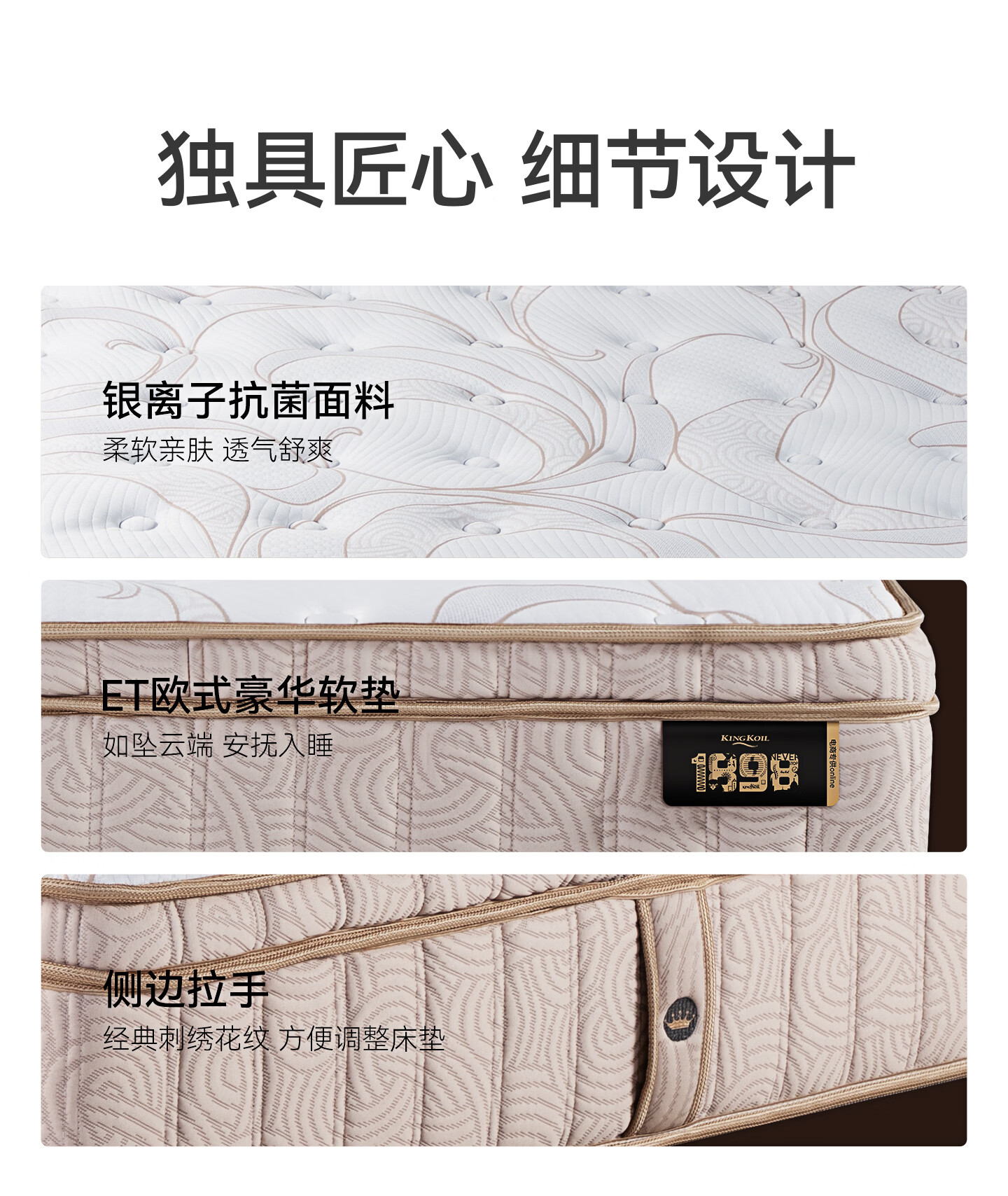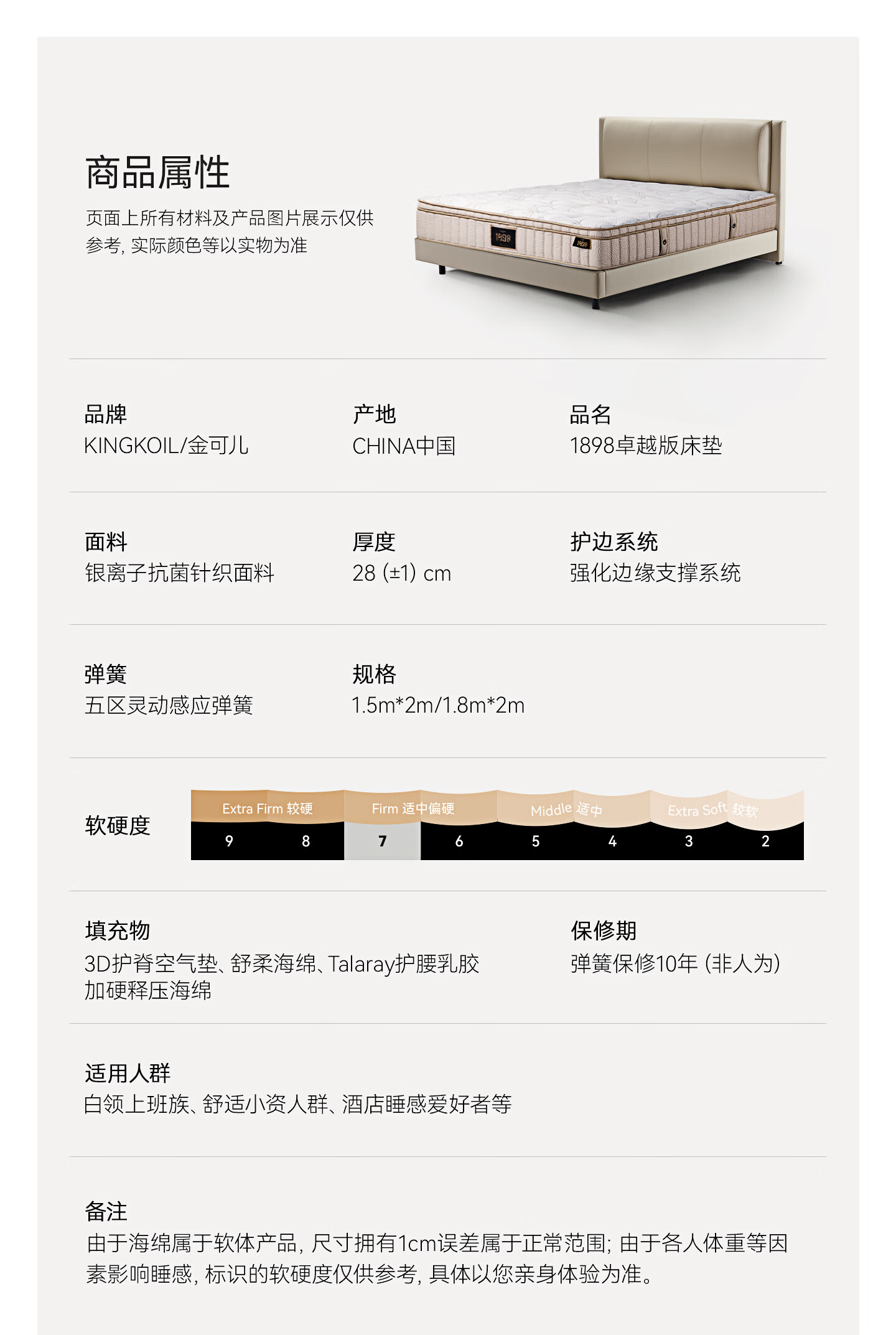 金可儿(Kingkoil)乳胶床垫五分区独立袋弹簧偏硬护脊床垫1.8米x2米 1898卓越版床垫 1898卓越版床垫 1.8米*2米