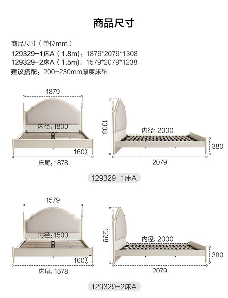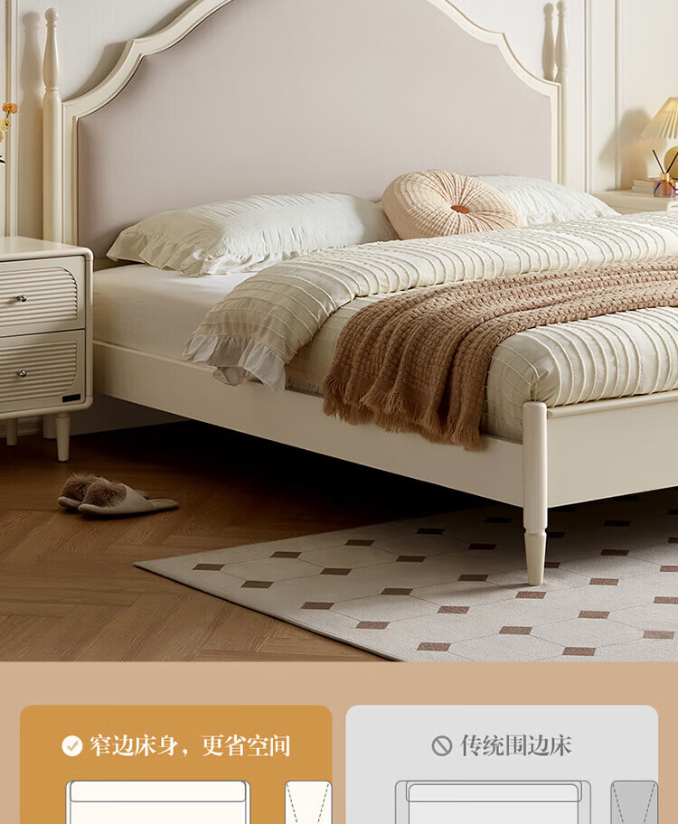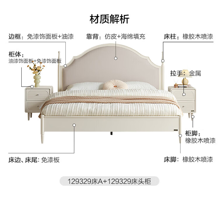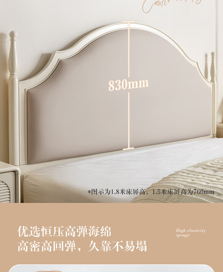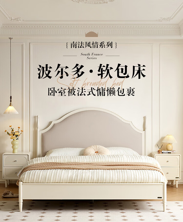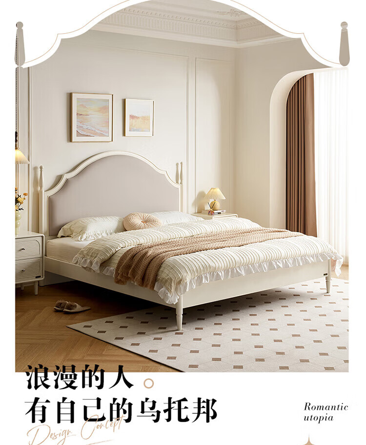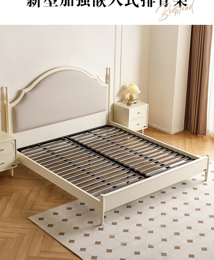 CBD家居现代简约真皮软包床双人主卧大床奶油风婚床头层牛皮甜心悬浮 甜心悬浮-奶油白单床 卷帘排骨架 1500*2000