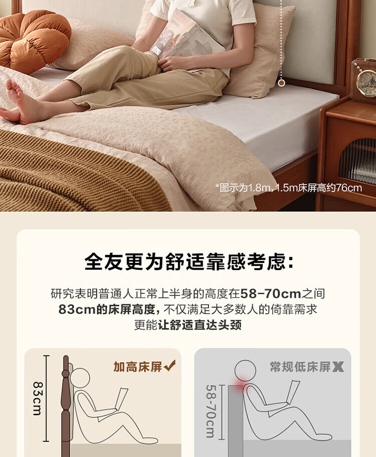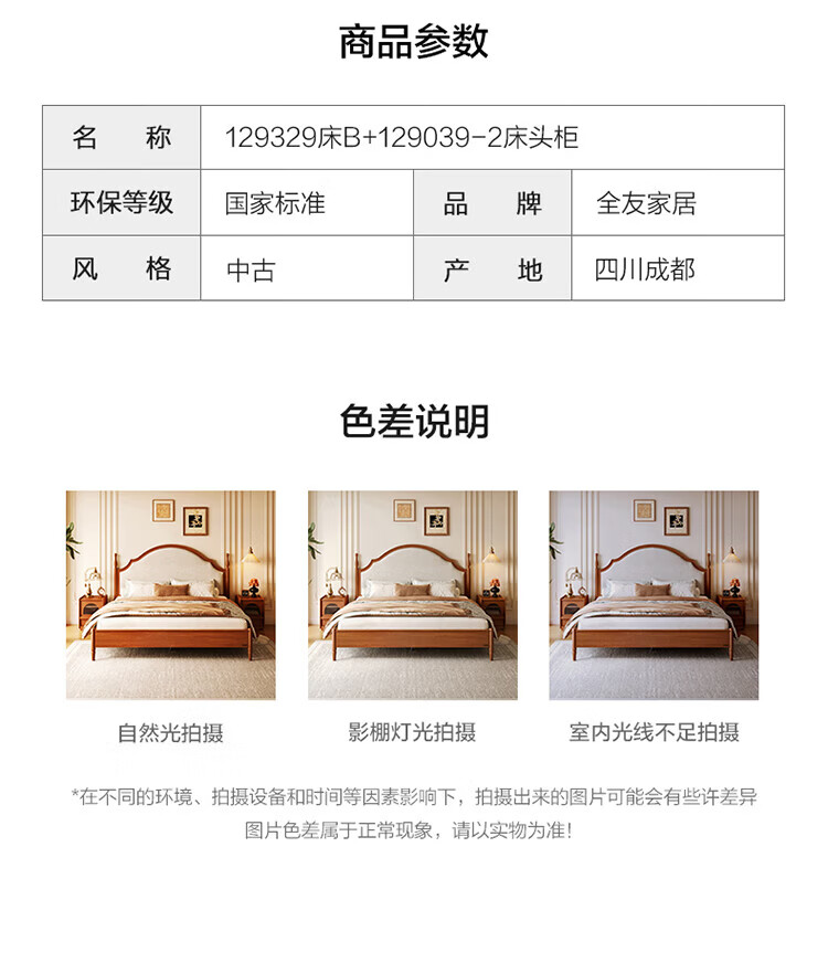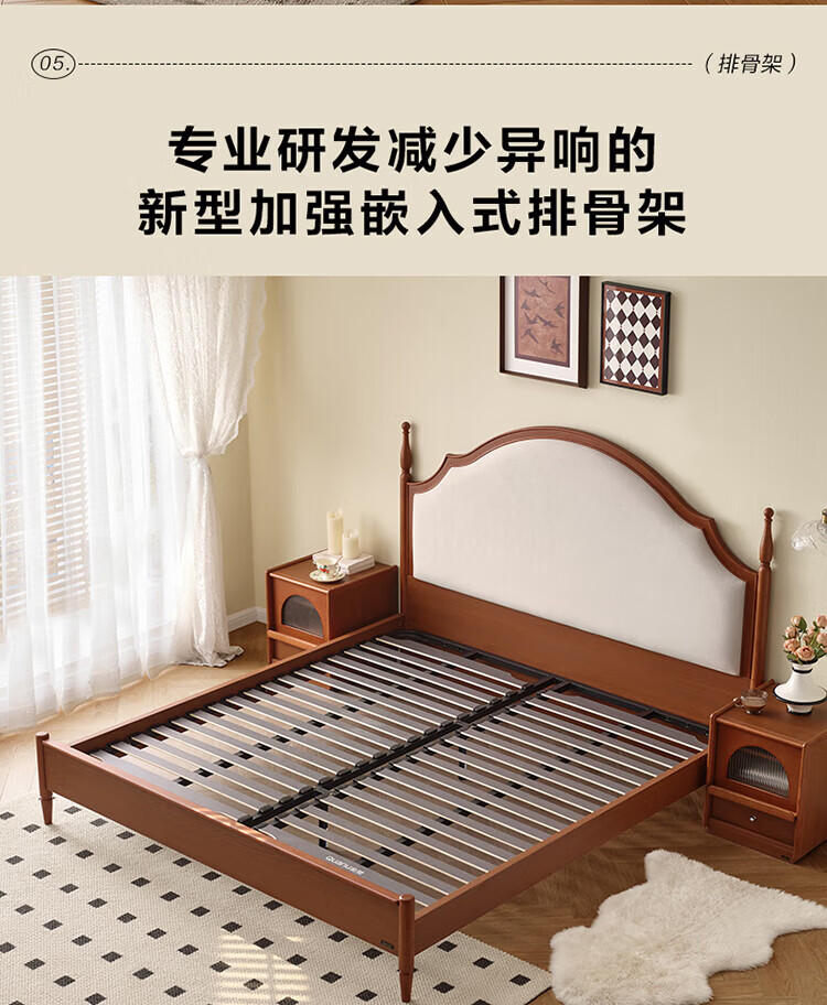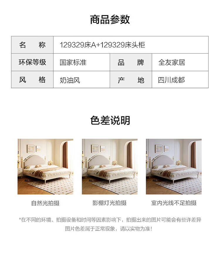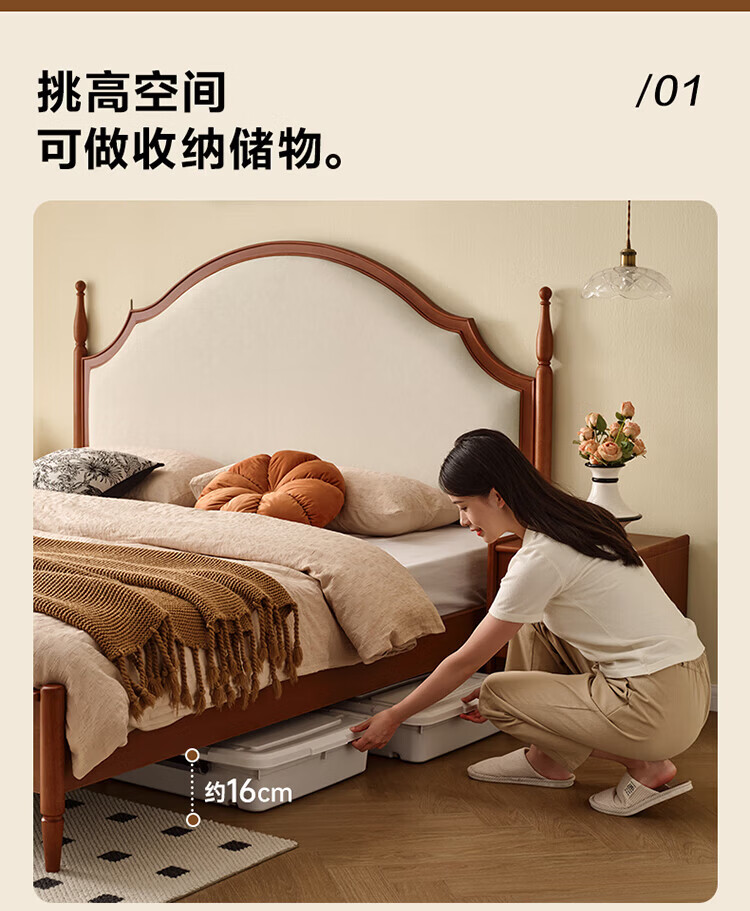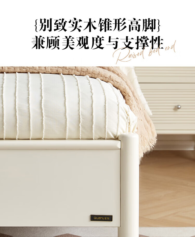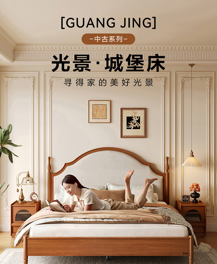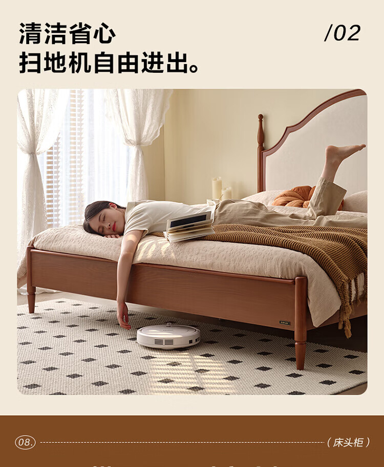 全友家居波尔多皮艺软包高脚床复古法式奶油风主卧1.8米x2米双人大床 复古棕|床头柜*1 1.8米